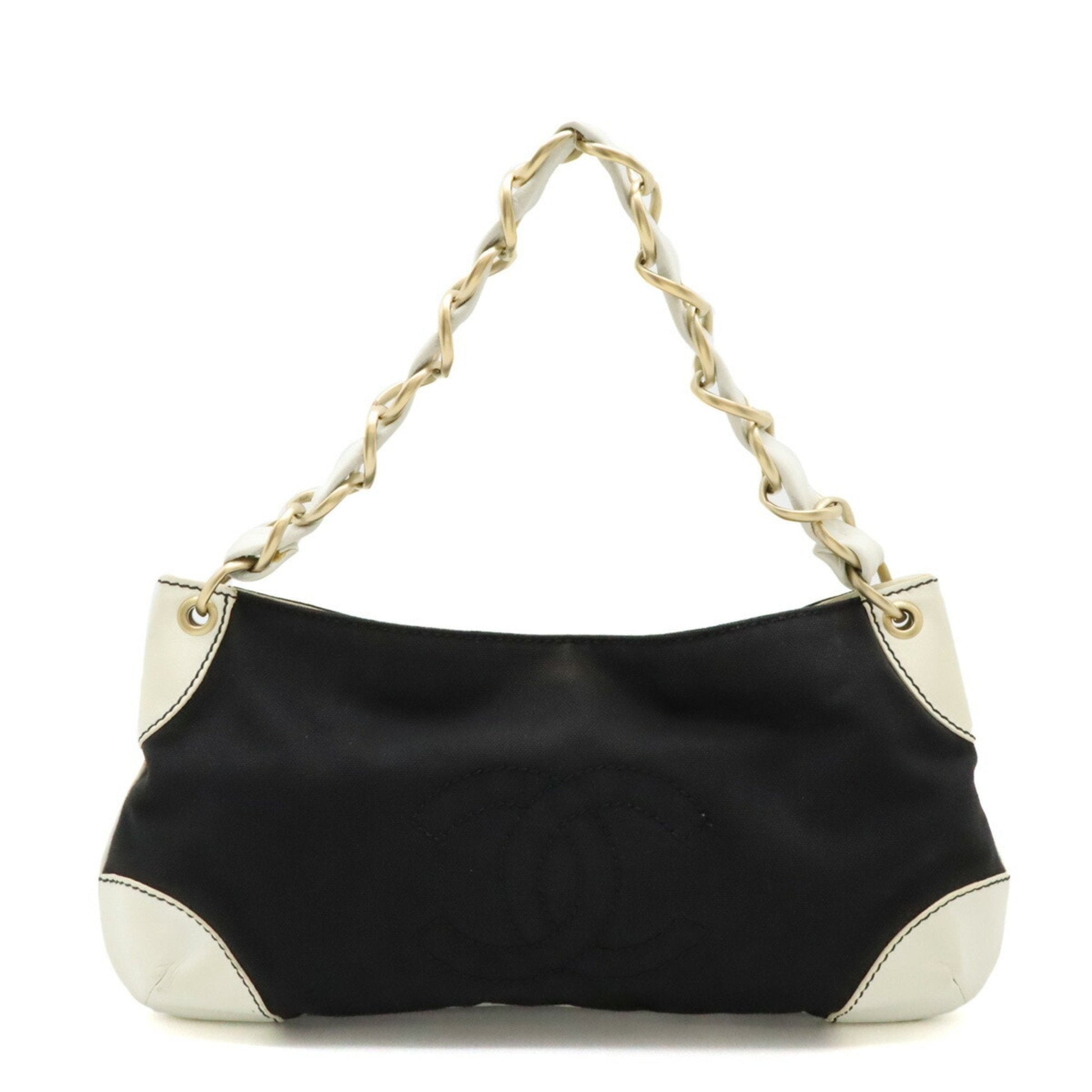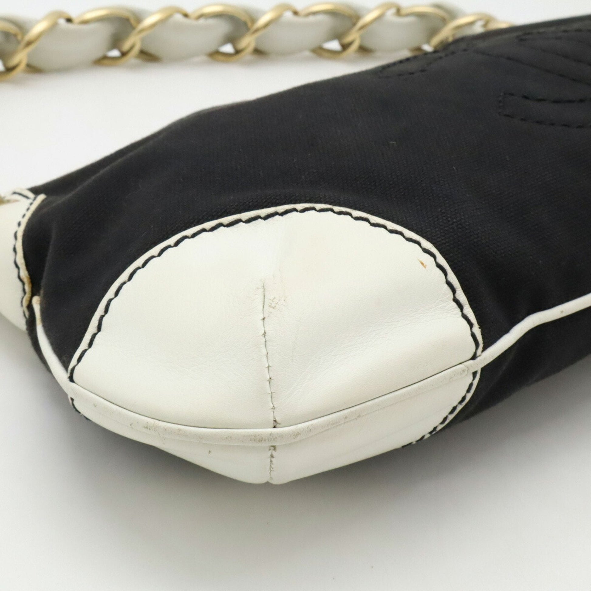 Chanel Black White Canvas Leather Shoulder Bag ()