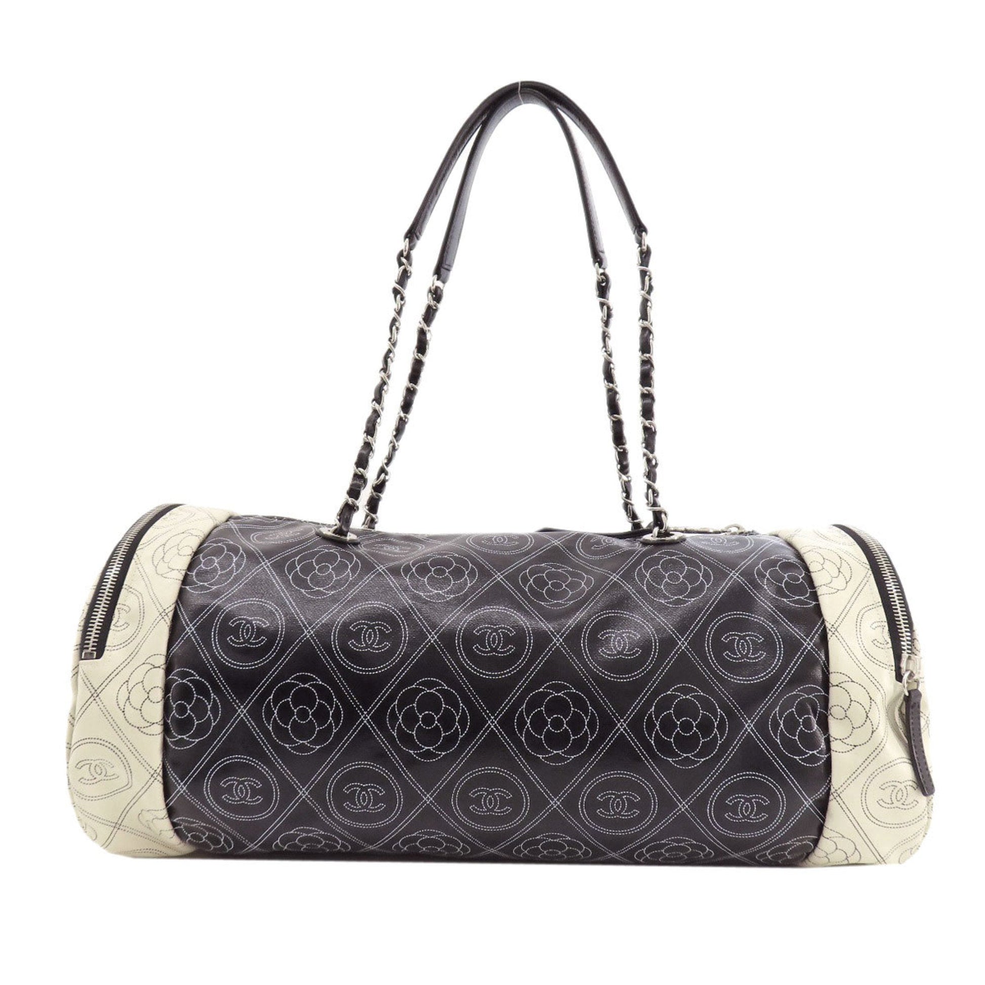 Brand: Chanel, Color: Black, White, Material: Coated canvas, Dimensions: 20cm x 32cm x 20cm / 7.87'' x 12.59'' x 7.87'', Condition: Rank A. Rank A Used - A few traces of usage, some scratches / dirt can be seen but overall in very good condition. Before purchasing, please refer to the images for the exact condition of the item. Before purchasing, please refer to the images of the accessories included with the item. Damage Ranking: Slight