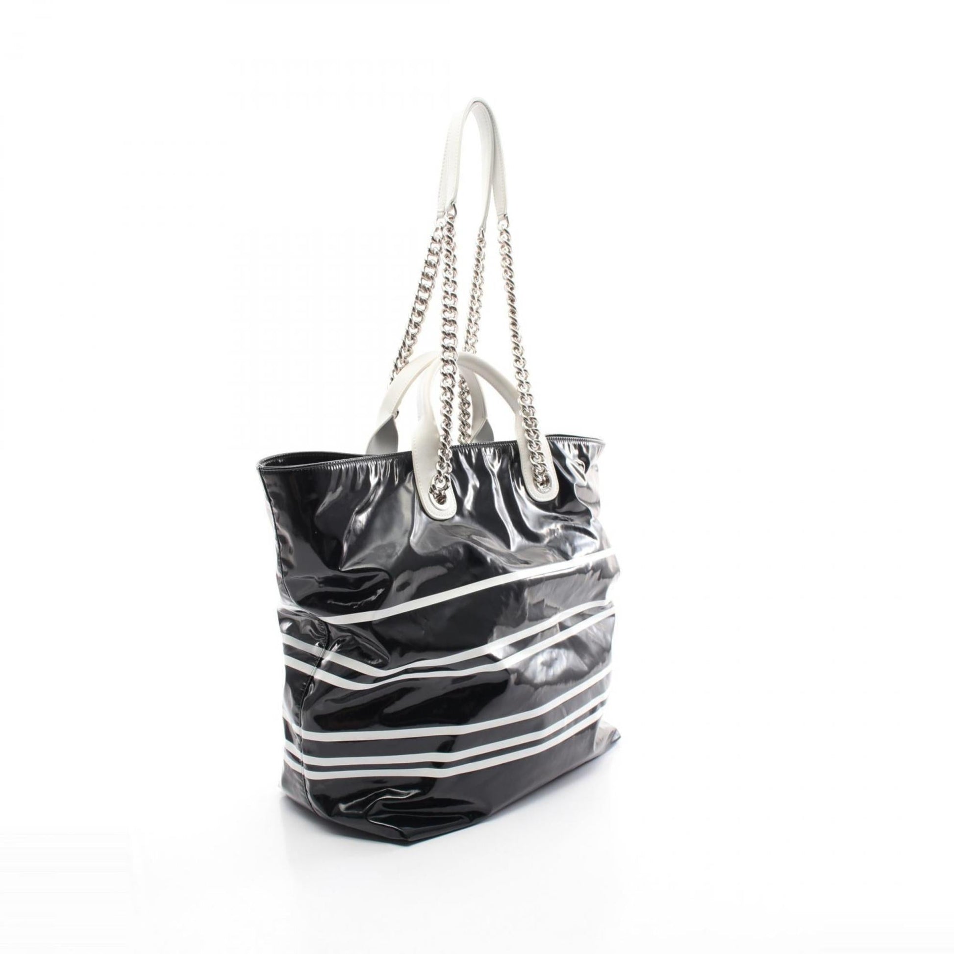 Chanel Black White Coated Canvas Leather Tote Bag ()