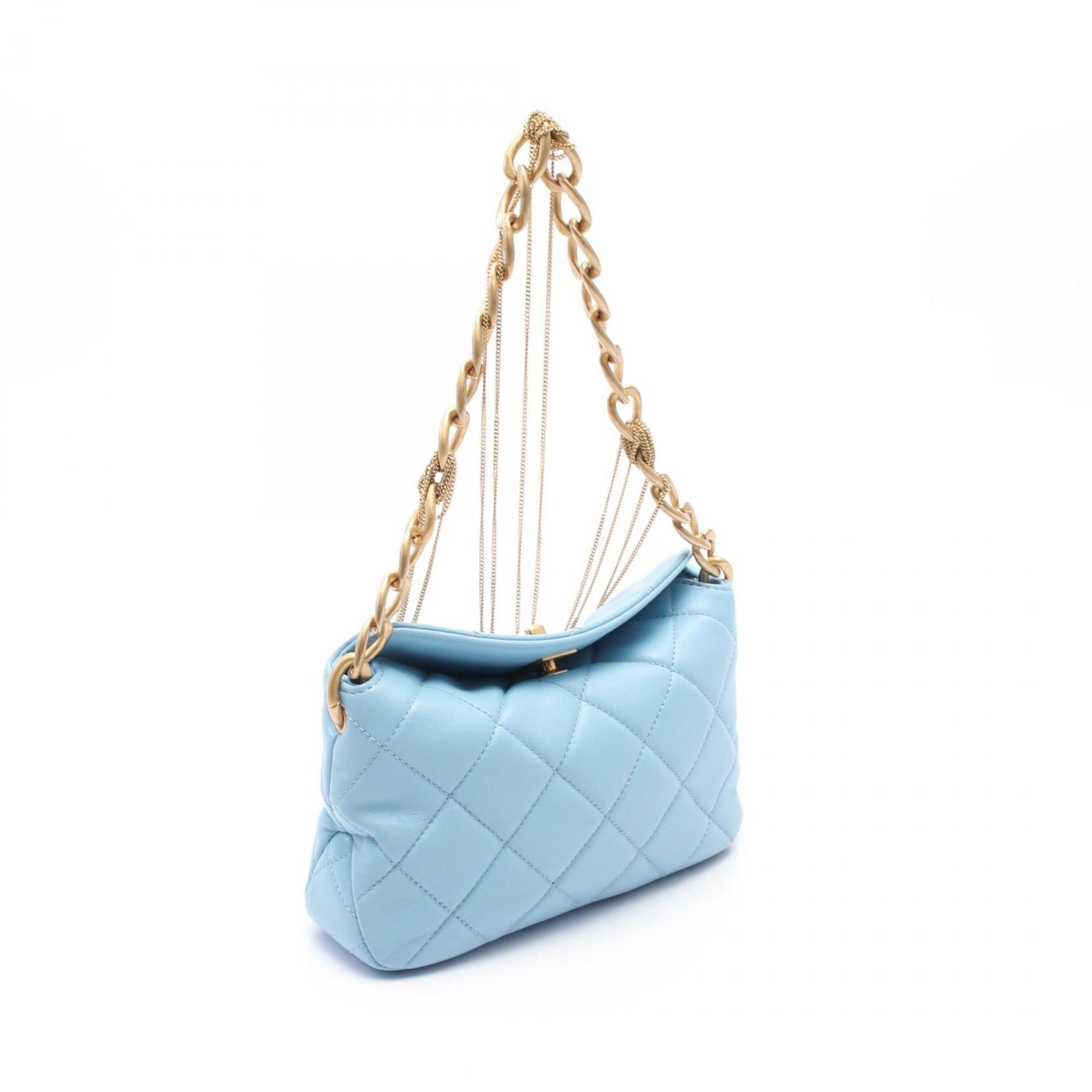 Brand: Chanel, Color: Blue, Material: Leather, Dimensions: 15cm x 20cm x 6.5cm / 5.9'' x 7.87'' x 2.55'', Condition: Rank AB. Rank AB Used - Traces of usage, scratches / dirt can be seen but generally in good condition. Before purchasing, please refer to the images for the exact condition of the item. Before purchasing, please refer to the images of the accessories included with the item. Bag Common Damage Scratch: Slight