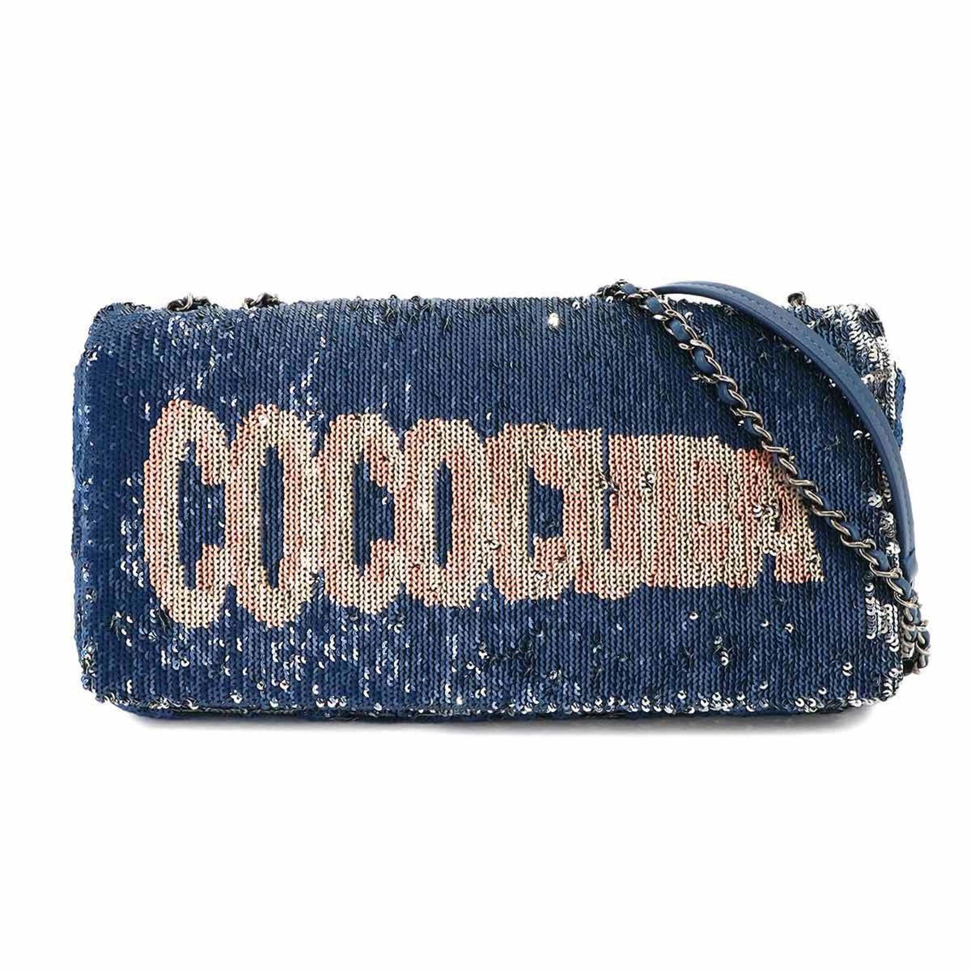 Brand: Chanel, Color: Blue, Material: Spangles, Leather, Dimensions: 14.5cm x 28cm x 3.5cm / 5.7'' x 11.02'' x 1.37'', Condition: Rank S. Rank S Used - Mint condition, like new item. Before purchasing, please refer to the images for the exact condition of the item. Before purchasing, please refer to the images of the accessories included with the item. Bag Common Damage Scratch: Insignificant