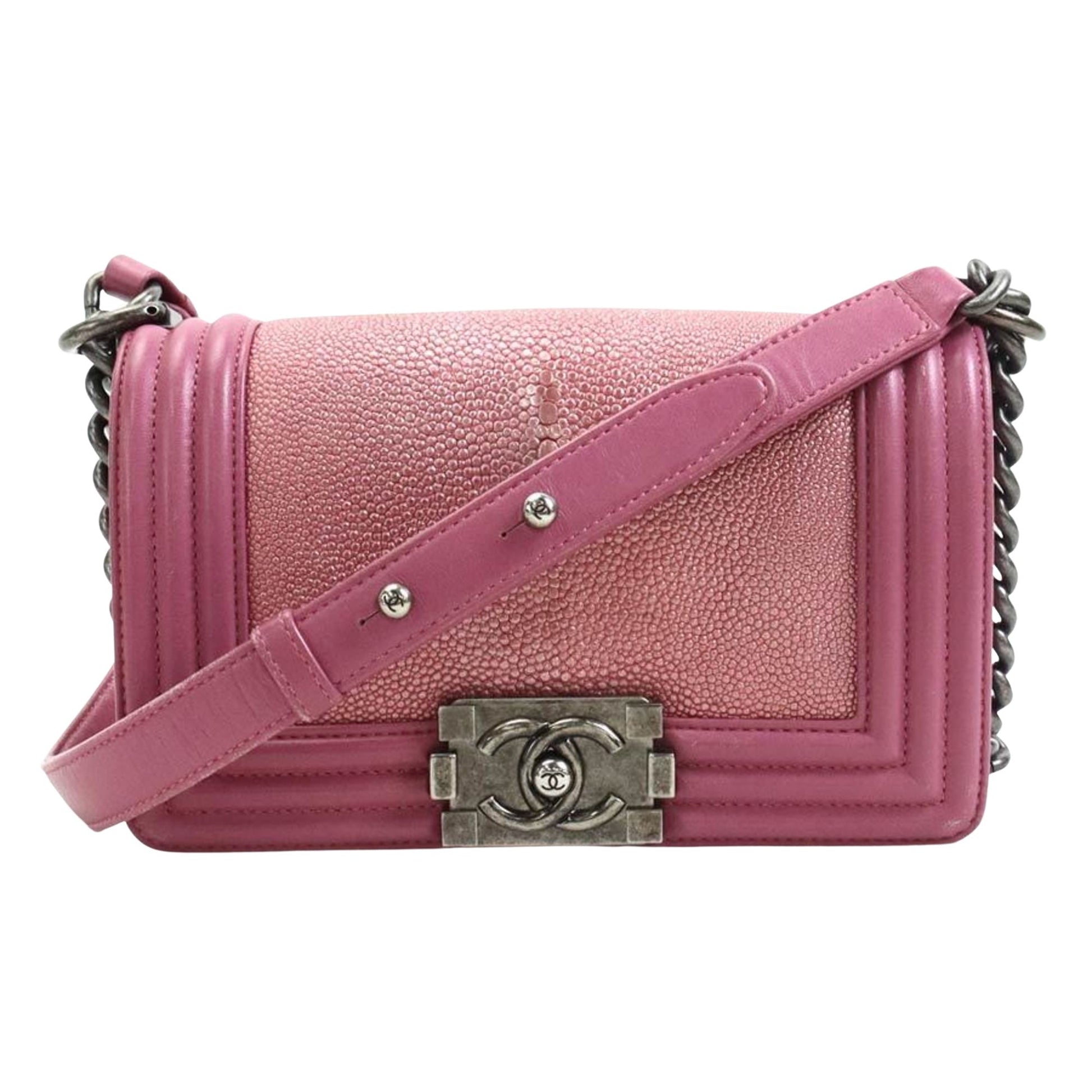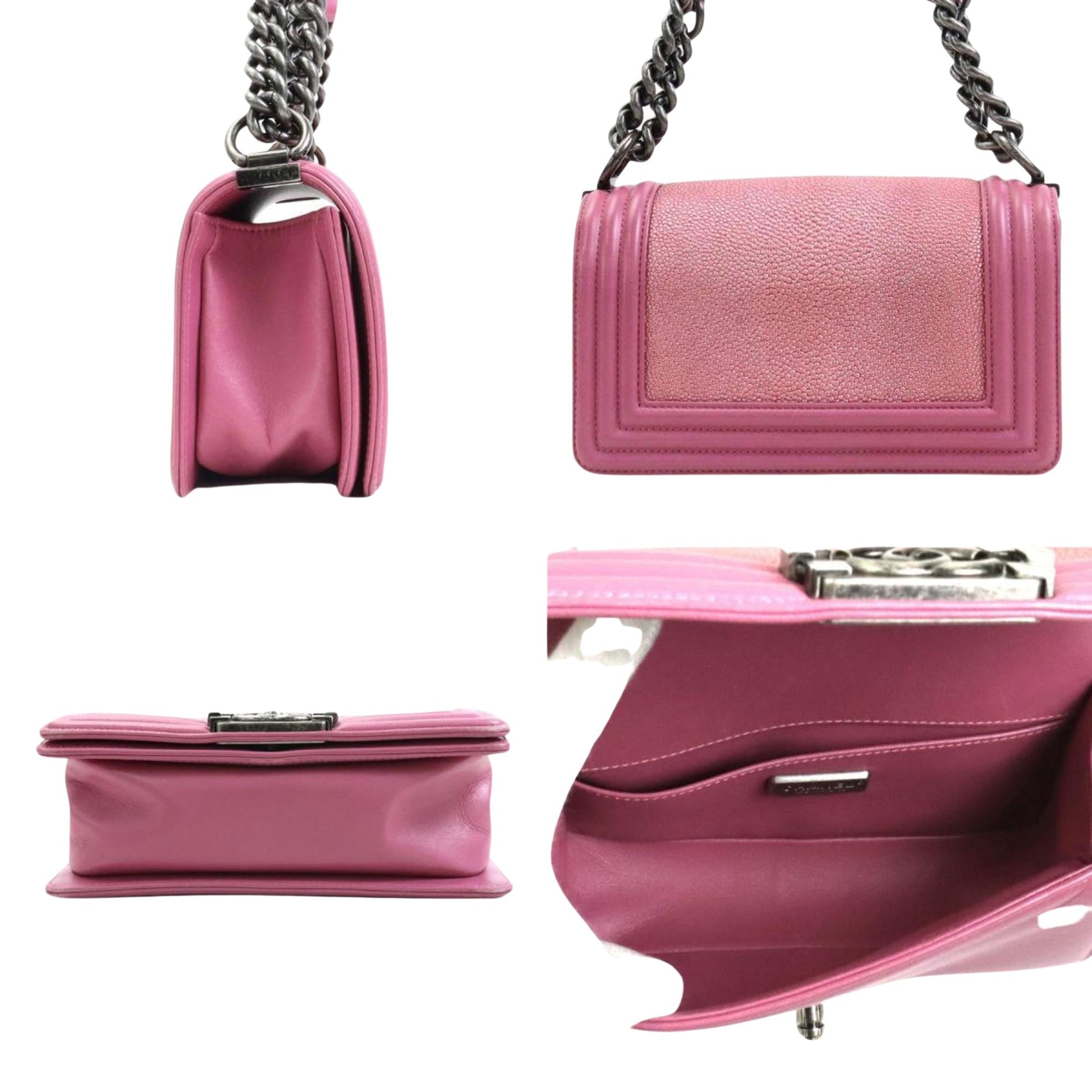 The Boy Chanel line by Chanel is a sophisticated and iconic collection designed for women. It exudes a contemporary and edgy style with its unique combination of classic elegance and modern flair. Crafted with exquisite attention to detail, the Boy Chanel accessories showcase the brand's signature quilted leather design, adding a touch of luxury and sophistication to any ensemble. The pink color further enhances its femininity and charm, making it a coveted choice among fashion enthusiasts. The Boy Chanel line is known for its structured silhouette, featuring a bold and distinctive hardware closure that adds a touch of edginess to the overall design. It offers a range of accessories, including shoulder bags and wallets, that perfectly blend style and functionality for the modern woman.