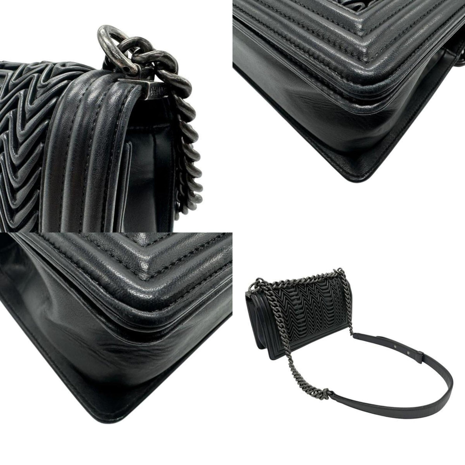 Chanel Boy Chanel Black Leather Metal Shoulder Bag ()
