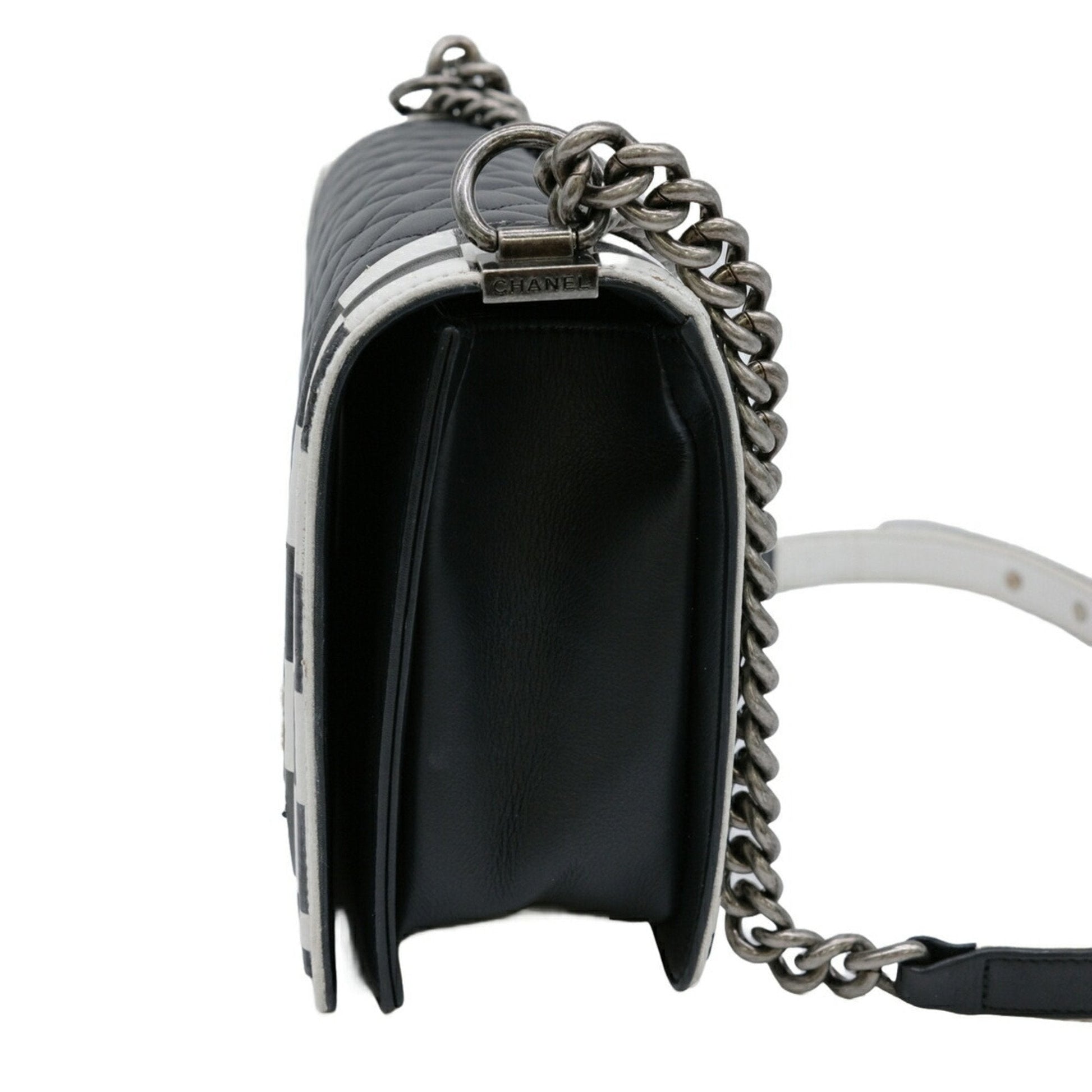 Chanel Boy Chanel Black White Leather Shoulder Bag ()
