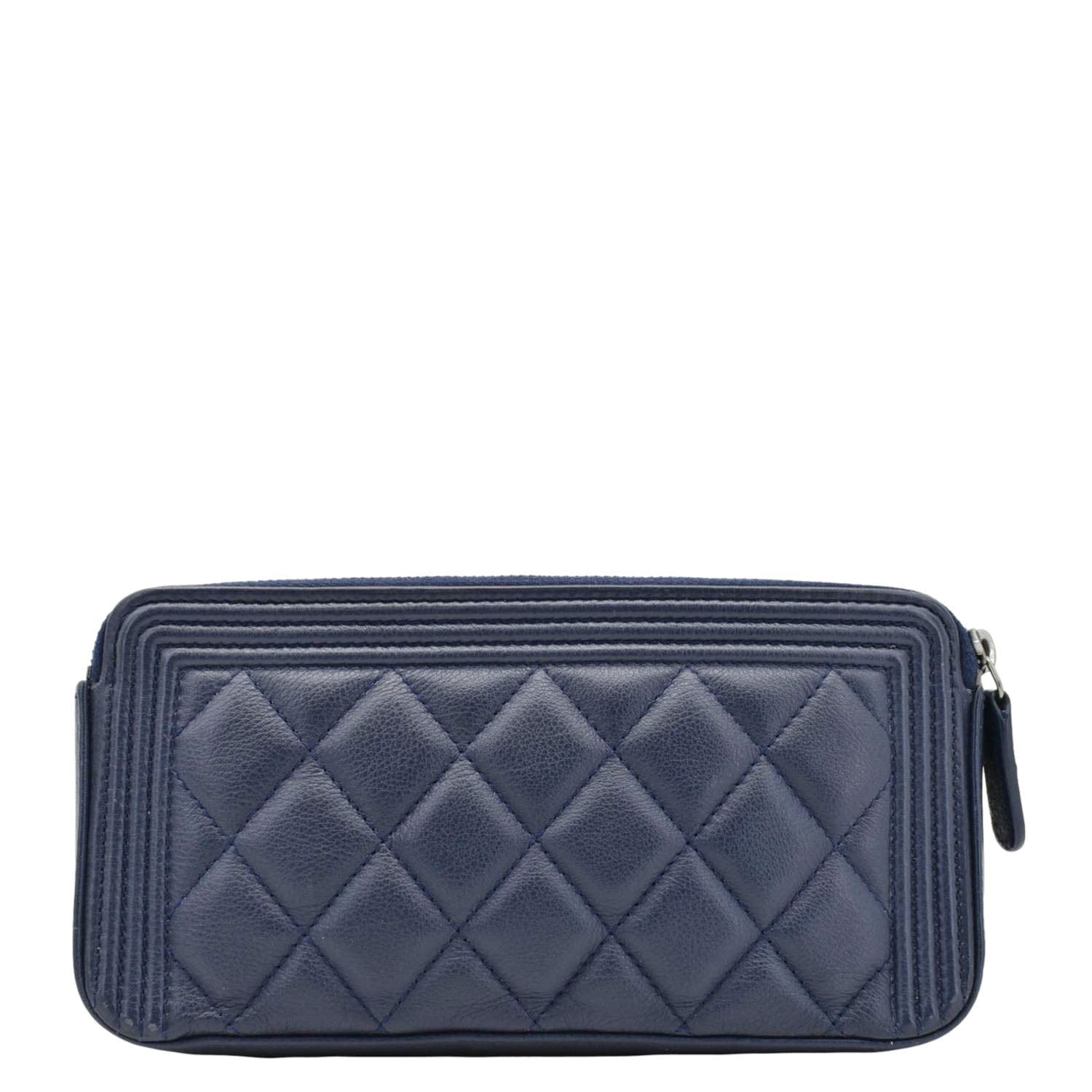 CHANEL Boy Double Zip Wallet on Chain Leather Crossbody Bag Navy Blue