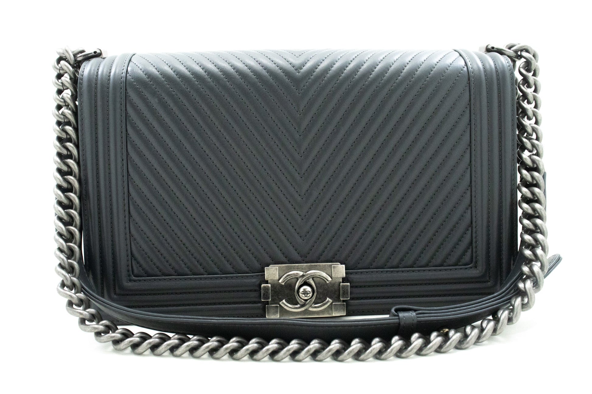 Chanel Boy Grey Leather Shoulder Bag ()