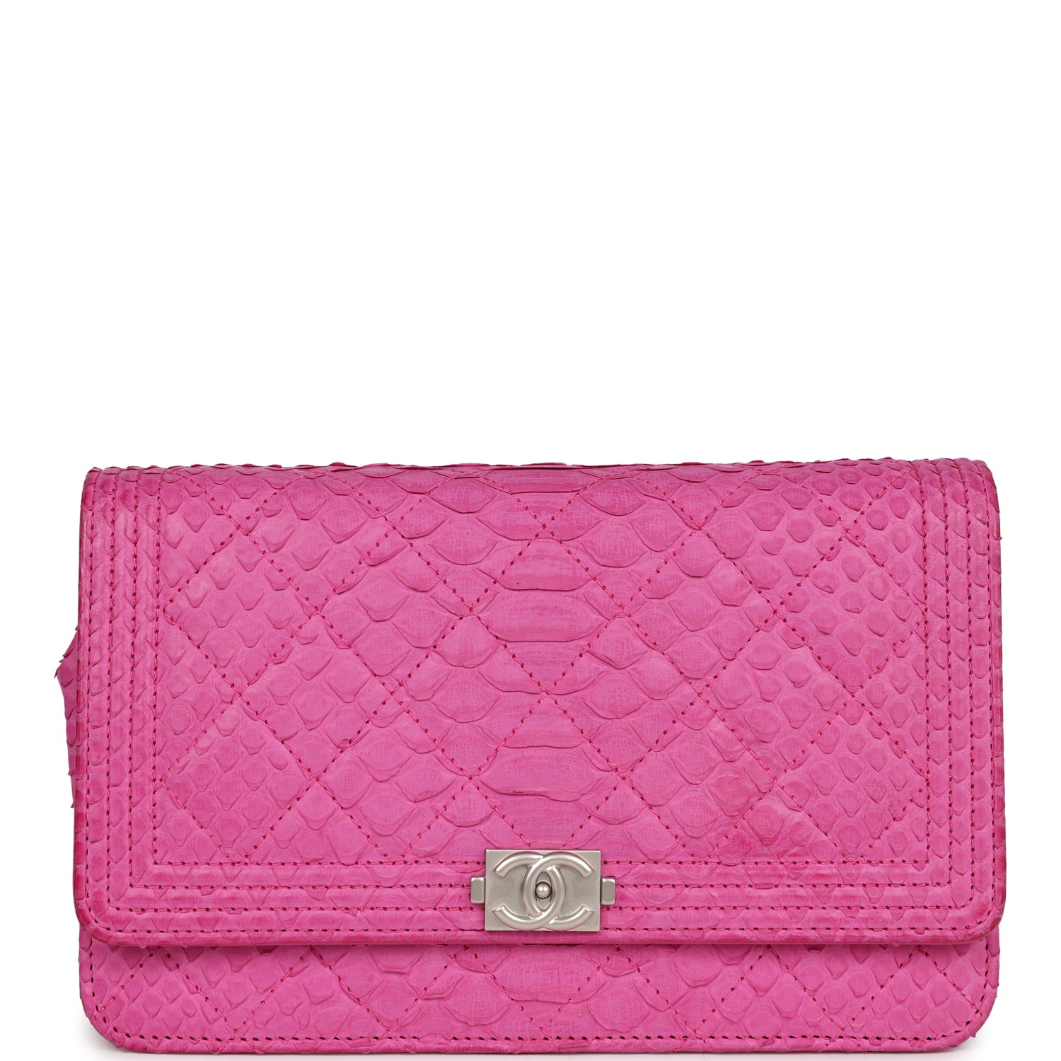 Chanel Boy Wallet On Chain WOC Hot Pink Python Brushed Silver Hardware