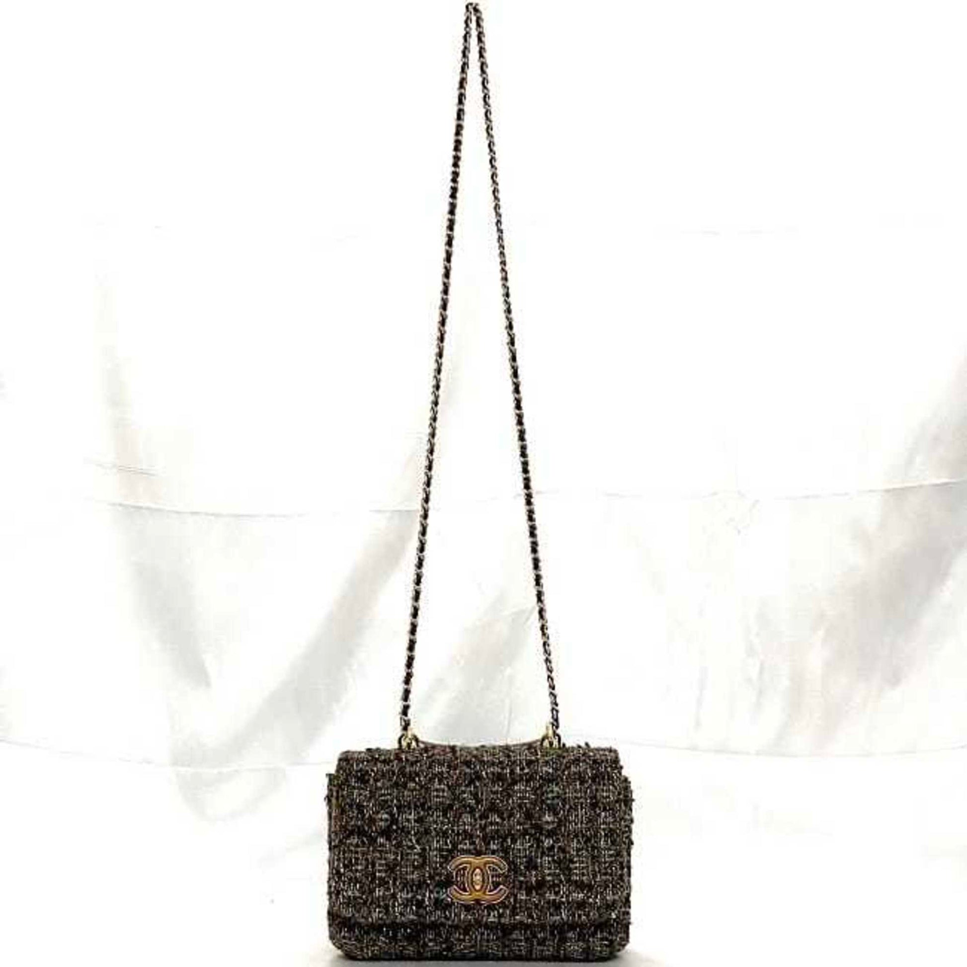 Chanel Brown Gray Tweed Wood Shoulder Bag ()
