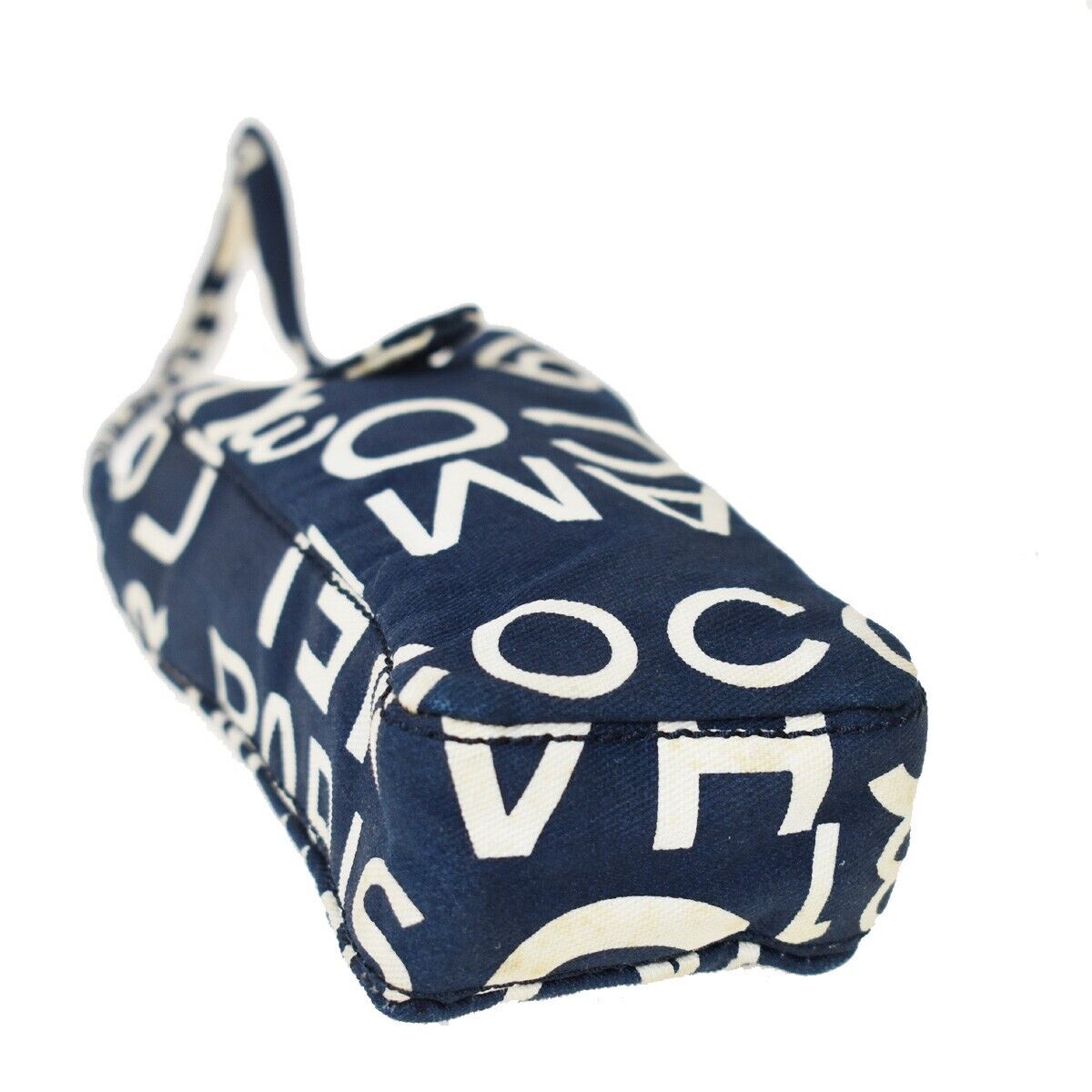 Introducing the CHANEL By Sea Pouch Hand Bag, a casual and stylish accessory designed for various occasions. This pouch handbag comes in a chic navy blue canvas exterior and an elegant ivory leather lining, making it a striking fashion statement. The silver hardware adds a touch of modern sophistication, complemented by a navy blue canvas handle/strap.