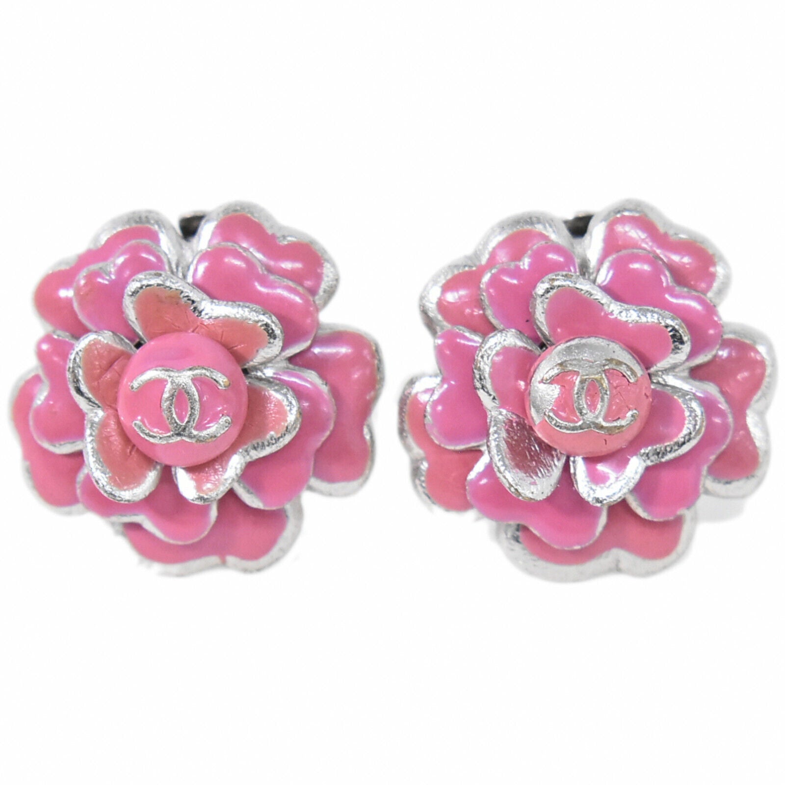 Chanel Camellia Silver Metal Earring Jewelry ()