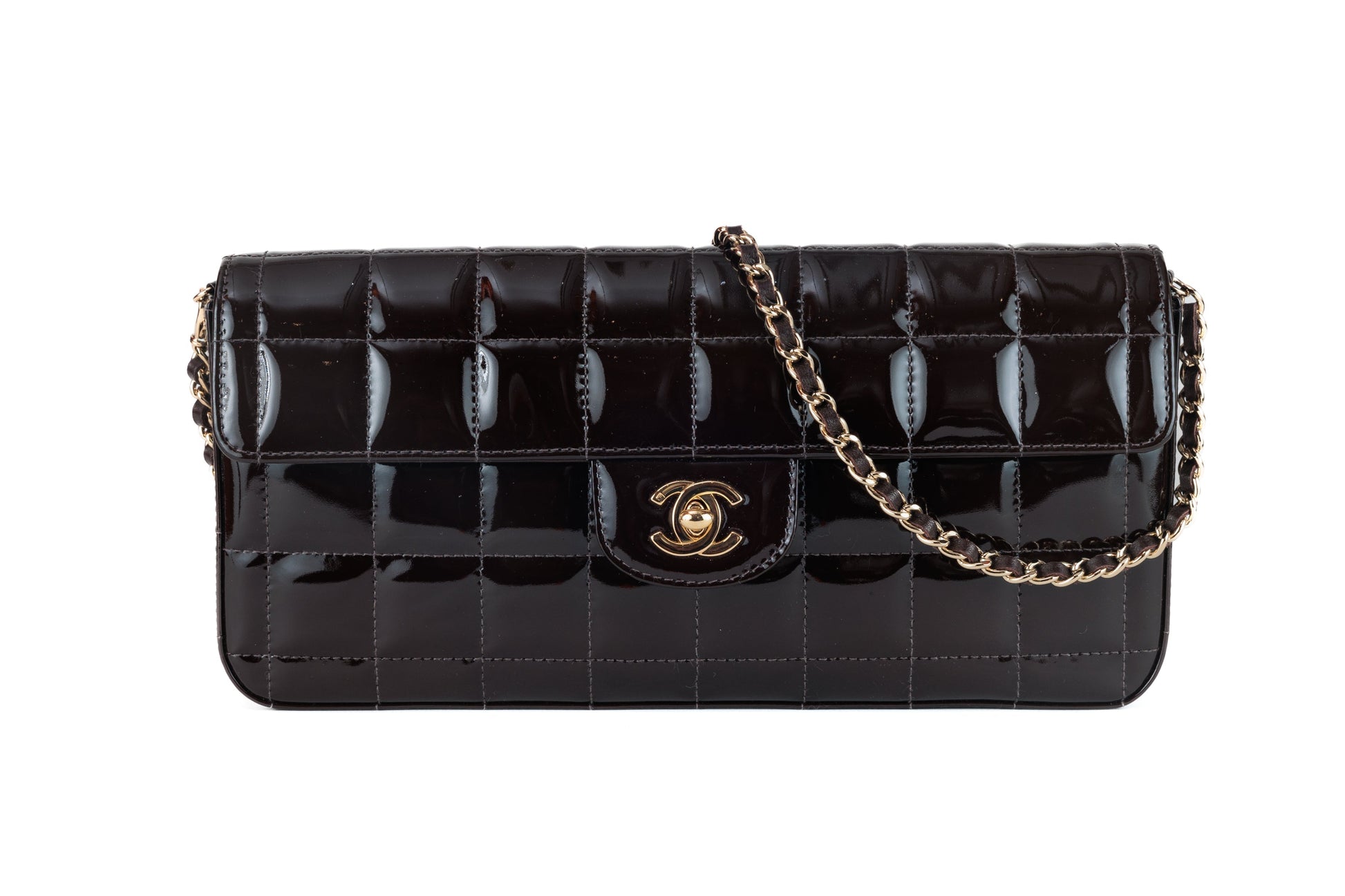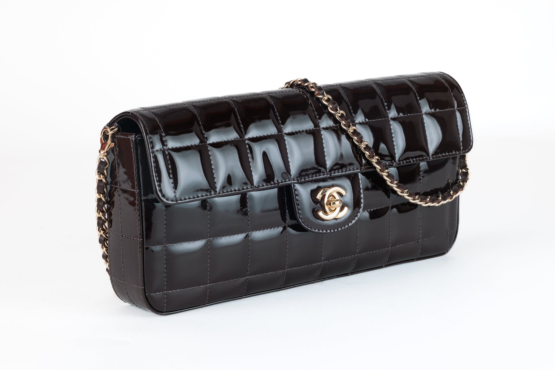 Chanel Brown Patent Leather Chocolate Bar East West Flap Bag with Gold Hardware