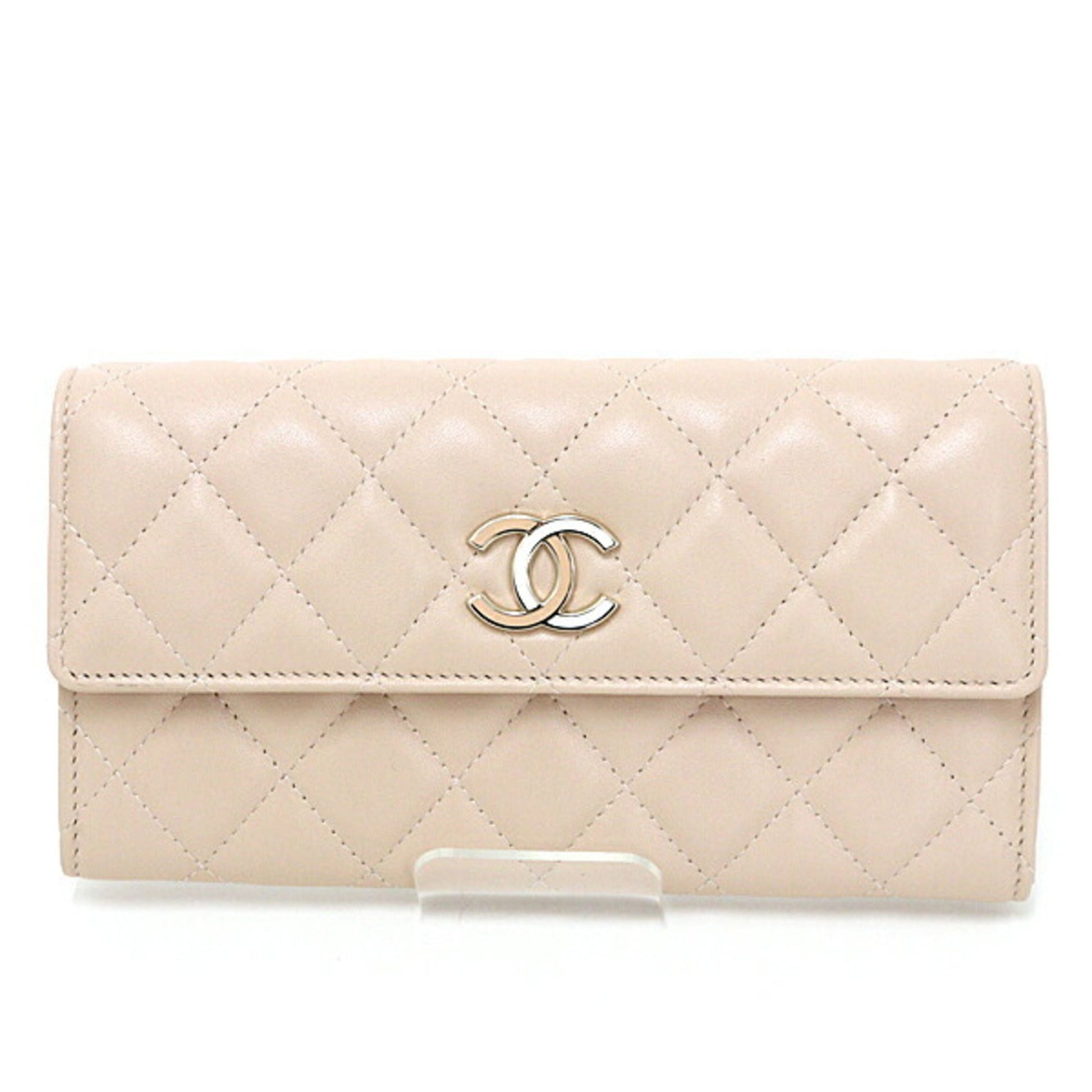 Chanel Light Beige Leather Long Wallet (Bi-Fold) ()