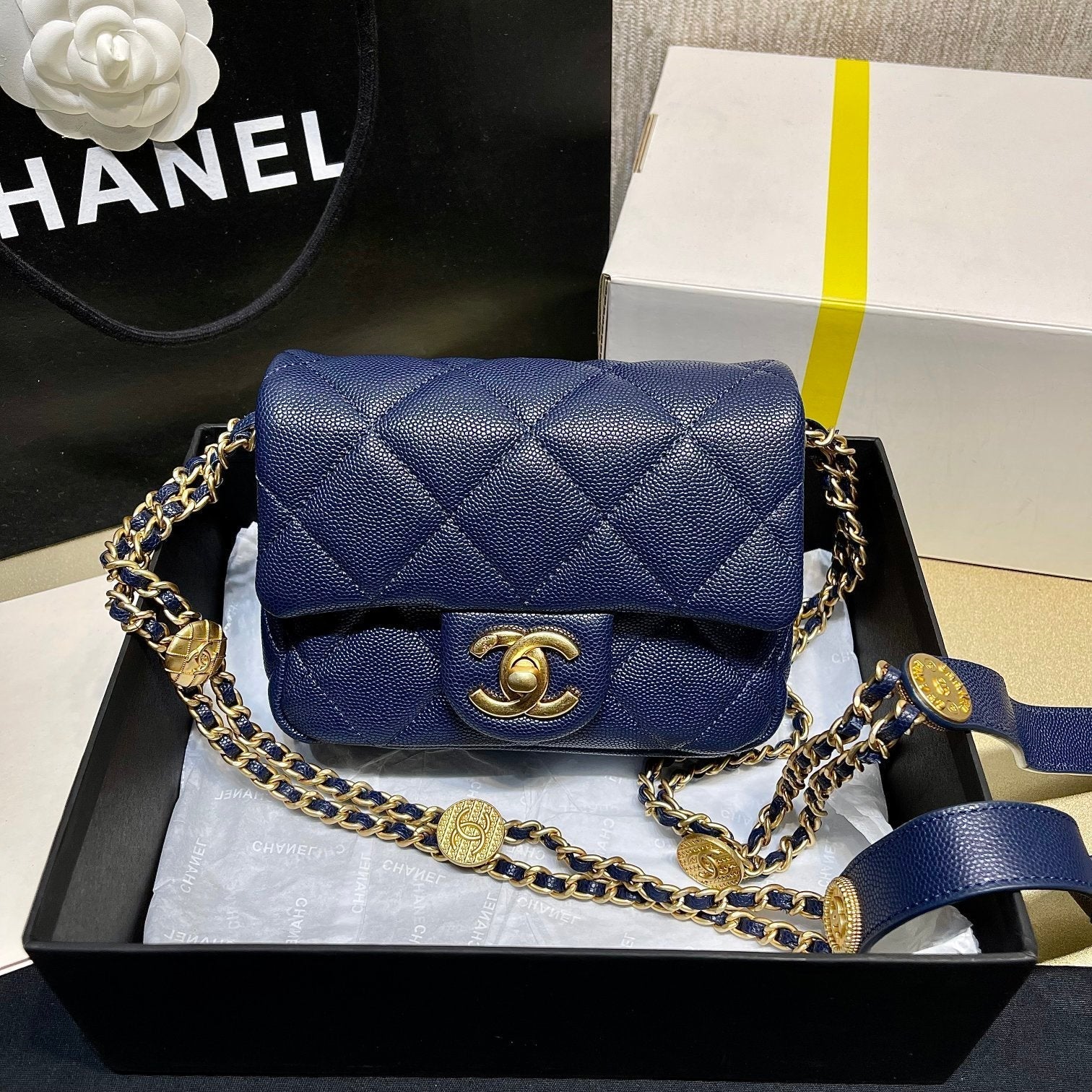 It comes with Dust box, Care manual, Tag and Paper bag.