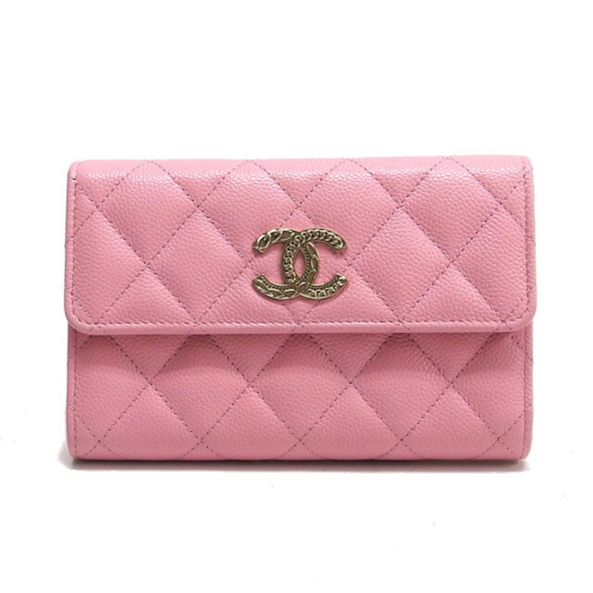 Brand: Chanel, Color: Pink, Material: Caviar leather, Dimensions: 10cm x 15cm x 2.5cm / 3.93'' x 5.9'' x 0.98'', Condition: Rank S. Rank S Used - Mint condition, like new item. Before purchasing, please refer to the images for the exact condition of the item. Before purchasing, please refer to the images of the accessories included with the item. Damage Ranking: Insignificant