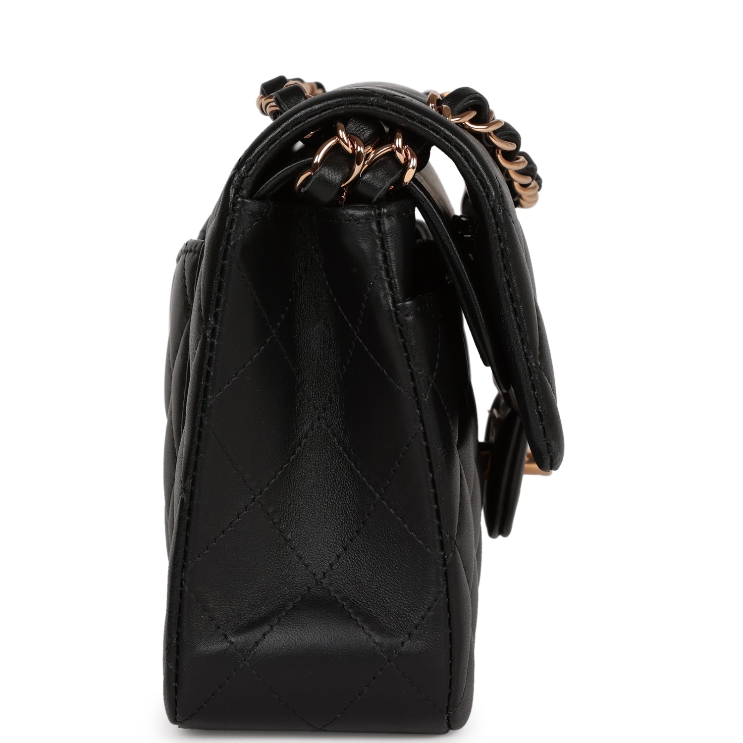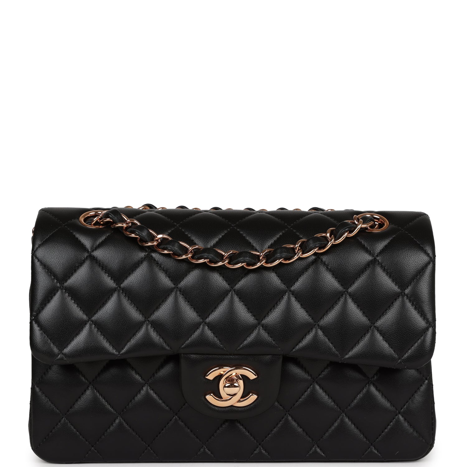Chanel a bag Small Classic Double Flap Bag Black Lambskin Rose Gold Hardware