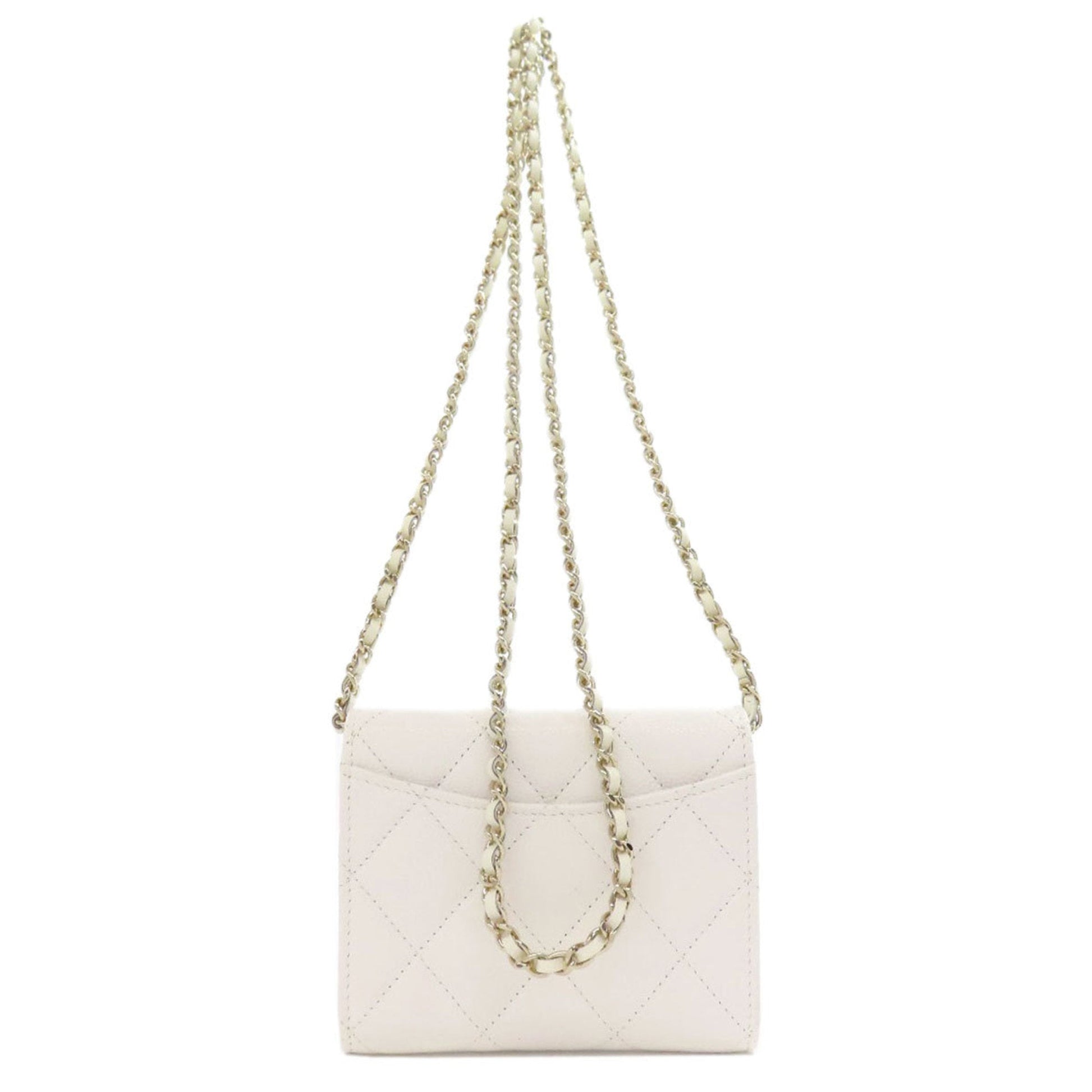 Chanel White Grained Calfskin Chain/Shoulder Wallet ()