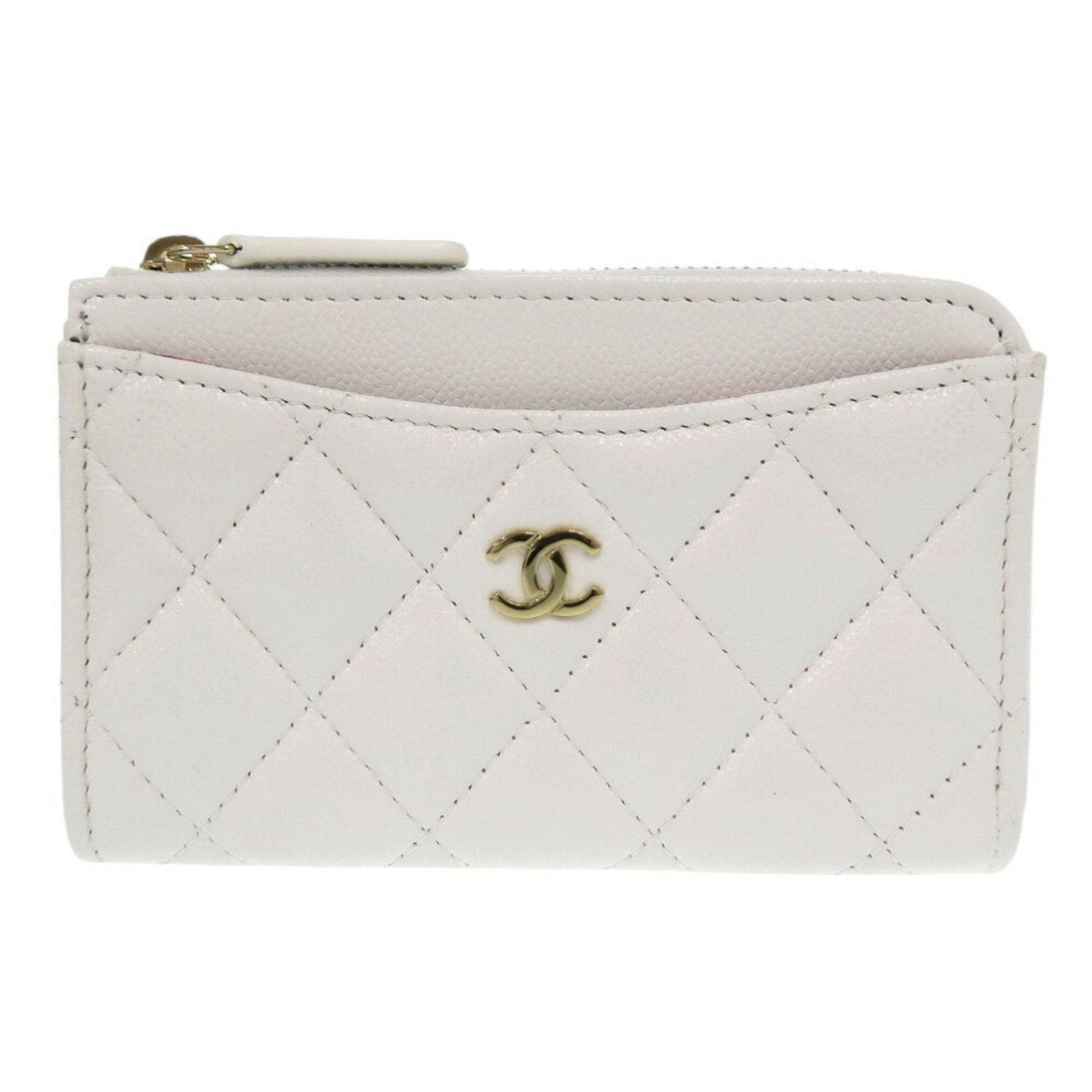 Brand: Chanel, Color: White, Material: Grained Calfskin, Dimensions: 8.5cm x 13cm x 1.5cm / 3.34'' x 5.11'' x 0.59'', Condition: Rank S. Rank S Used - Mint condition, like new item. Before purchasing, please refer to the images for the exact condition of the item. Before purchasing, please refer to the images of the accessories included with the item. Bag Common Damage Scratch: Insignificant