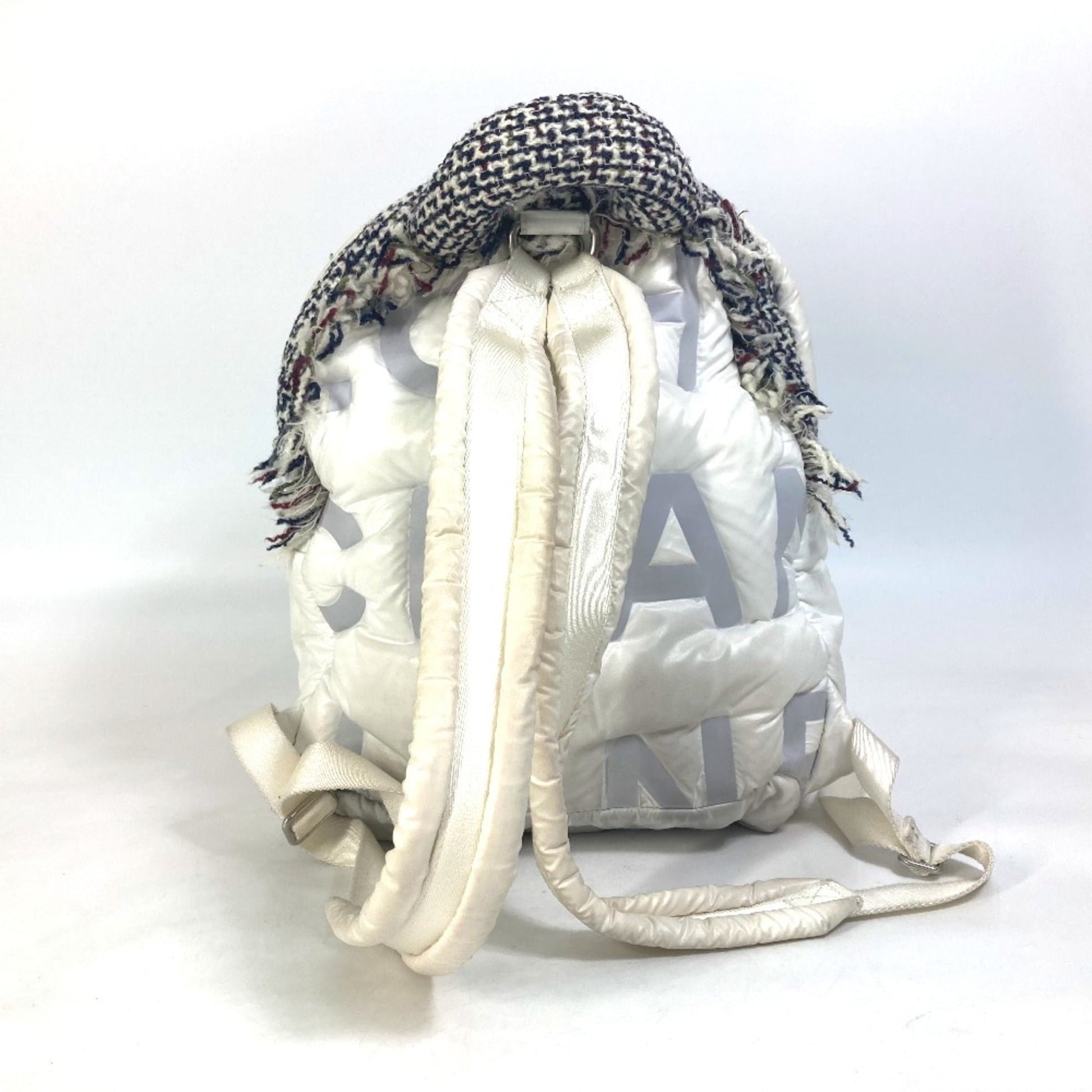 Brand: Chanel, Model Number: A91933, Color: White, Material: Cloth, Dimensions: W28.5cmxH34.5cmxD14.5cm/W11.2xH13.6xD5.7inch The base is used to measure the width. The center is measured for the height., Serial Number: 2655****, Condition: Used - Traces of usage, scratches / dirt can be seen but generally in good condition