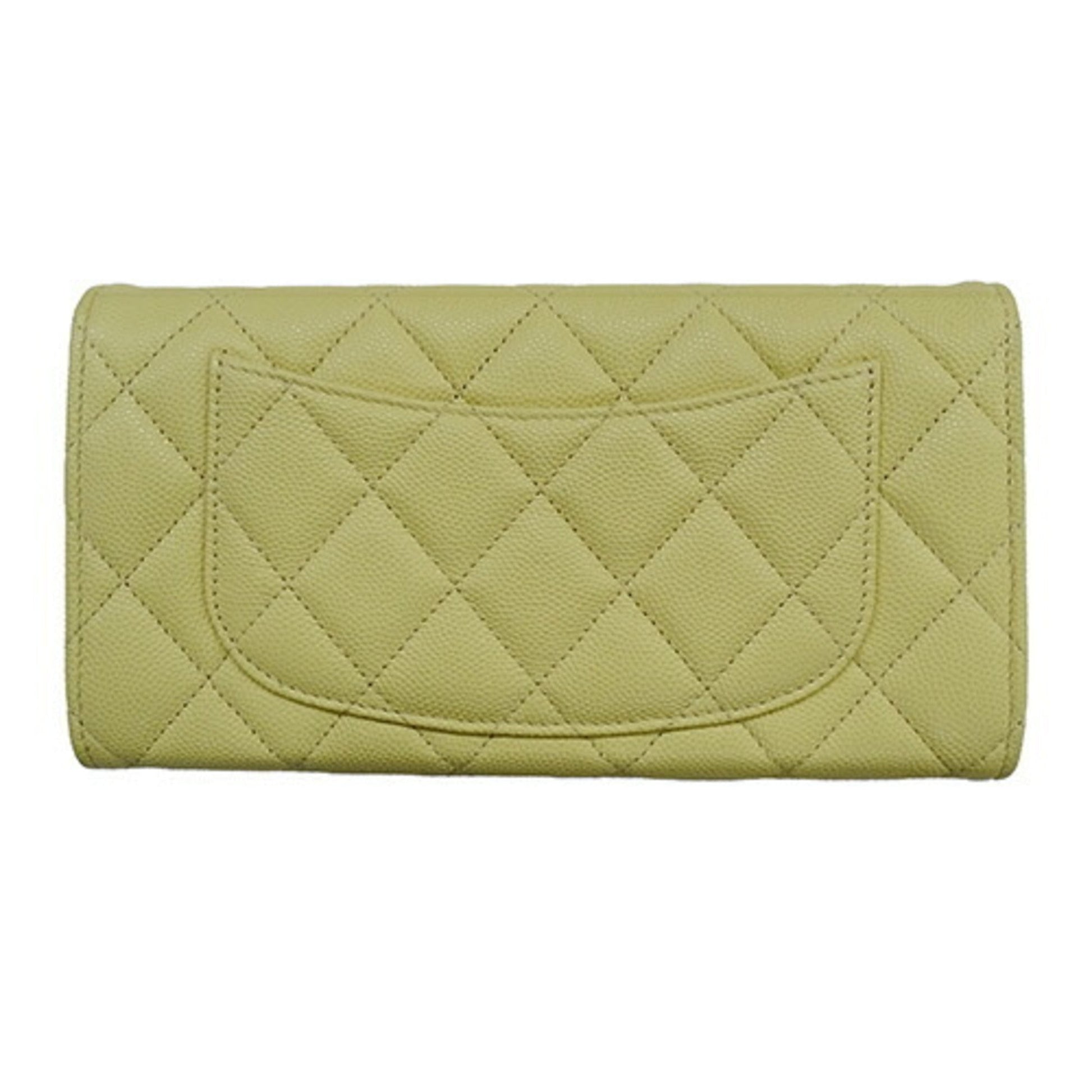 Chanel Yellow Grained Calfskin Long Bill Wallet (Bi-Fold) ()