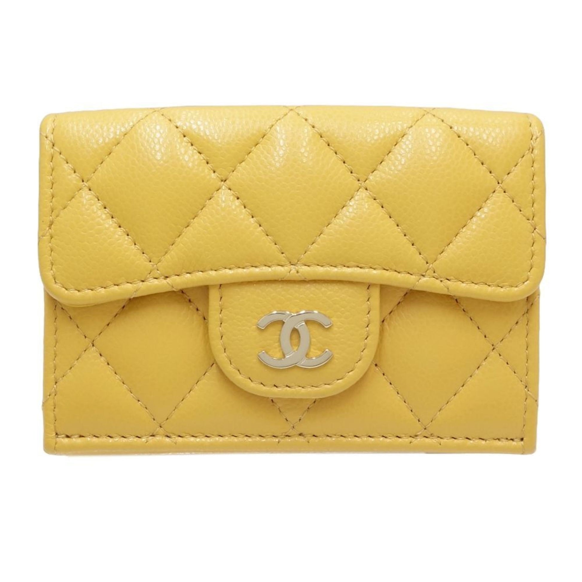 Brand: Chanel, Color: Yellow, Material: Grained Calfskin, Dimensions: 7.5cm x 10.5cm x 4cm / 2.95'' x 4.13'' x 1.57'', Condition: Rank AB. Rank AB Used - Traces of usage, scratches / dirt can be seen but generally in good condition. Before purchasing, please refer to the images for the exact condition of the item. Before purchasing, please refer to the images of the accessories included with the item. Bag Common Damage Scratch: Slight