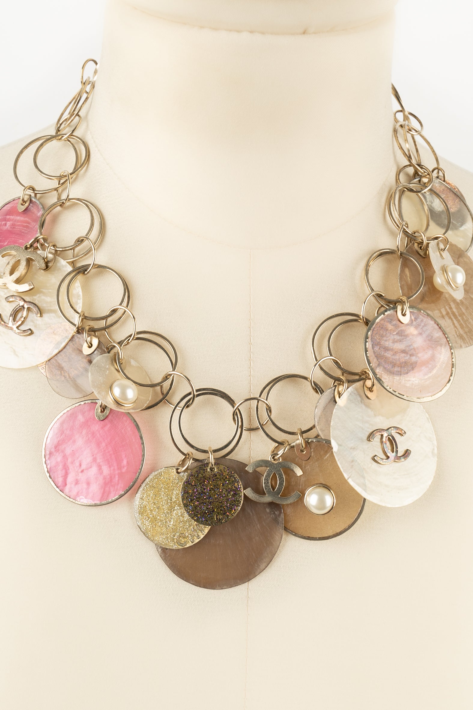 CHANEL - (Made in France) Ceinture / Collier en métal champagne et breloques. Collection Printemps/Eté 2007.