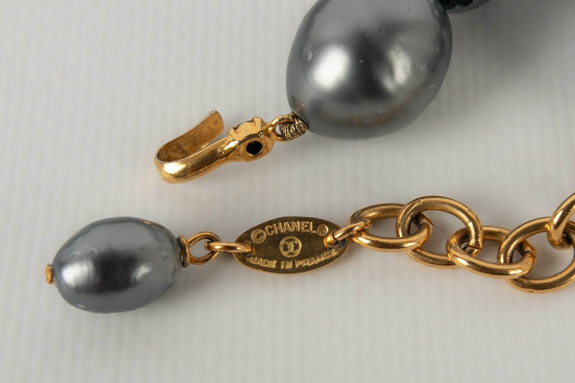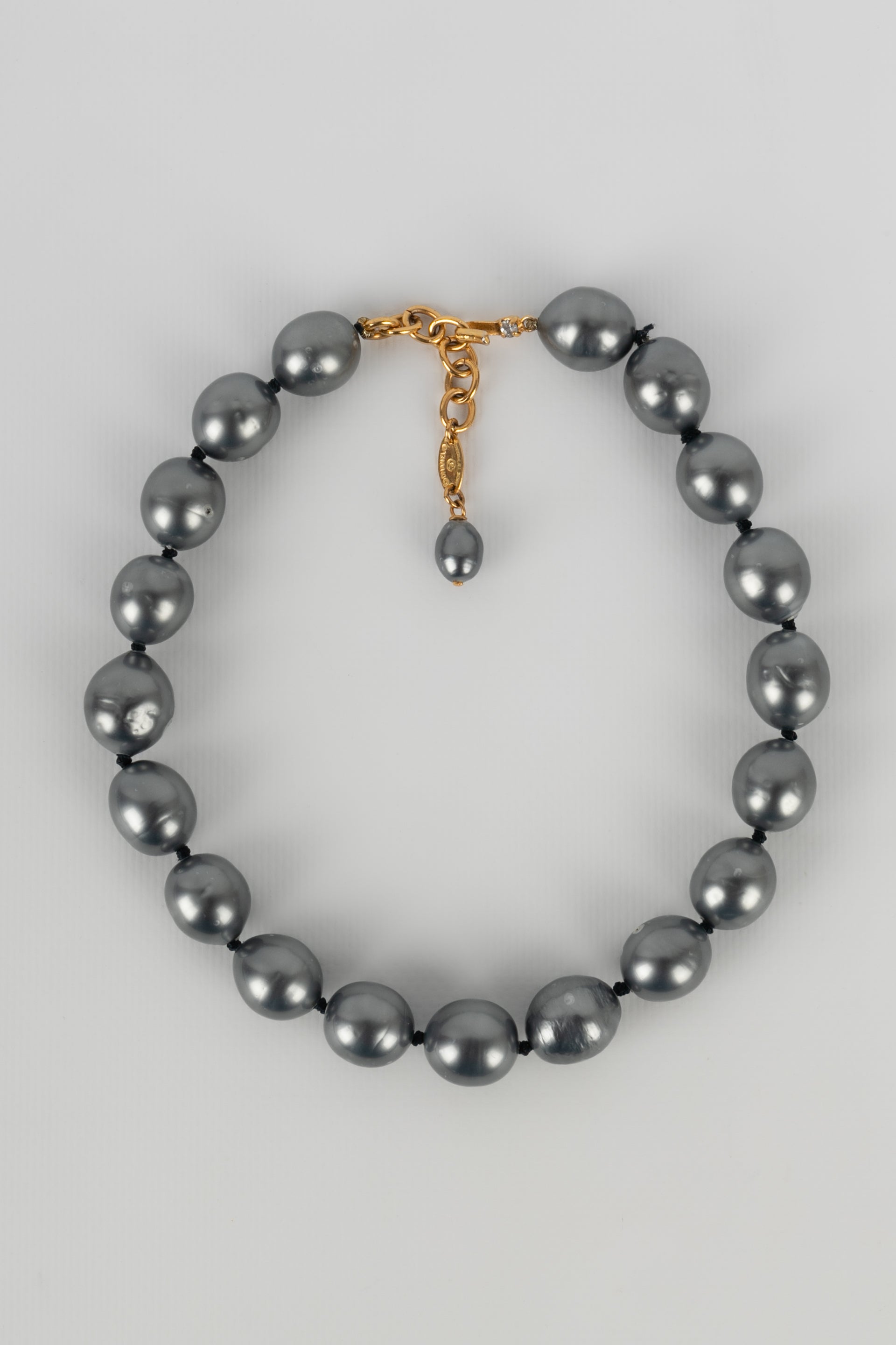 CHANEL -(Made in France) Collier court de perles nacrées fantaisies de couleur grise. A signaler, les perles comportent des impactes.