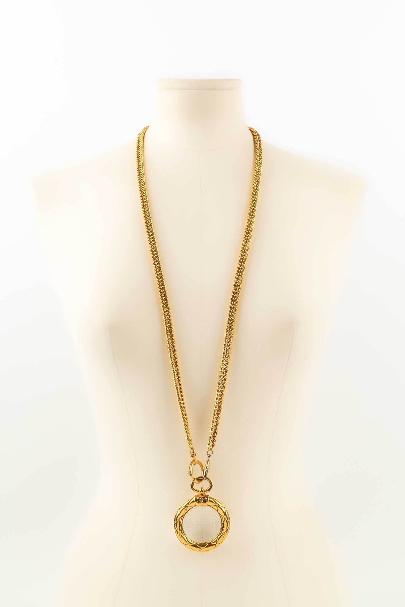 CHANEL - (Made in France) Collier loupe en métal doré datant des années 1980.