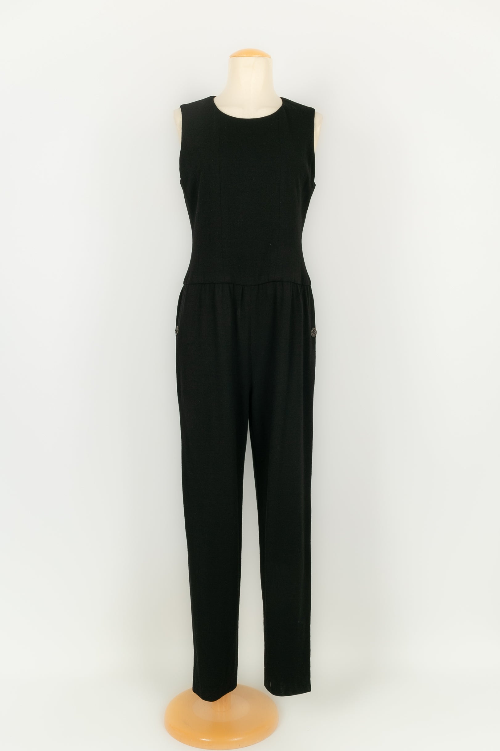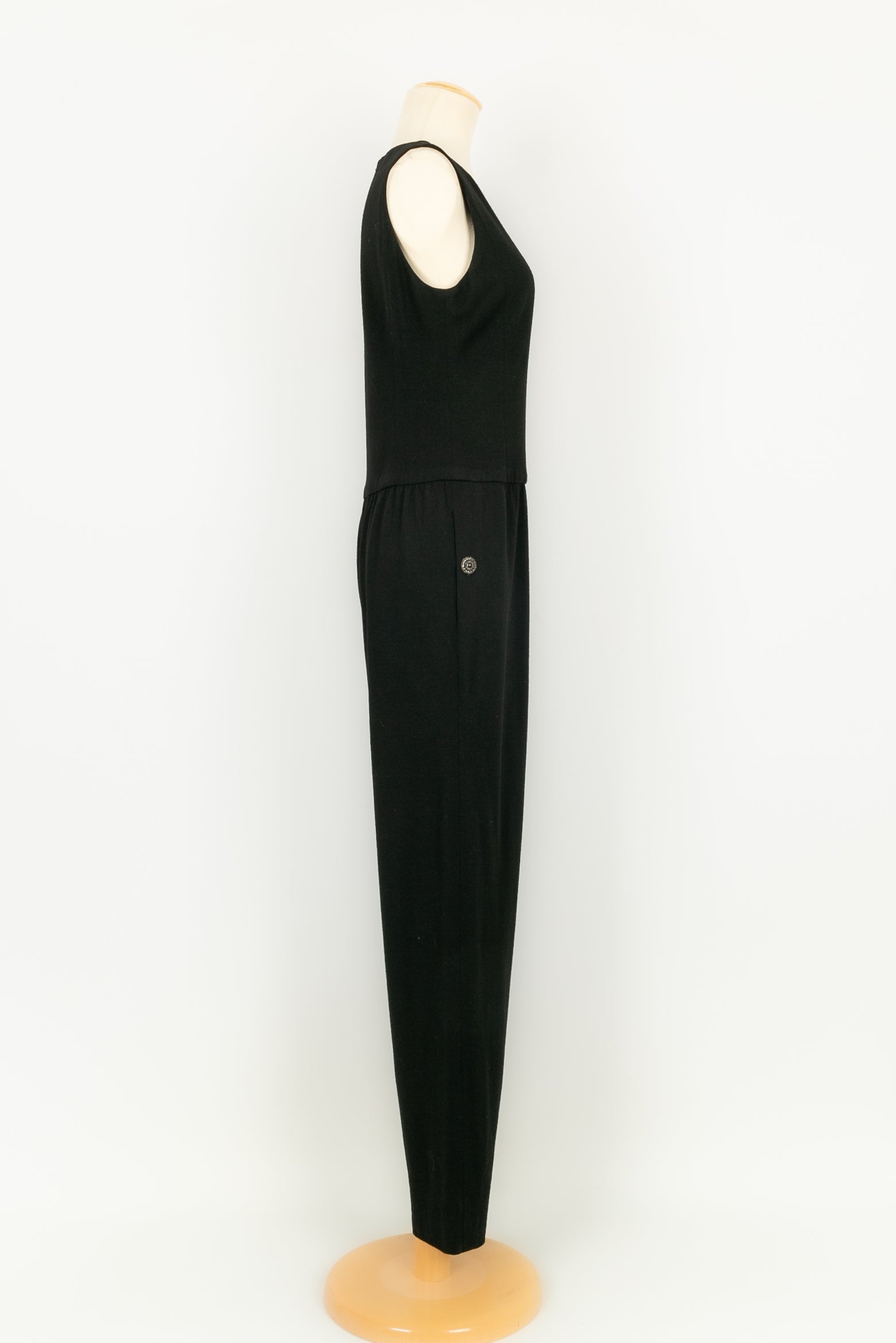 CHANEL - Combinaison en laine noire et doublure en soie. Pas de taille indiquée ou d'étiquette de composition, elle convient à un 42FR.