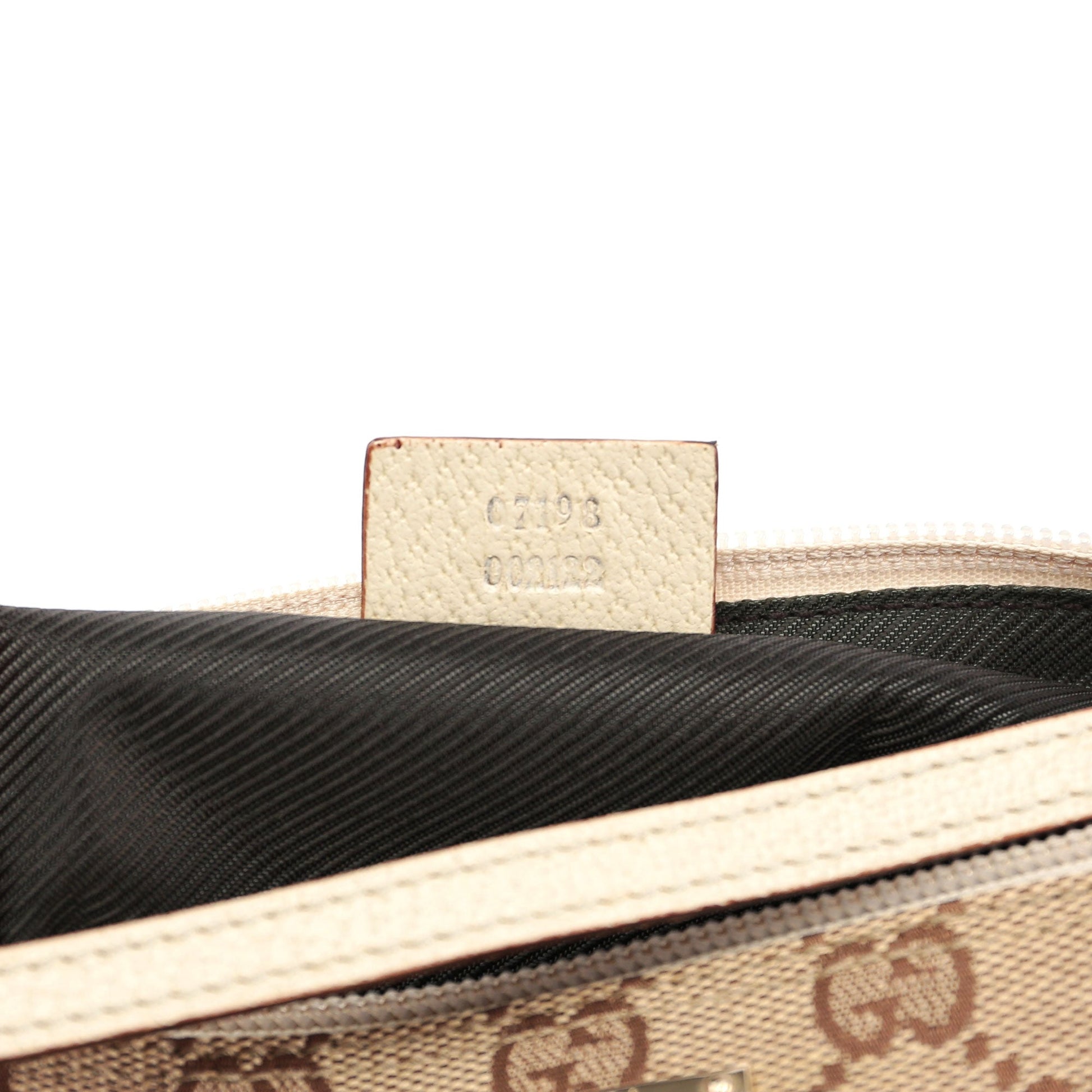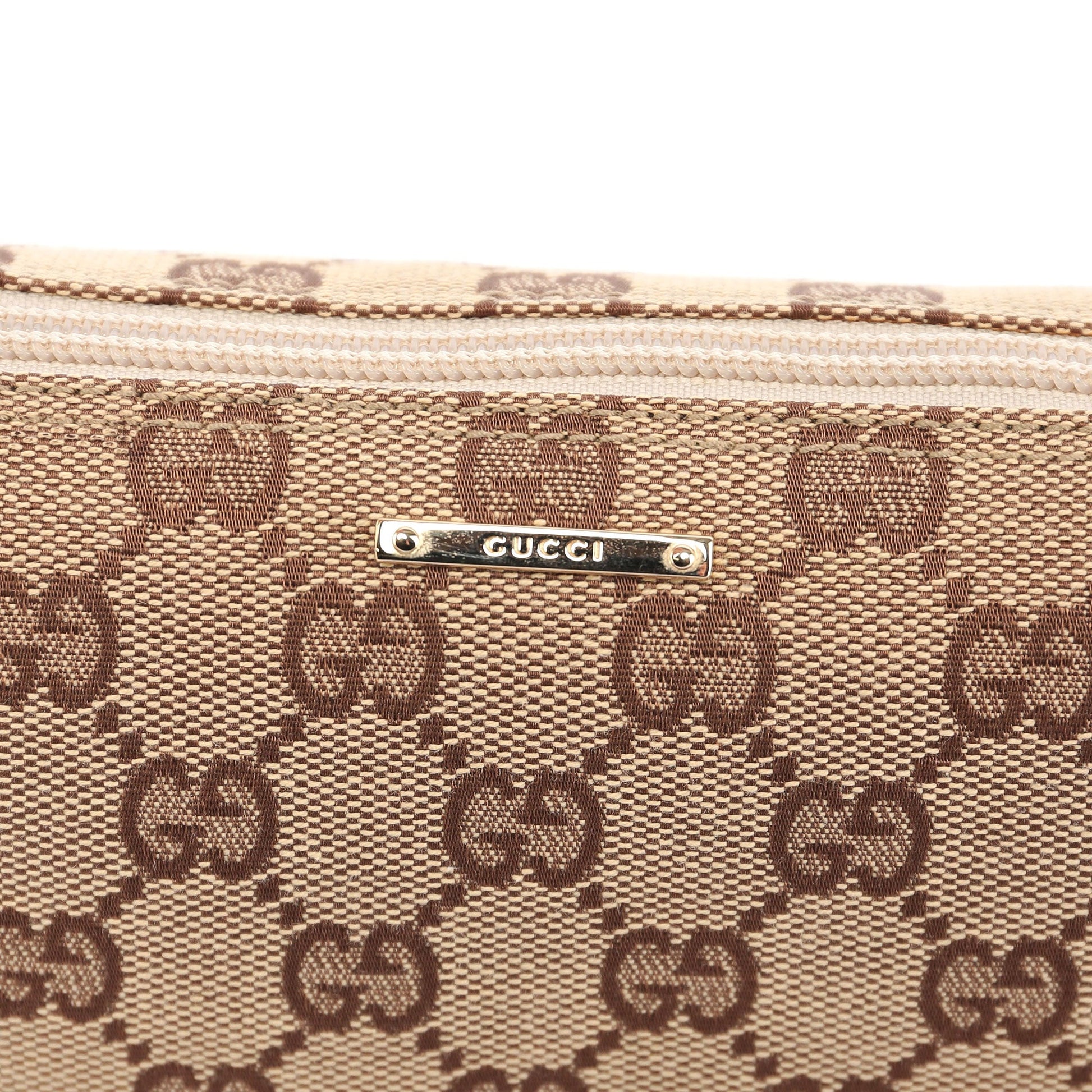 Gucci Explore timeless elegance with the Gucci GG Boat Pochette by Tom Ford, circa late 1990s. This exquisite piece combines beige GG canvas with tonal leather trim and gold-tone hardware. Its secure zip closure and satin-lined interior offer luxury and practicality, while the subtle Gucci plaque adds a touch of heritage. A perfect blend of vintage charm and sophistication.
