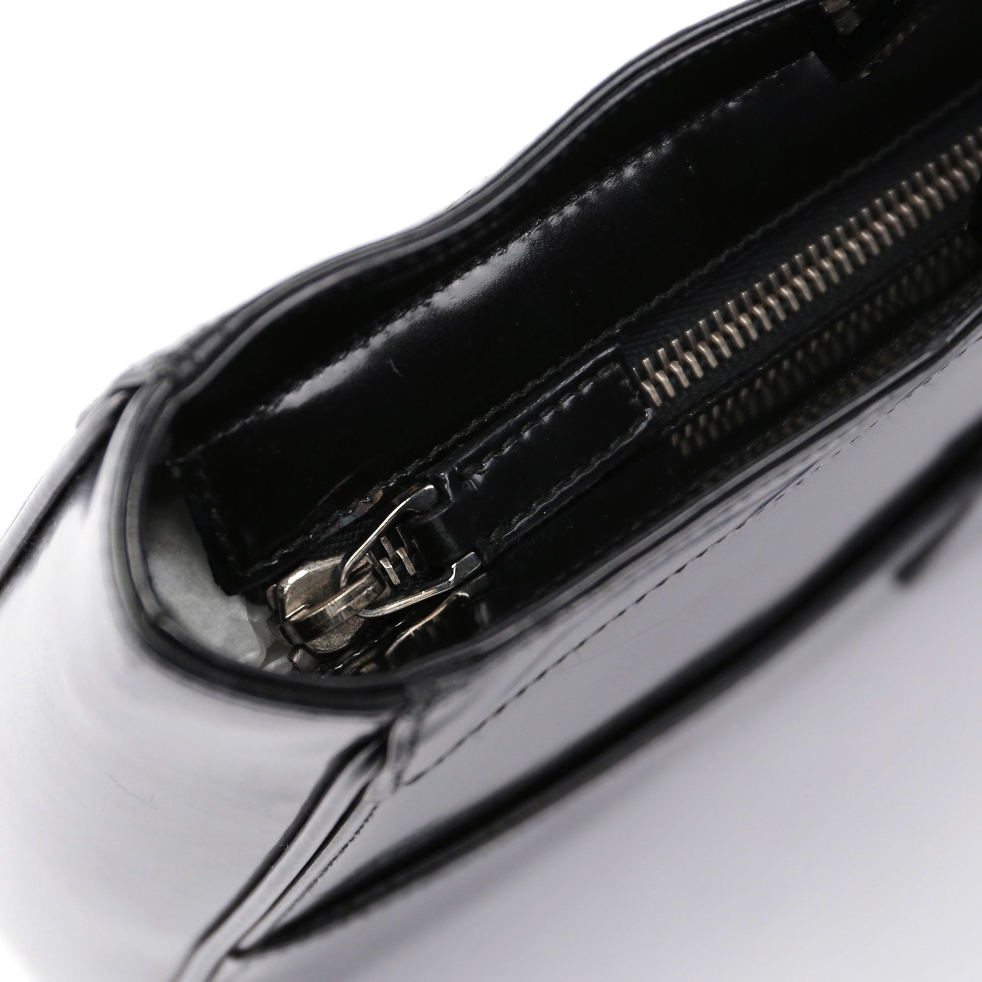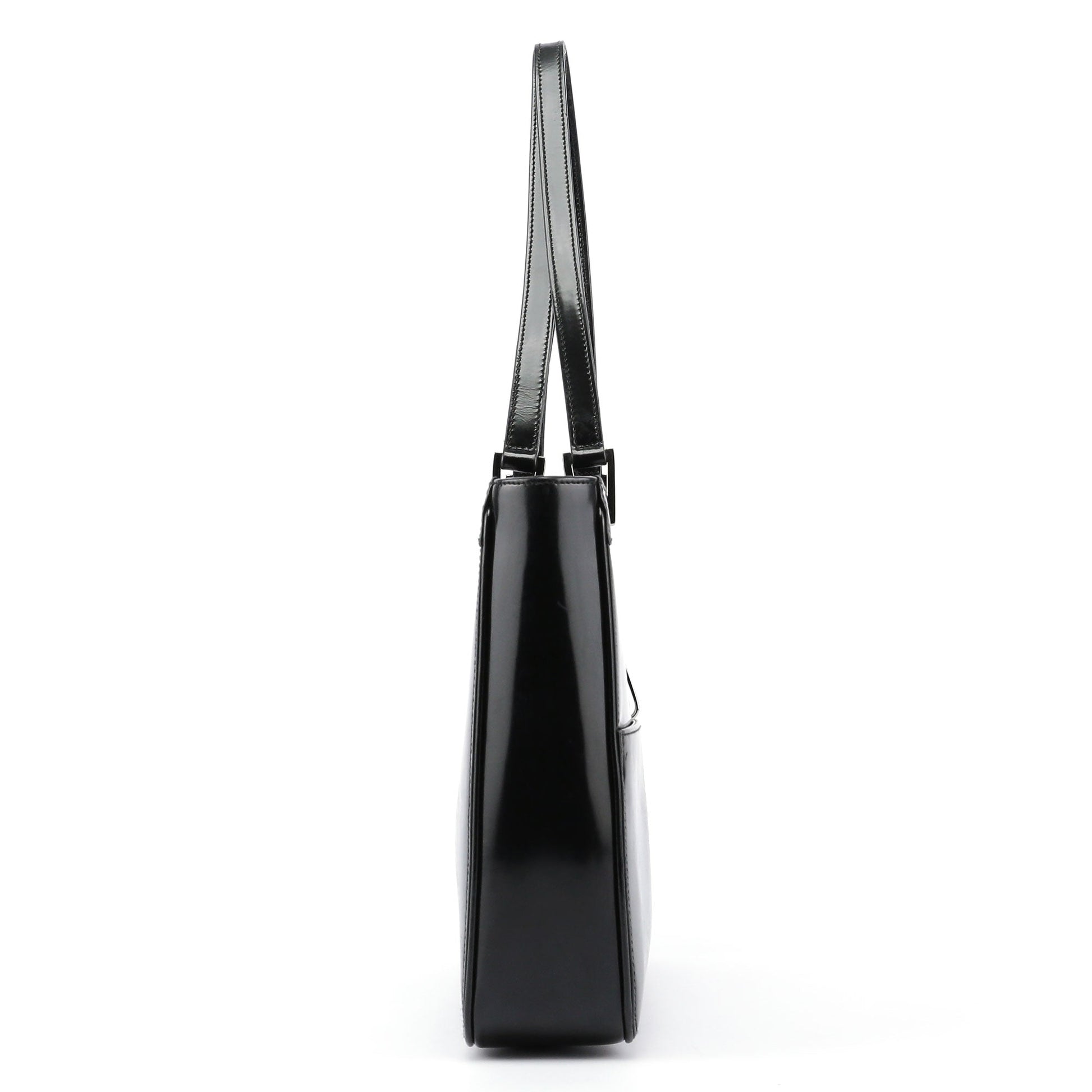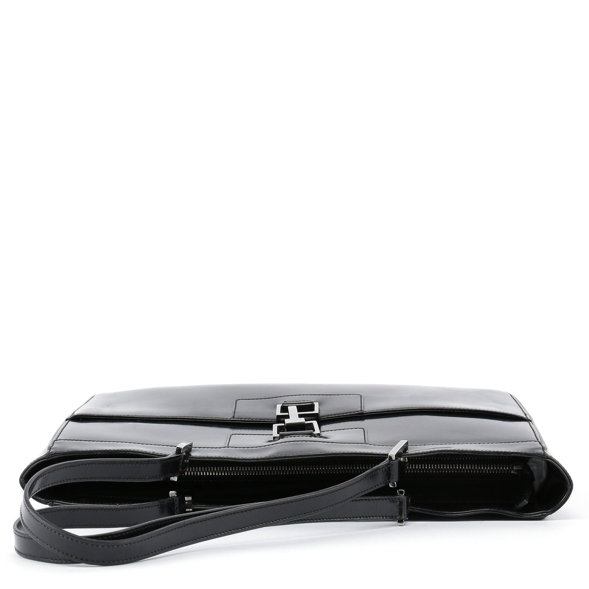 Designed by Tom Ford in the late 1990s, the Gucci Jackie tote epitomizes timeless elegance. Handcrafted in black patent leather, it features silver-tone hardware delicately engraved with the Gucci logo. The iconic Jackie clasp closure adds a touch of sophistication, while the satin-lined interior boasts a convenient zipper pocket for organization.