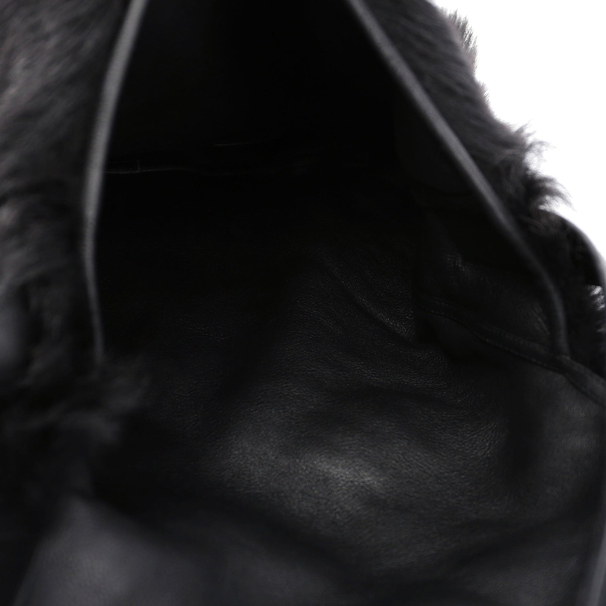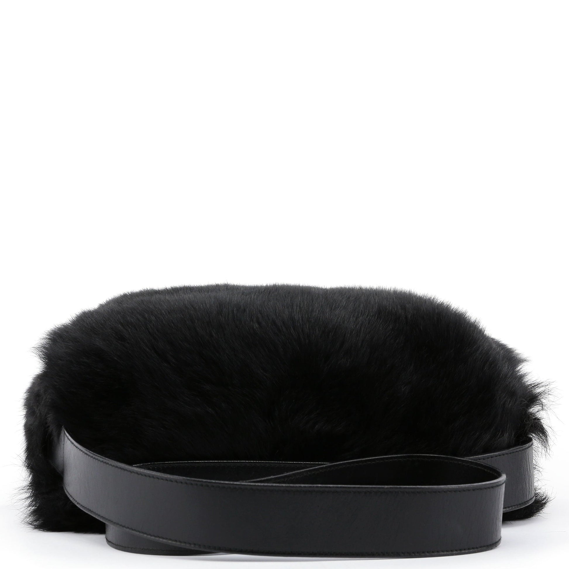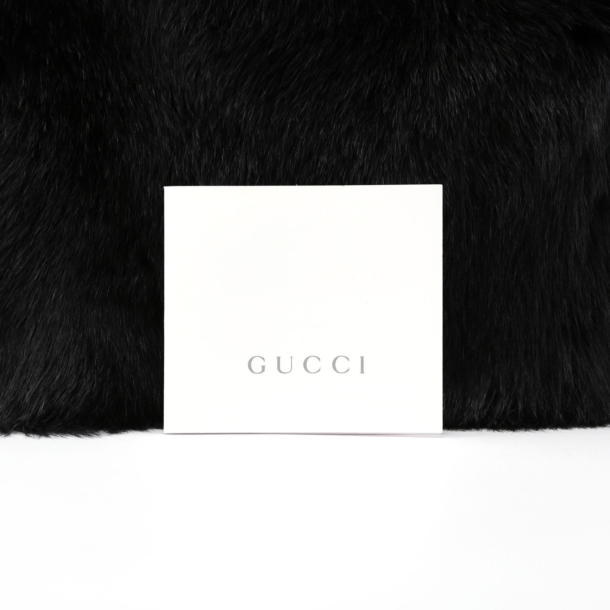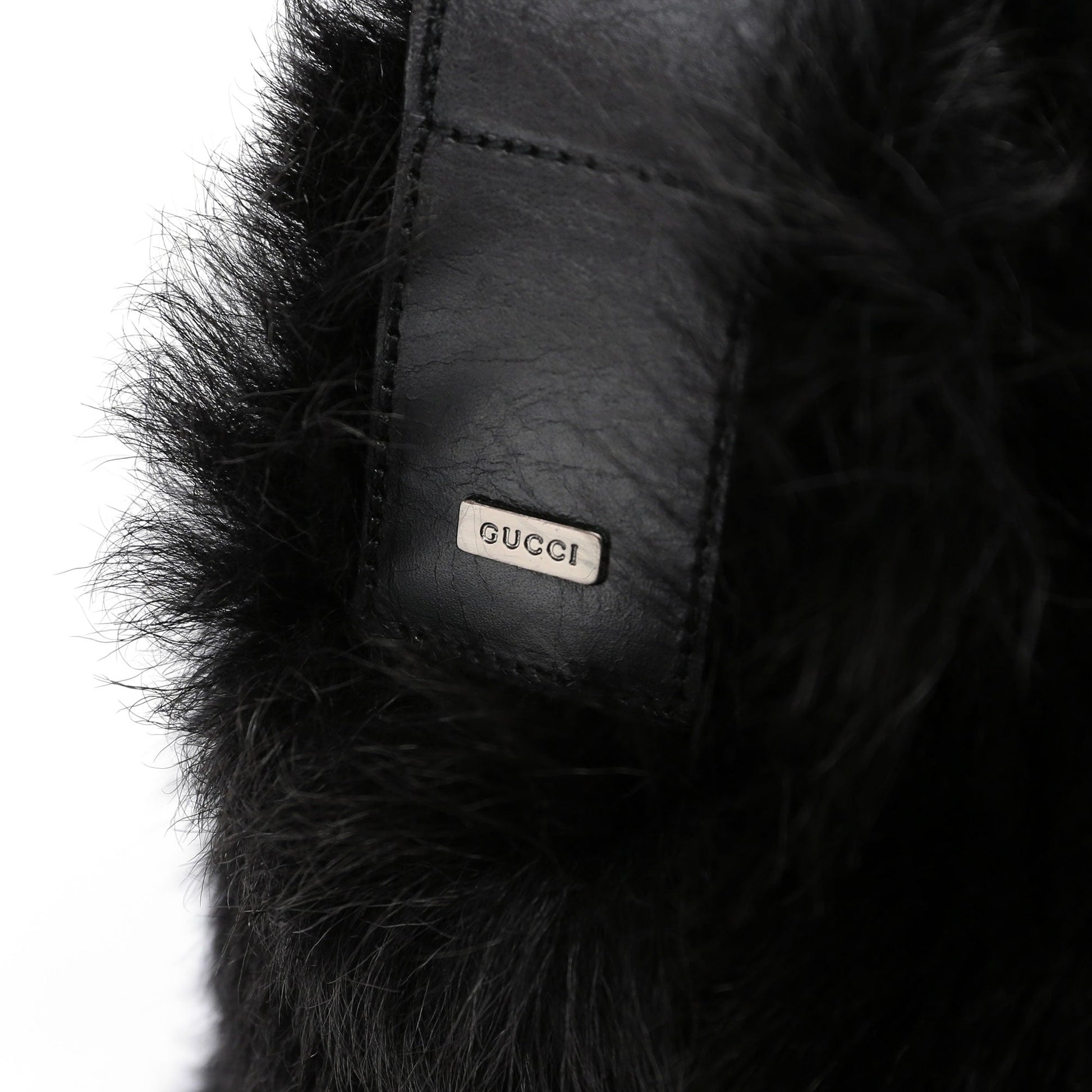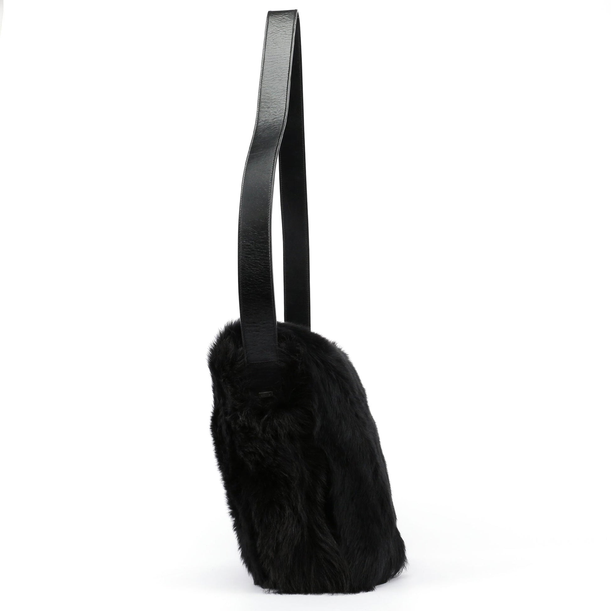 Designed by Tom Ford in the late 1990s, this Gucci shoulder bag with flap closure is a luxurious statement piece. Handcrafted from luxurious black mink fur and soft lambskin, it exudes opulence. The interior, lined with supple leather, adds to its premium feel, combining style with functionality.