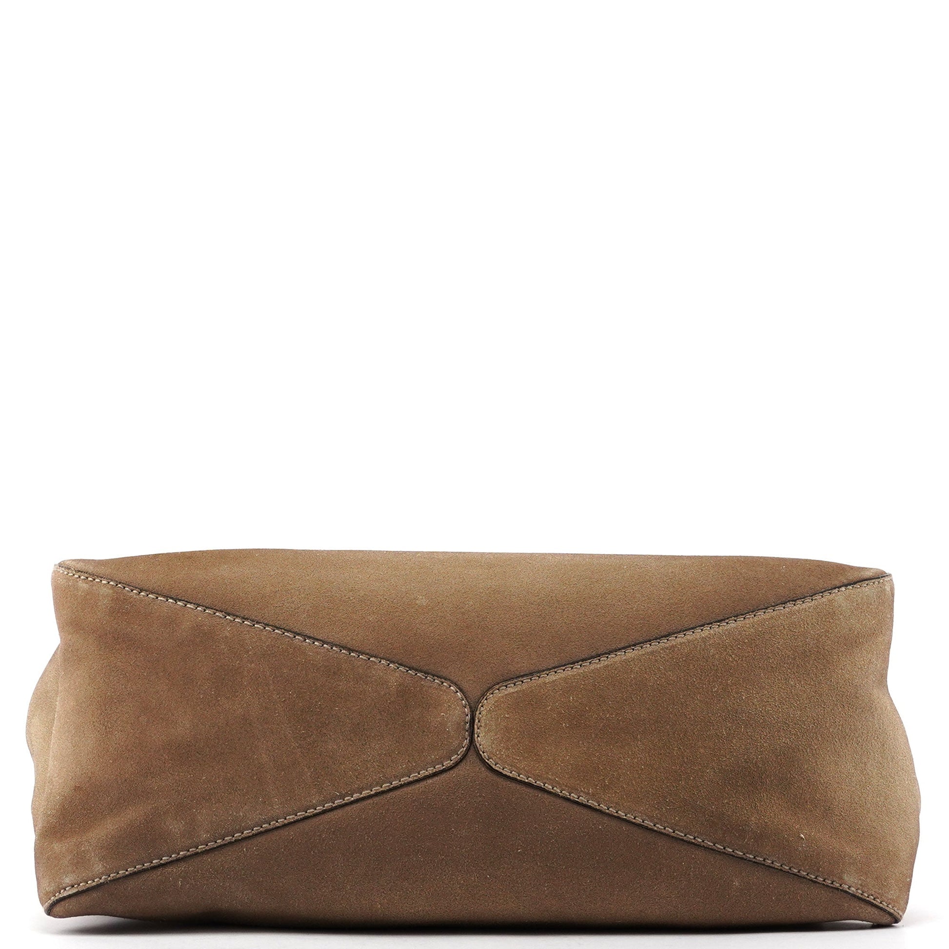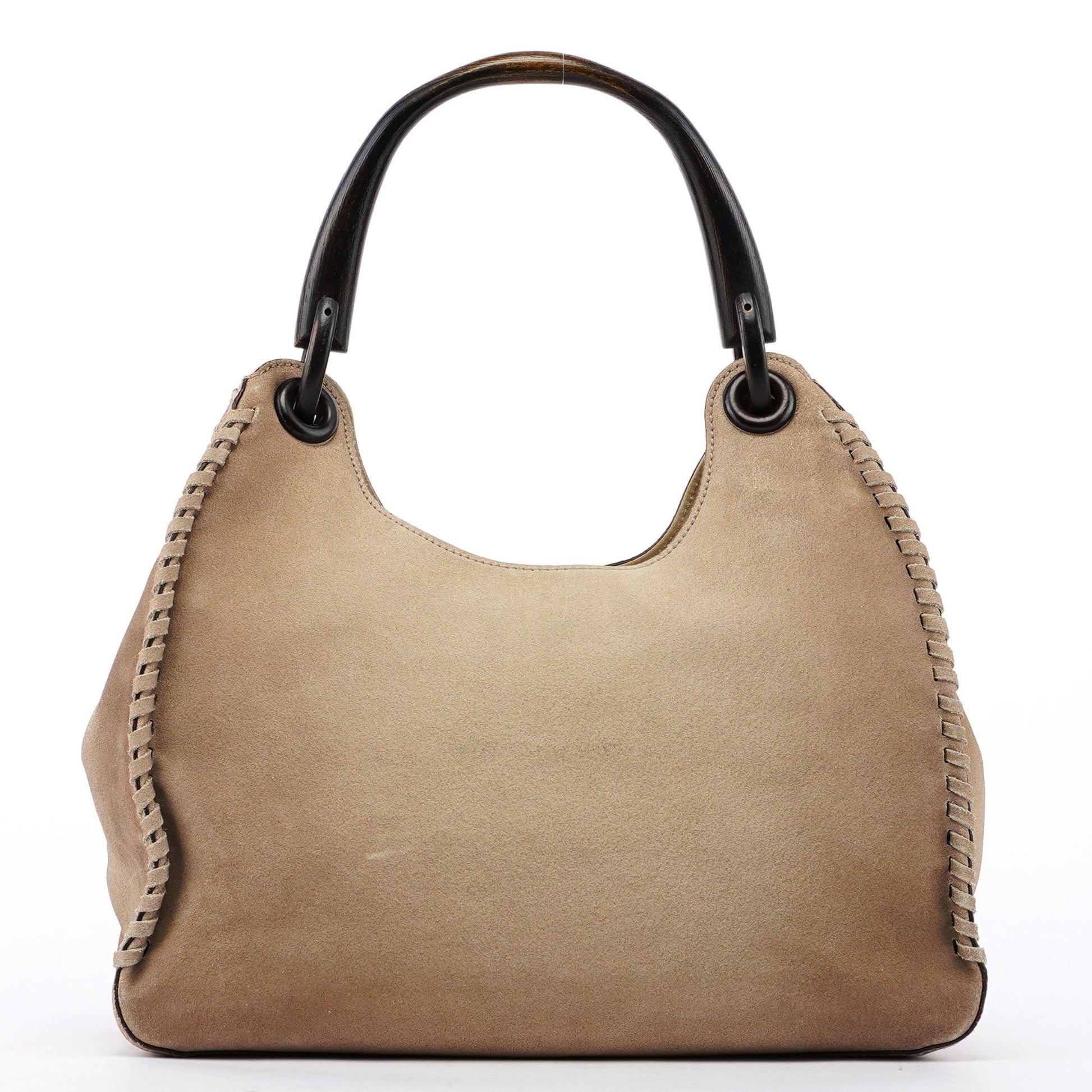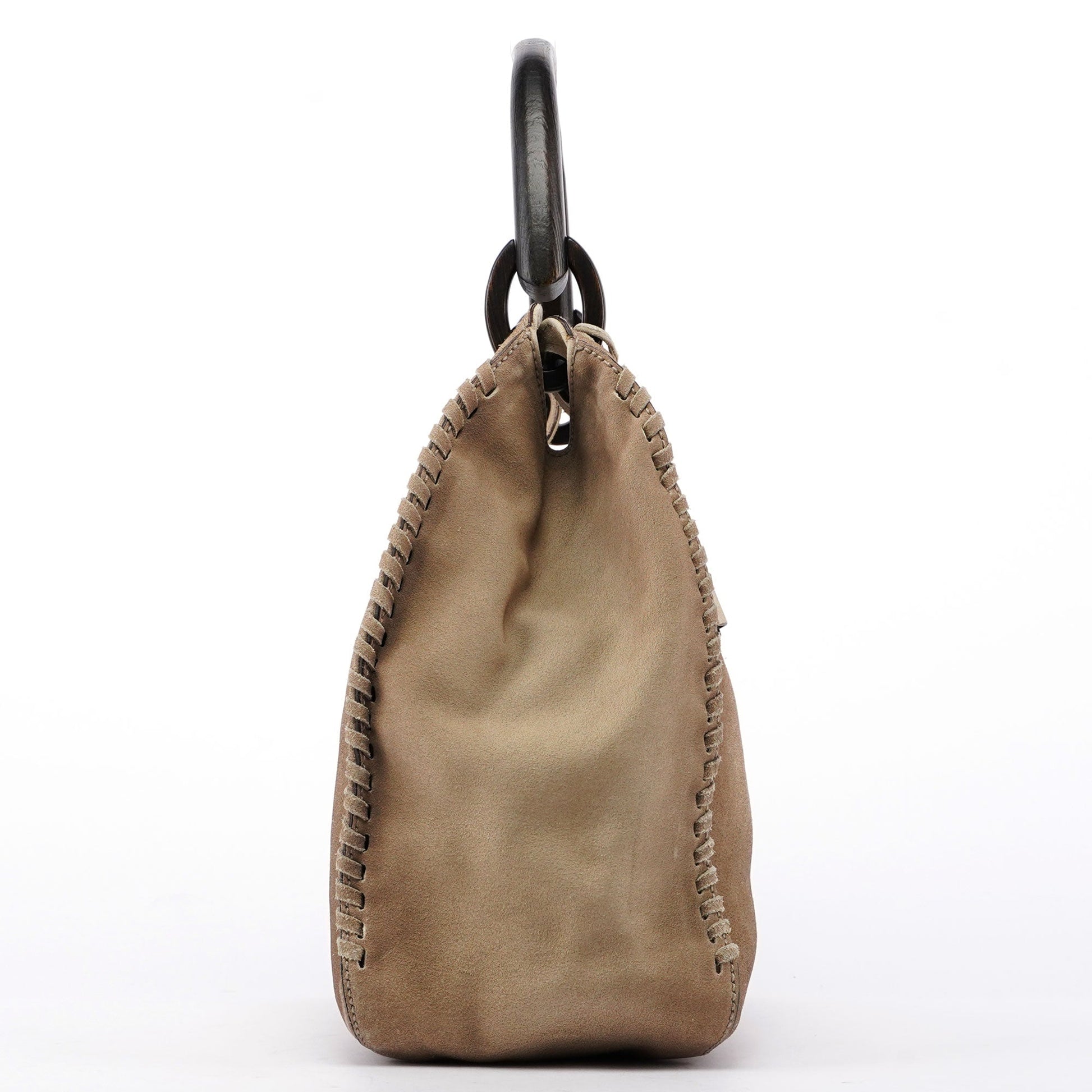 Beige Suede Wood Handle Shoulder Bag