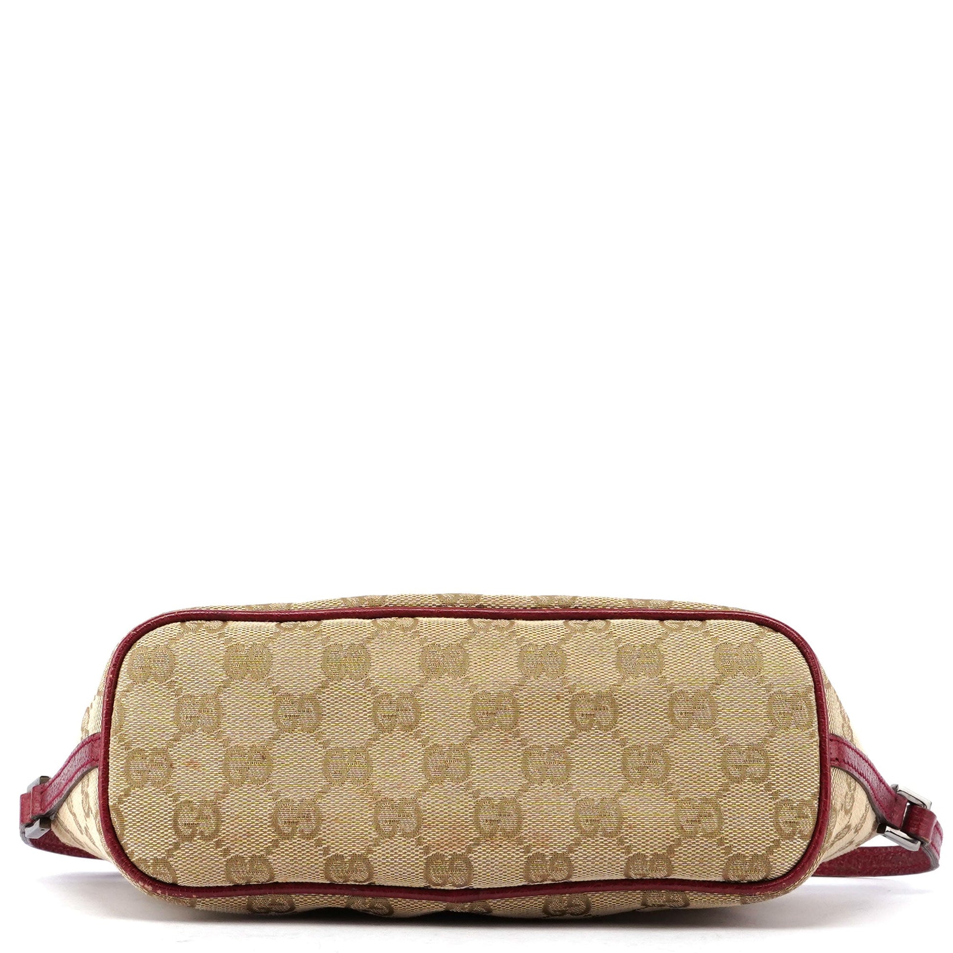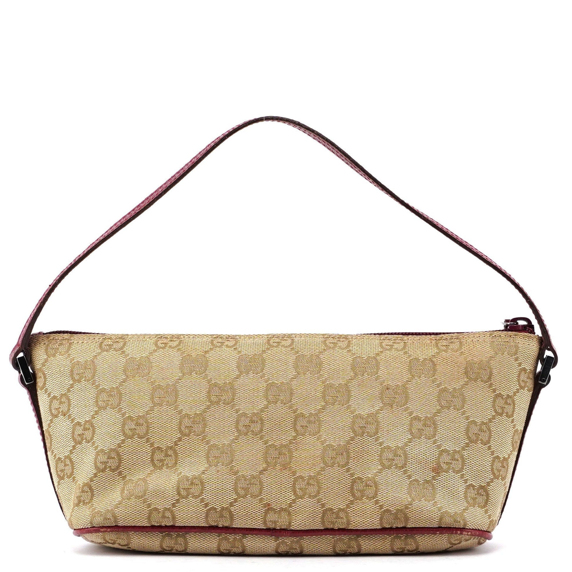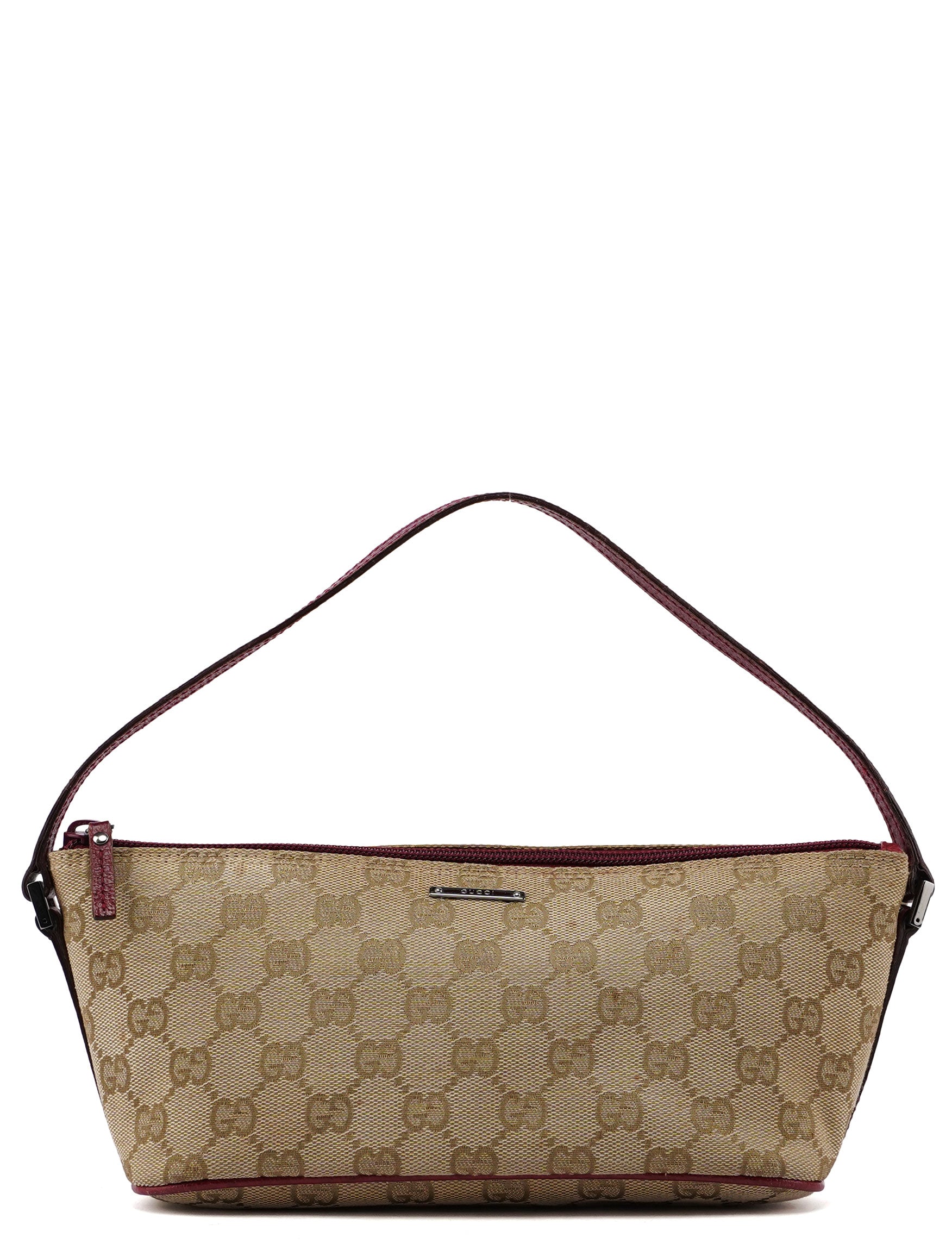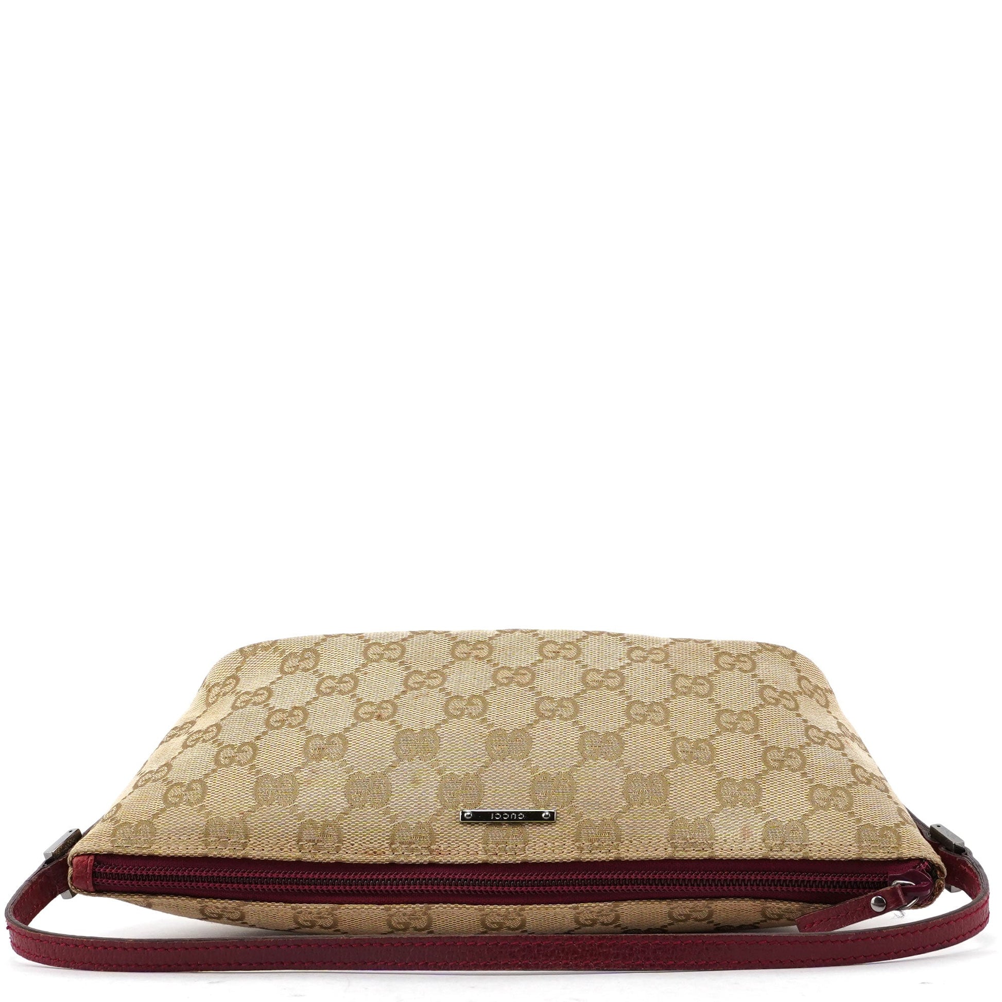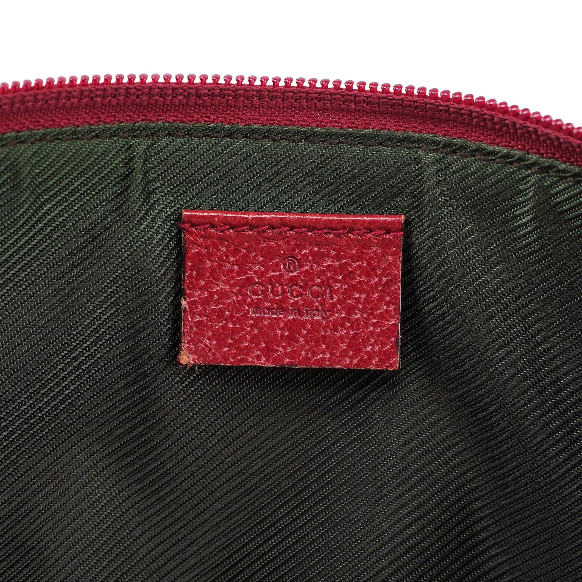 Explore timeless elegance with the Gucci GG Boat Pochette by Tom Ford, circa late 1990s. This exquisite piece combines beige GG canvas with red leather trim and silver-tone hardware. Its secure zip closure and satin-lined interior offer luxury and practicality, while the subtle Gucci plaque adds a touch of heritage. A perfect blend of vintage charm and sophistication.