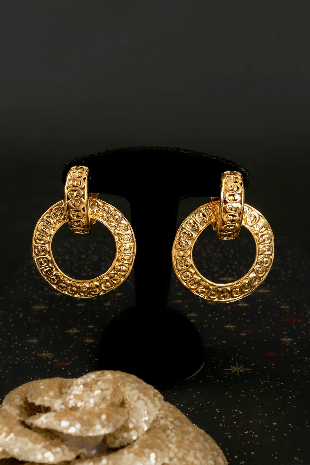 CHANEL - (Made in France) Boucles d'oreilles clips en métal doré.