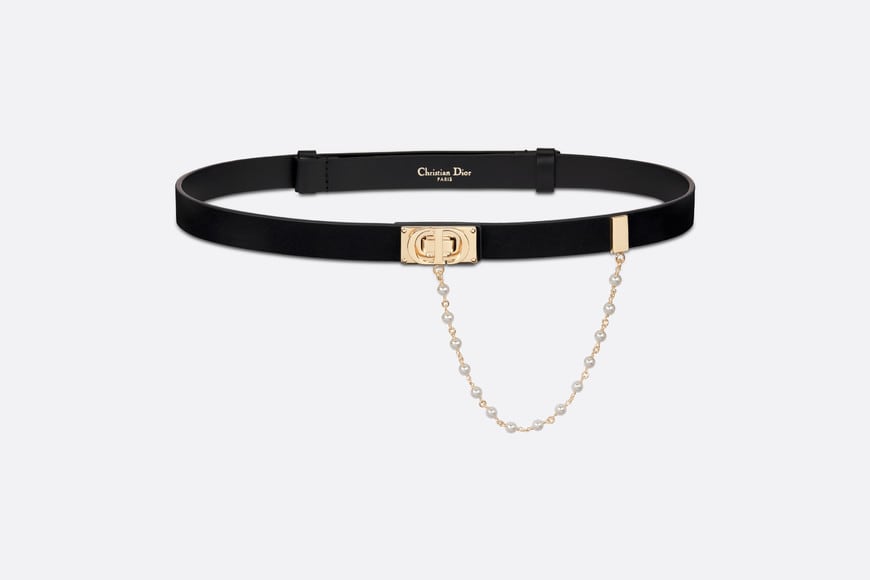 Dior Caro Belt • Black Smooth Calfskin and White Glass Pearls, 20 MM
