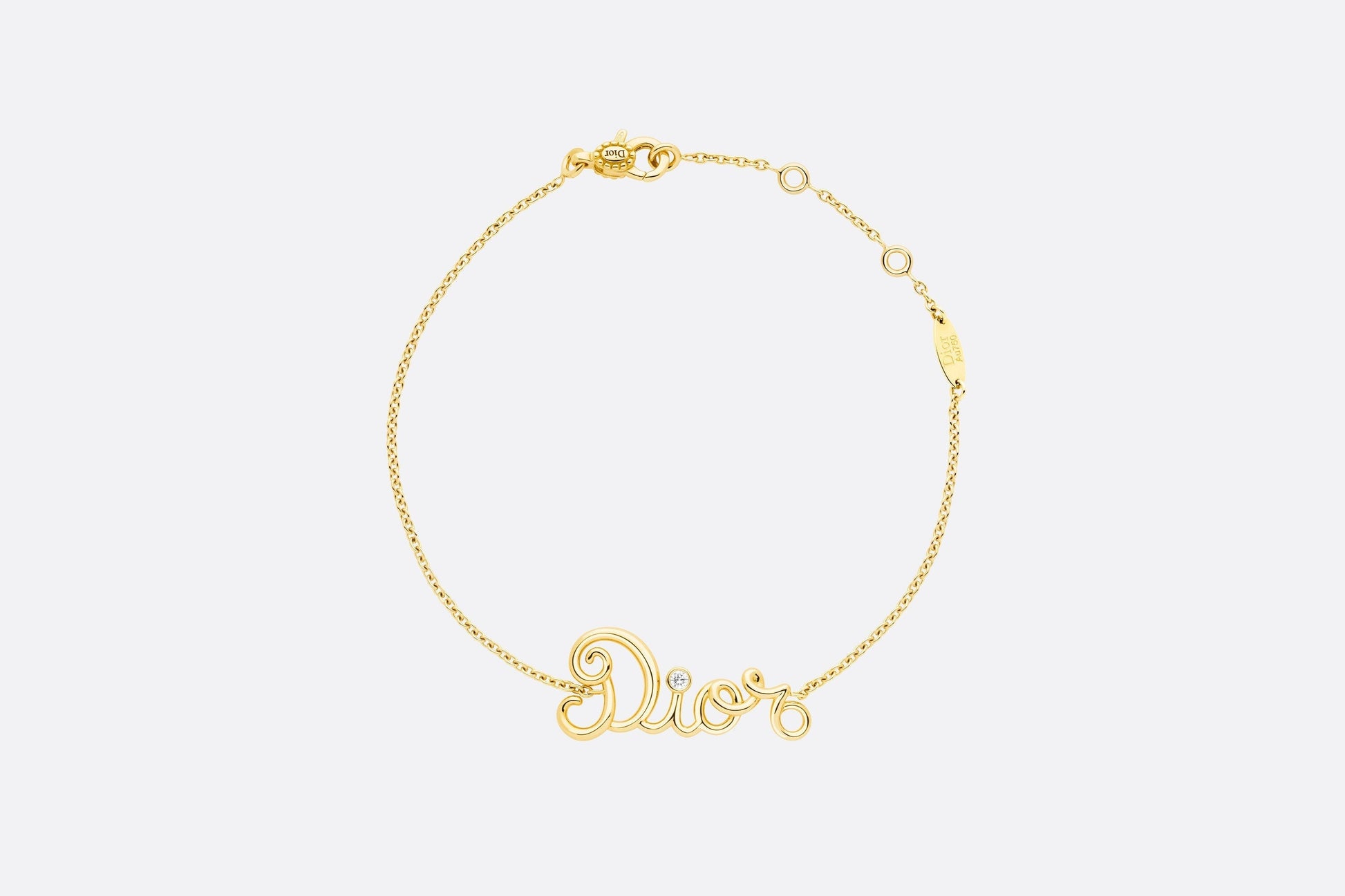As if drawn by hand, the curves of the iconic Dioramour collection pieces create joyful, graphic designs. Each curl twists like a strand of couture thread in a nod to the ateliers' savoir-faire. Both a talisman and a symbol of belonging, the Dior name blossoms on the bracelet.