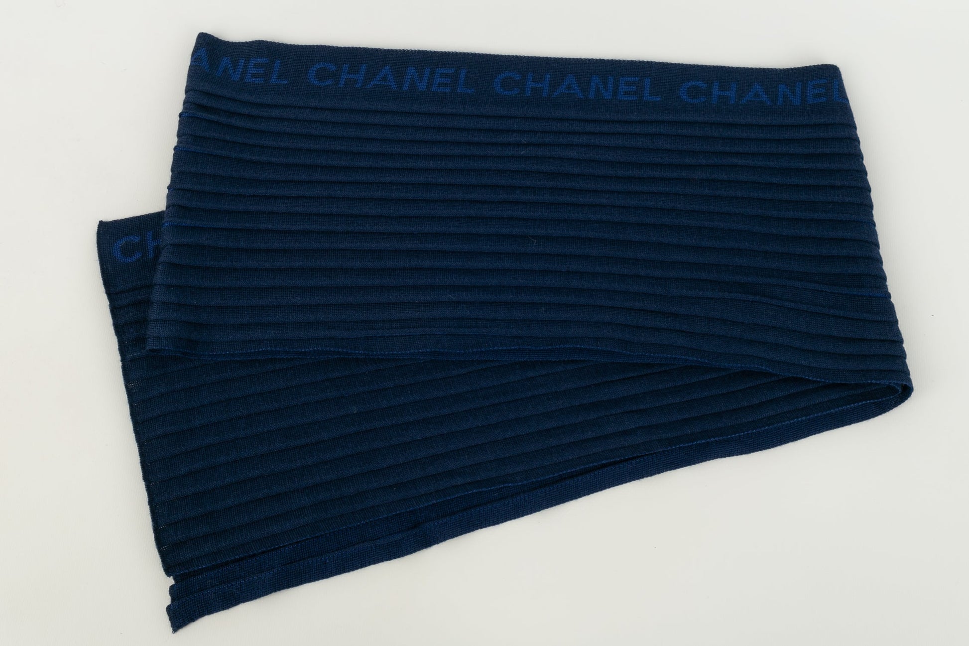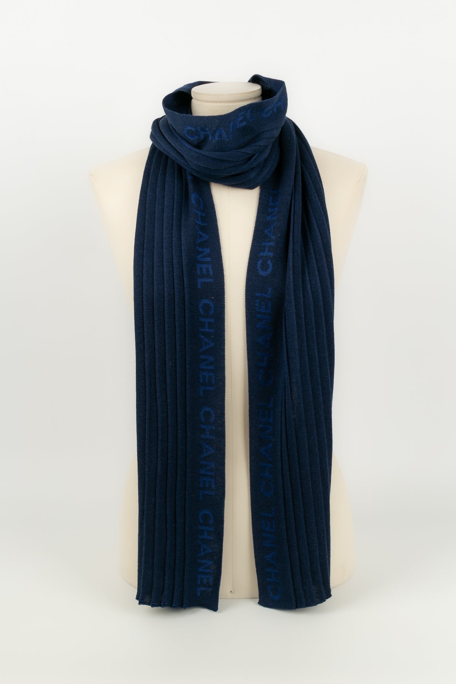 CHANEL - Echarpe bleu marine. L'étiquette de composition a été décousue.