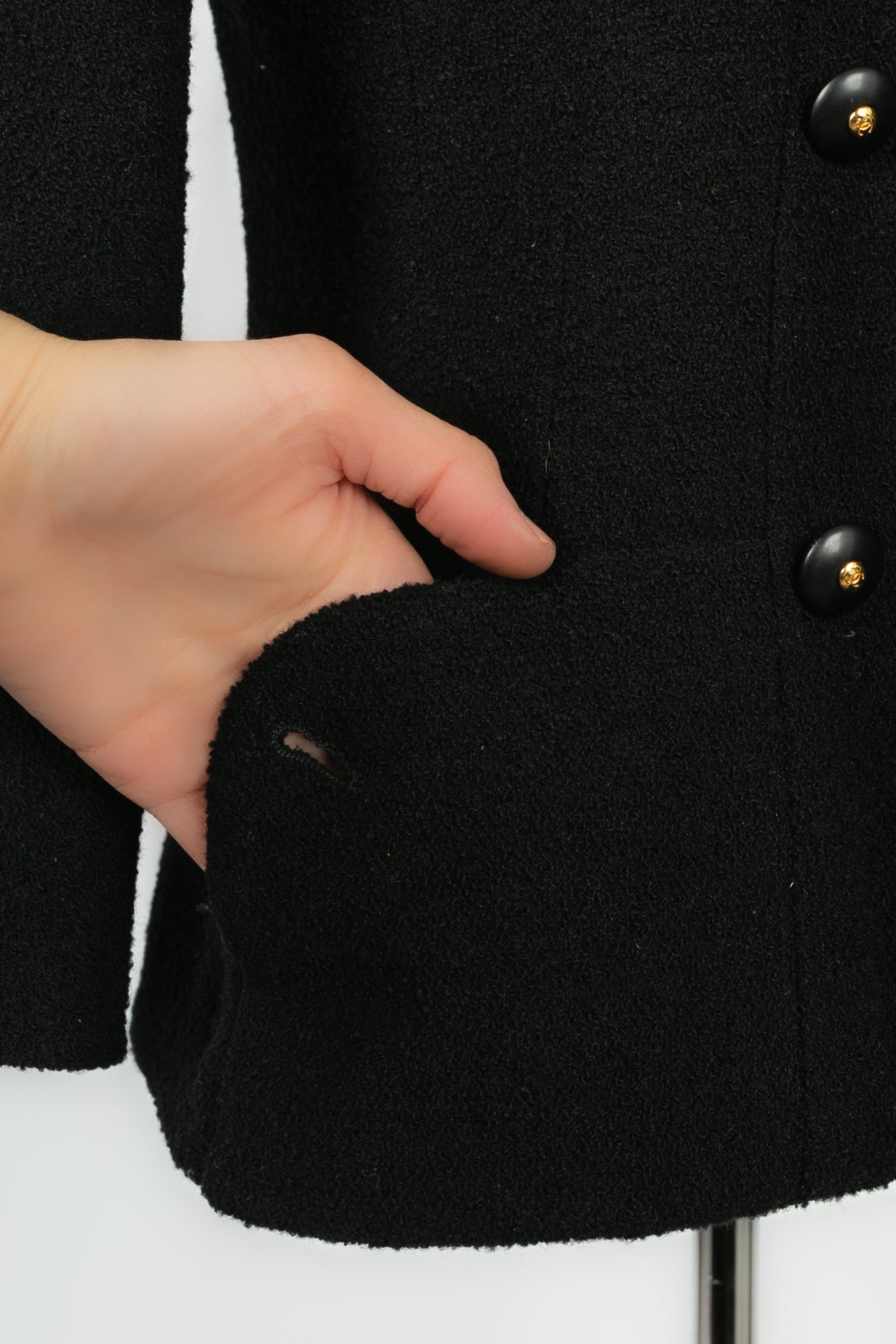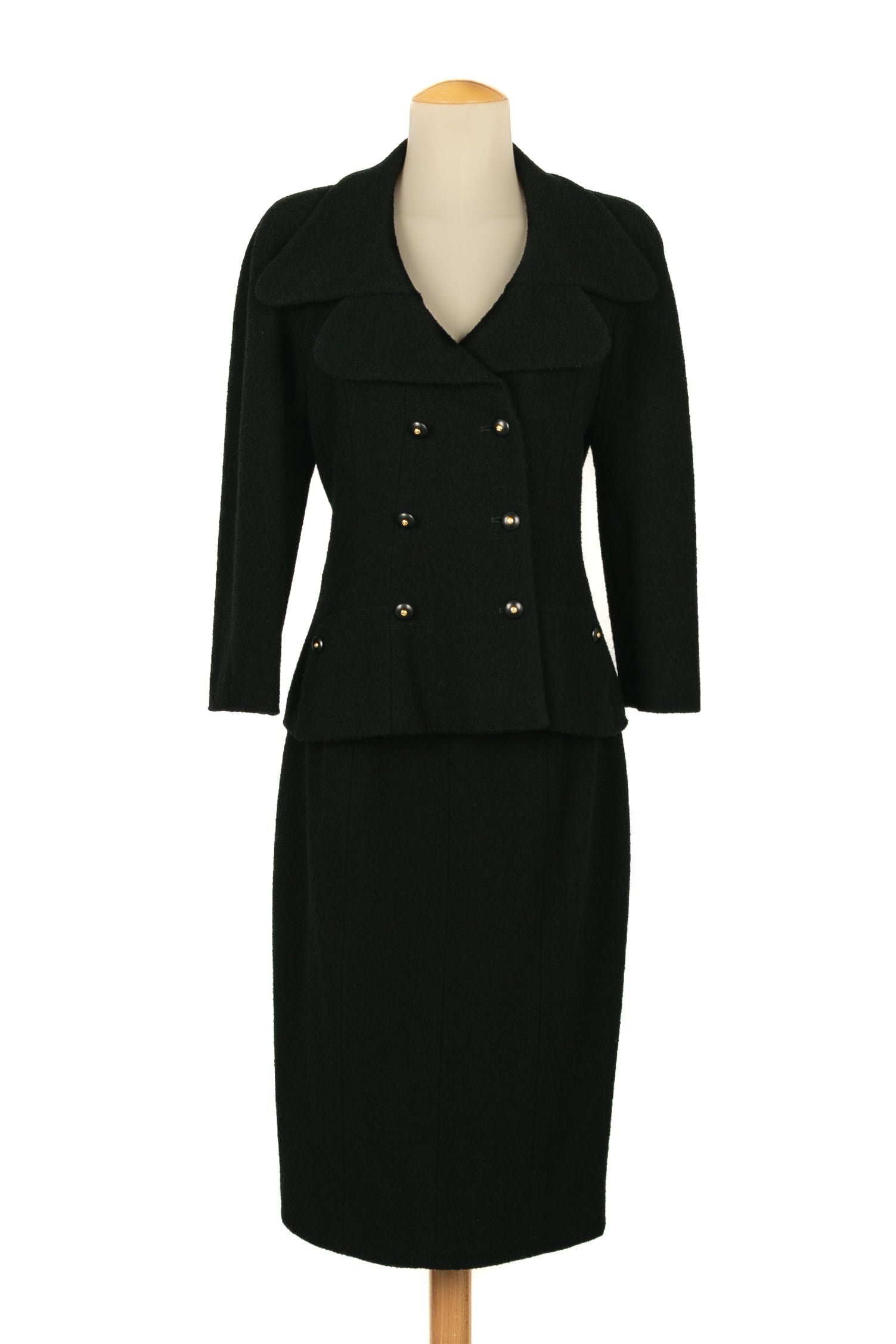 CHANEL - (Made in France) Ensemble tailleur en tweed noir composé d'une veste et jupe. Taille indiquée 42FR. Collection Automne/Hiver 1995.