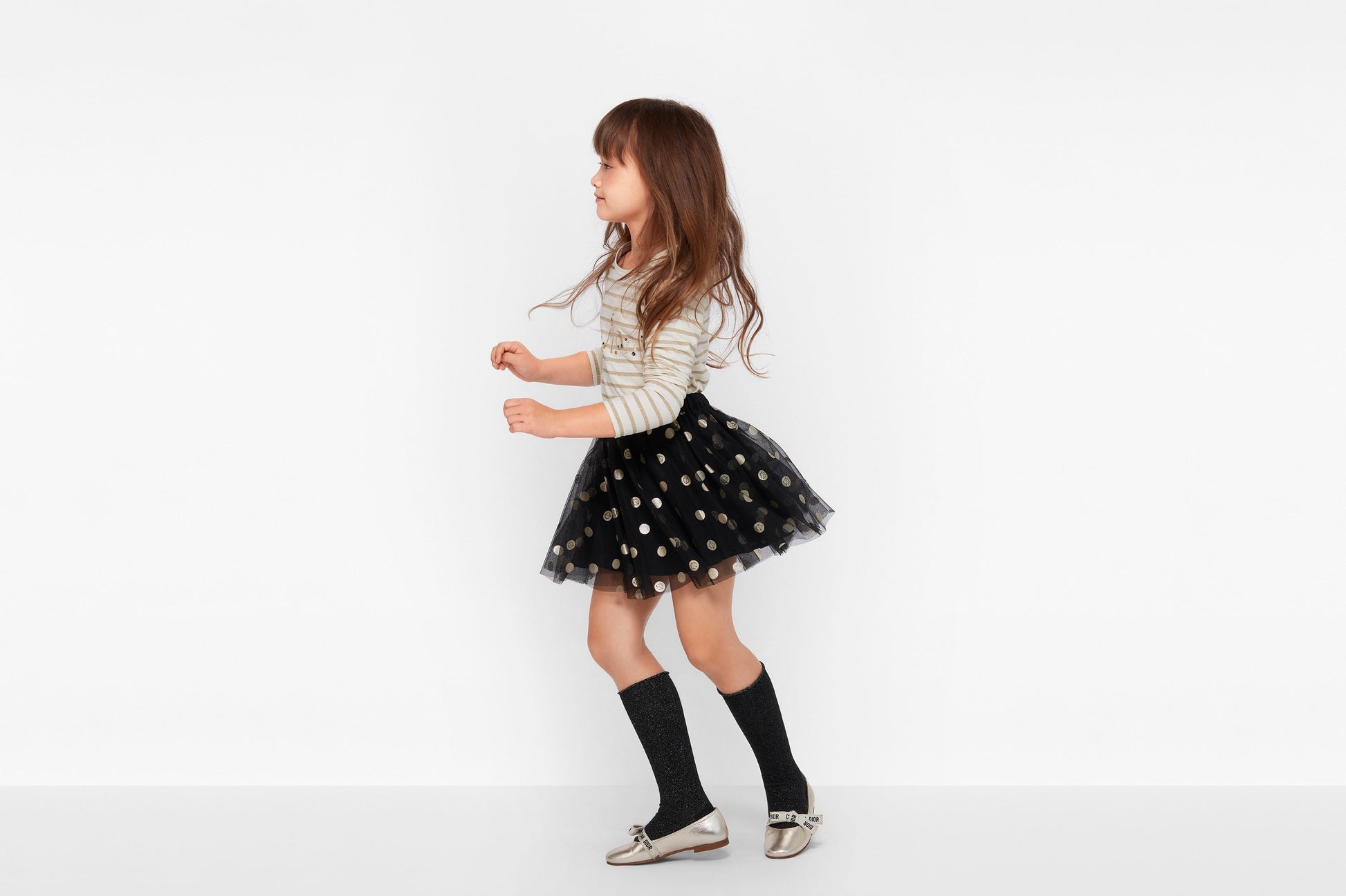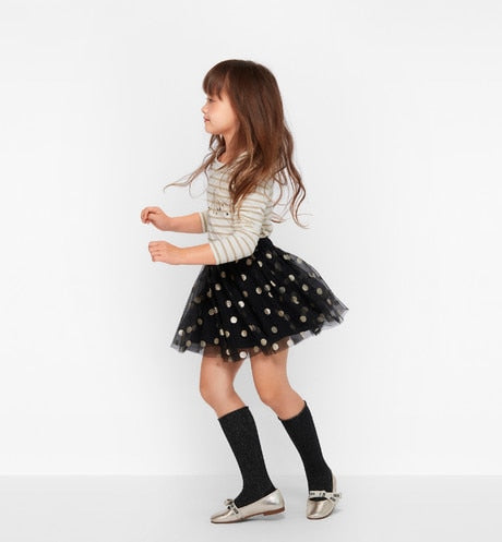 The Miss B ballerina flat is crafted in Italy from fine materials using a high level of technical expertise. The shoe has a flexible but sturdy leather insole, while a woven ribbon with 'Christian Dior' lettering adds elegance. A smaller version is available for babies.