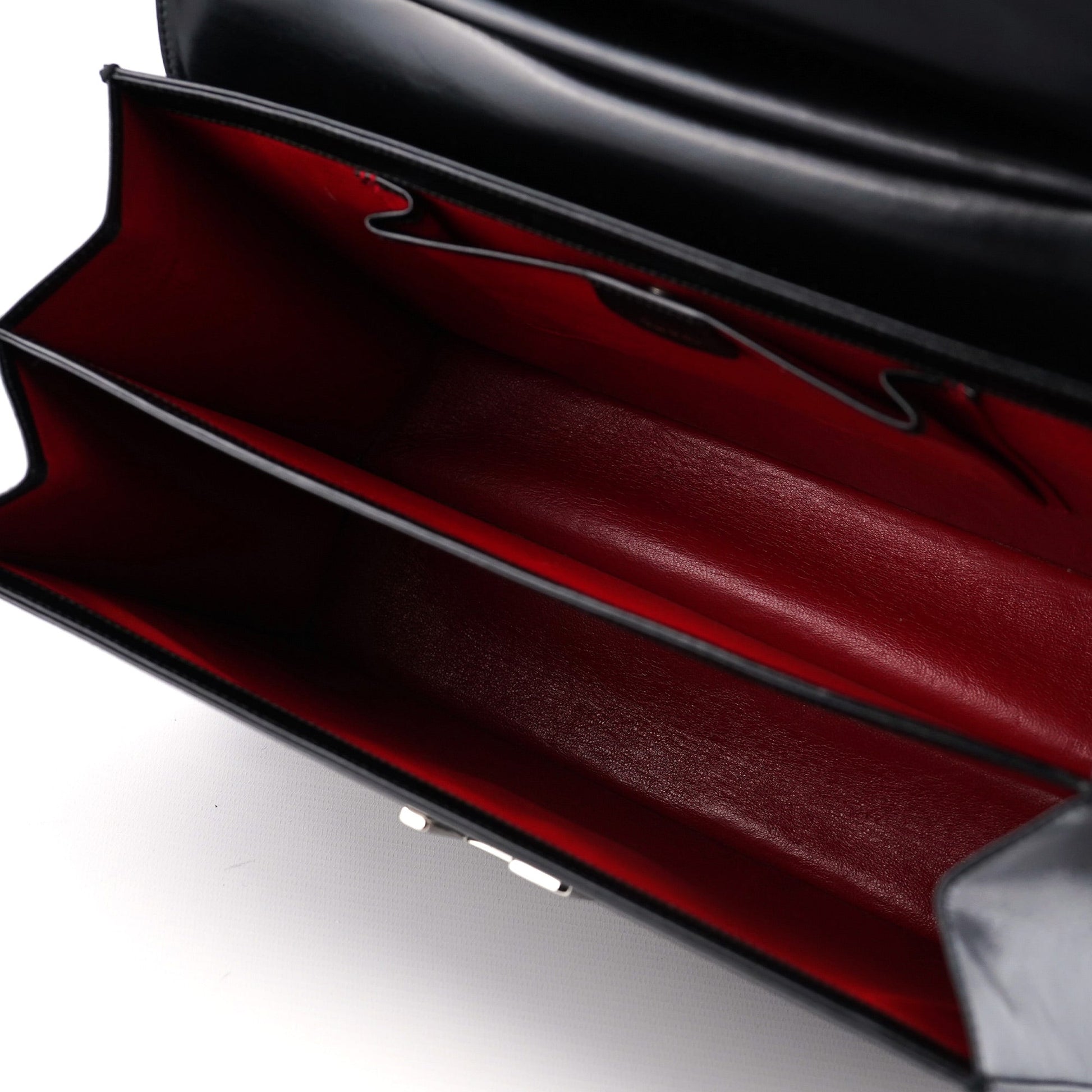Introducing the Gucci Square G shoulder bag, a timeless creation by Tom Ford from the late 1990s. Crafted from sleek black calfskin leather, it features the iconic square G logo buckle closure. The red leather-lined interior offers two compartments and an interior pocket, perfectly balancing style and functionality. A true statement piece from Ford’s era at Gucci.