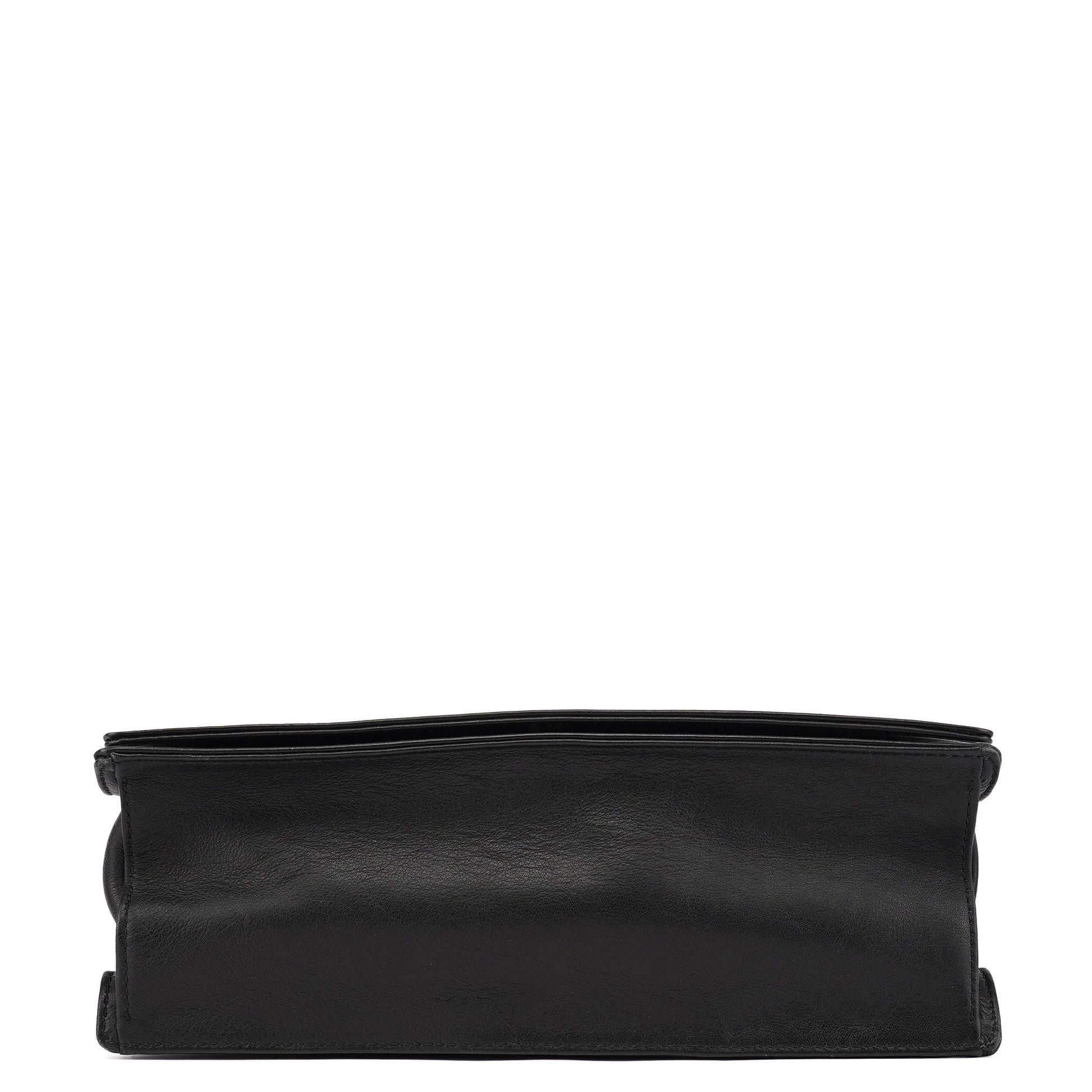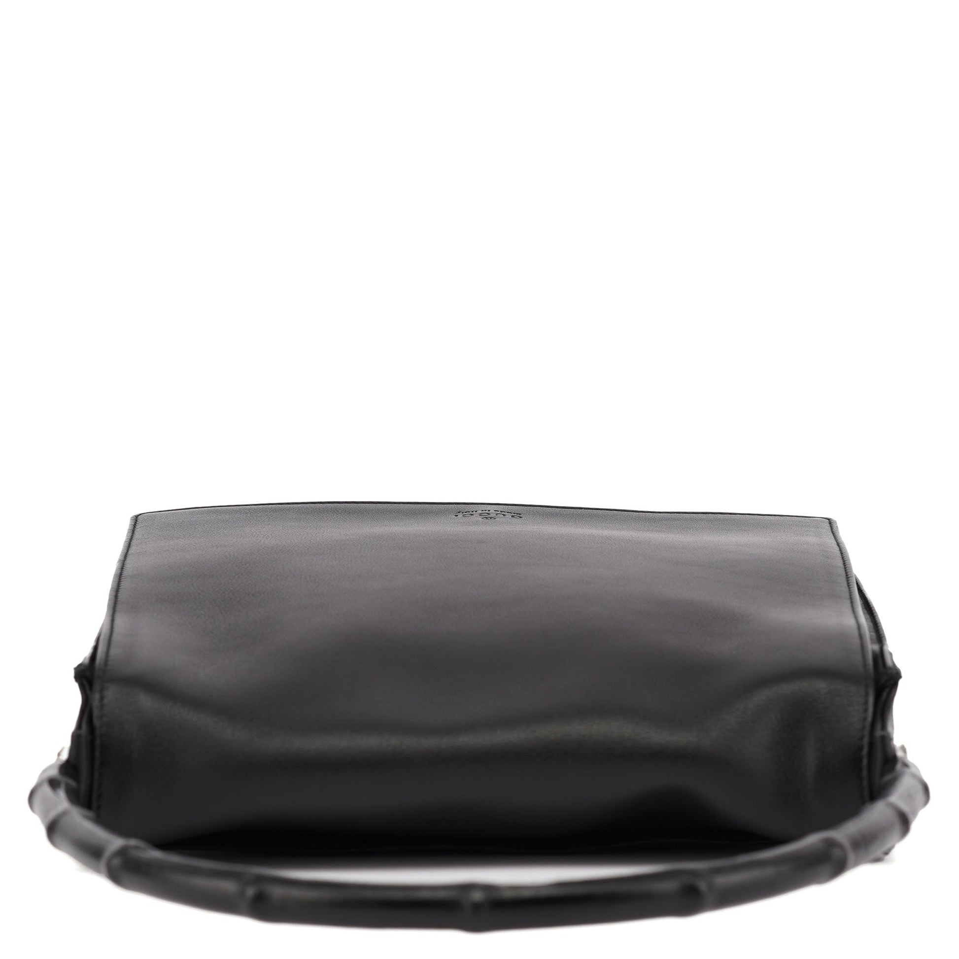 001 3243 Black Calfskin Bamboo Flap Shoulder Bag