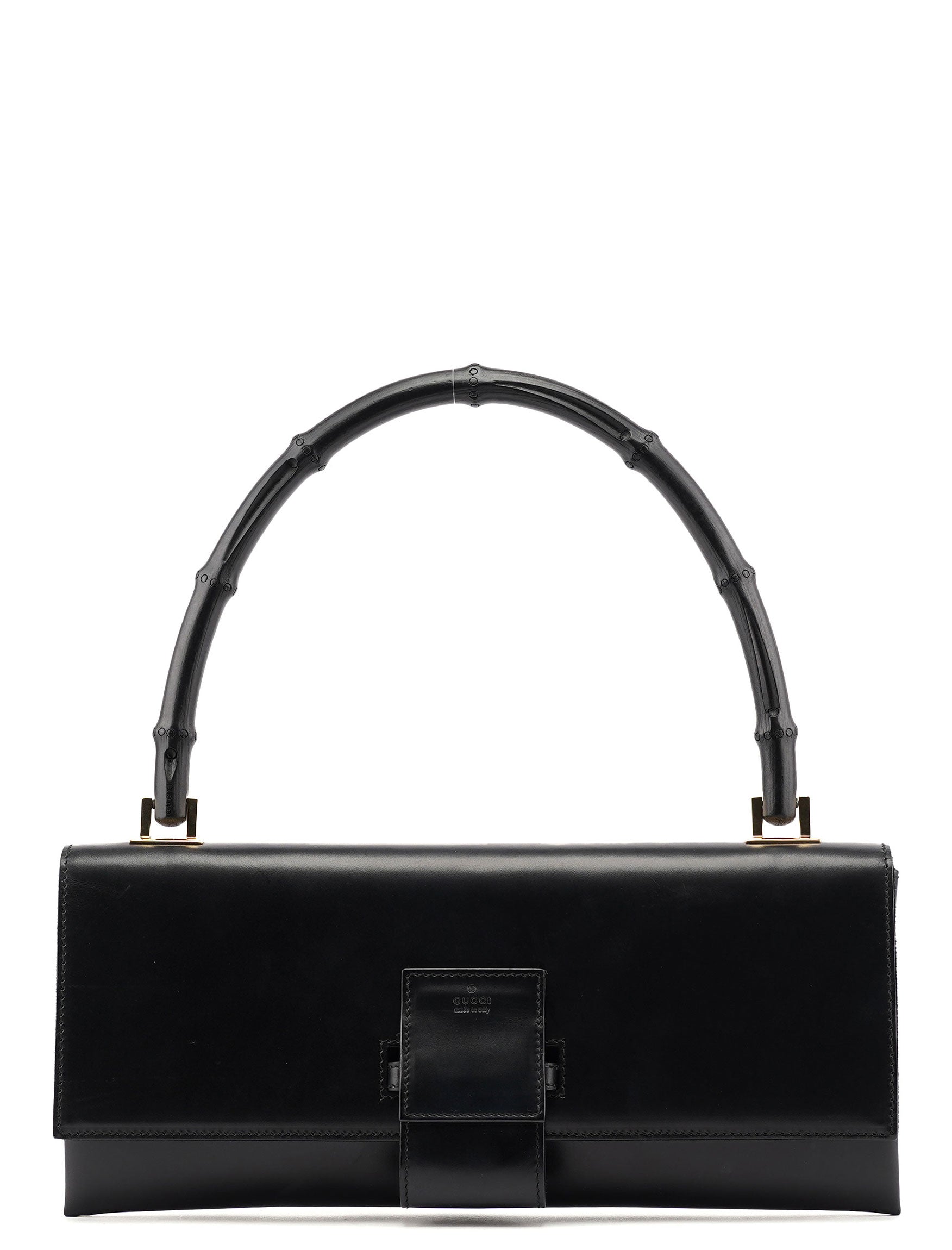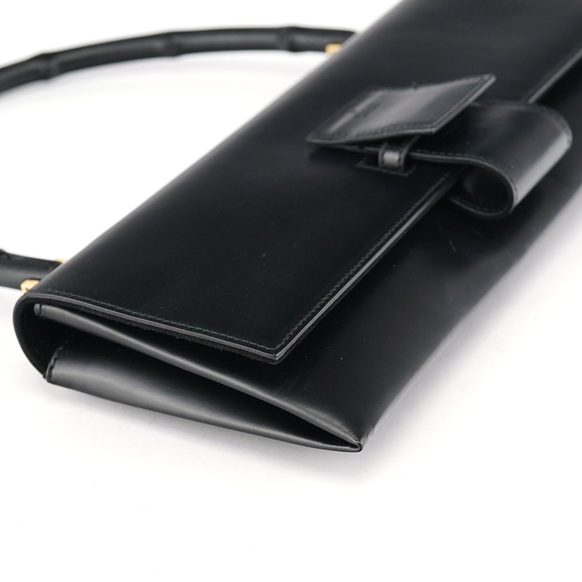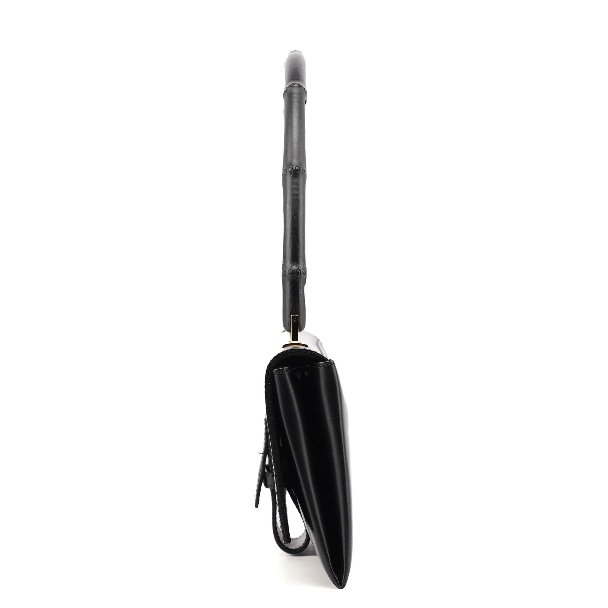 001 4055 Black Leather Bamboo Shoulder Bag