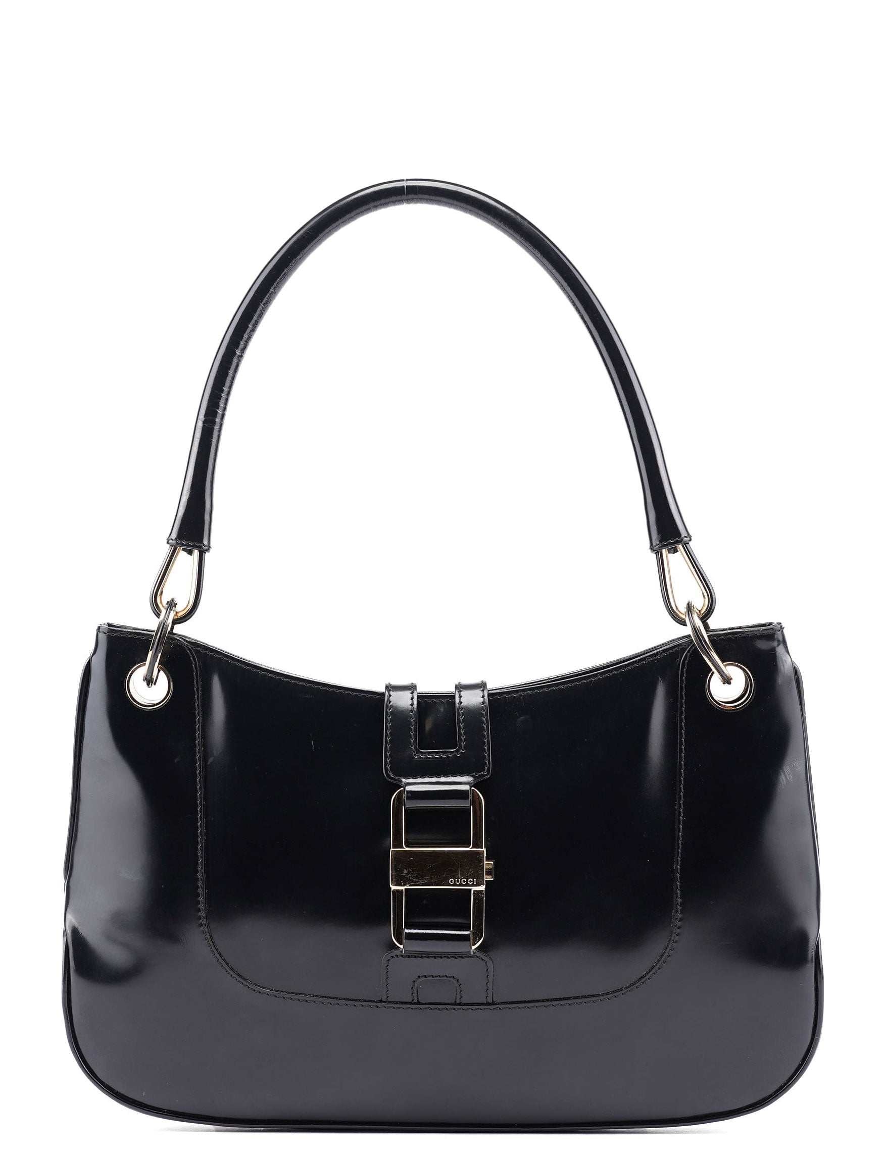 001 4150 Black Patent Leather Jackie Shoulder Bag