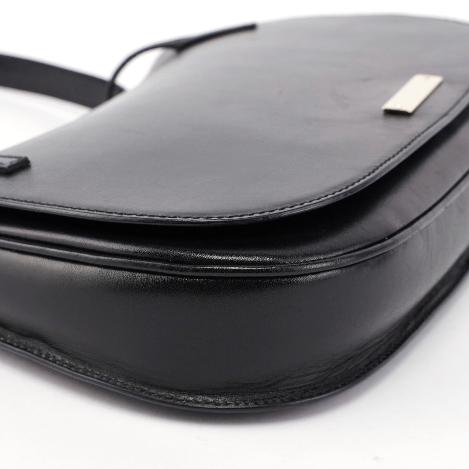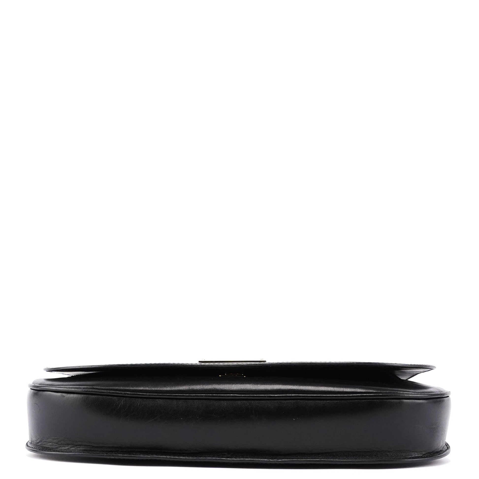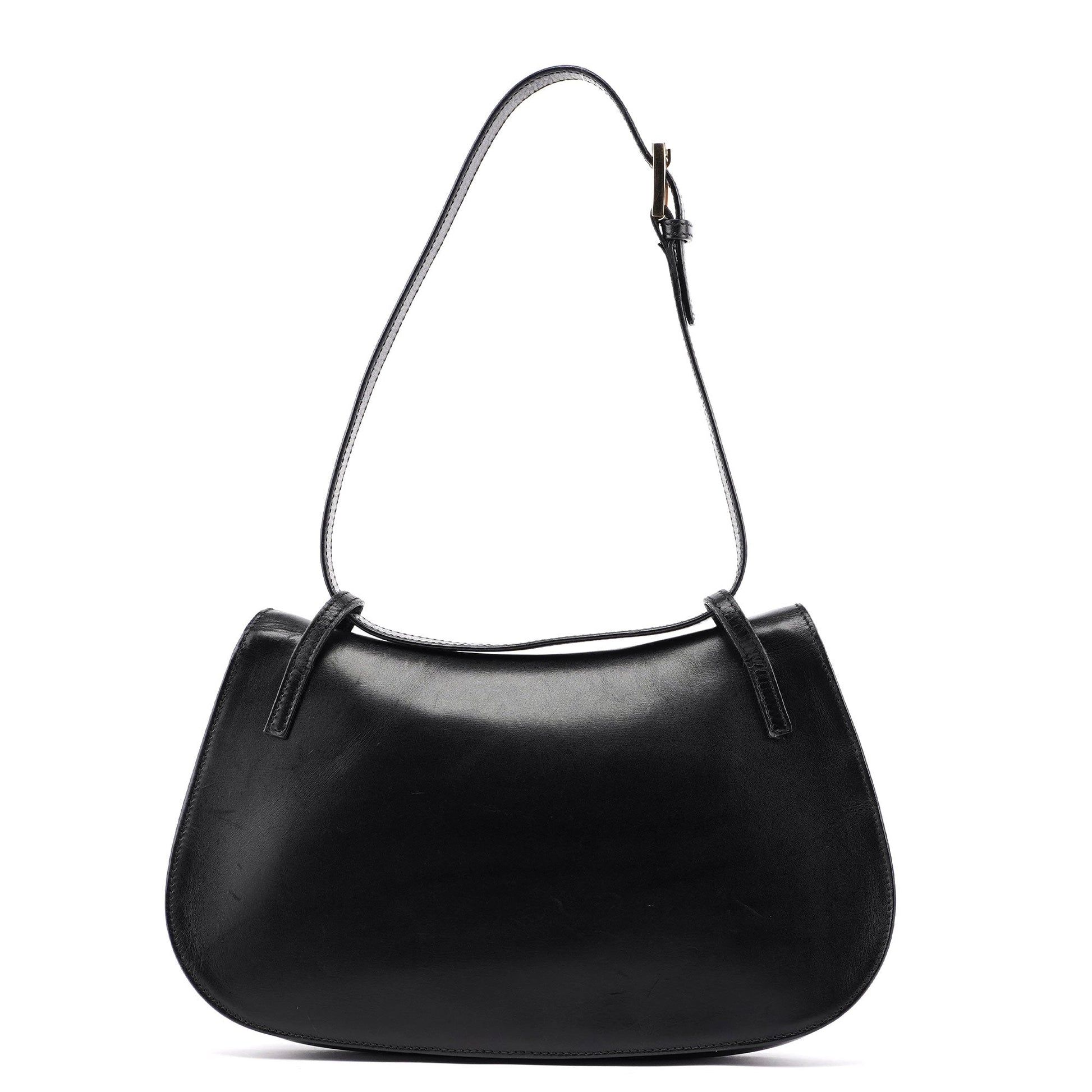Handcrafted from black calfskin leather, this Gucci Vitello bag by Tom Ford from the late 1990s features gold-tone hardware, a satin-lined interior with an interior zipper pocket, and a Gucci logo plate at the front, showcasing timeless elegance.
