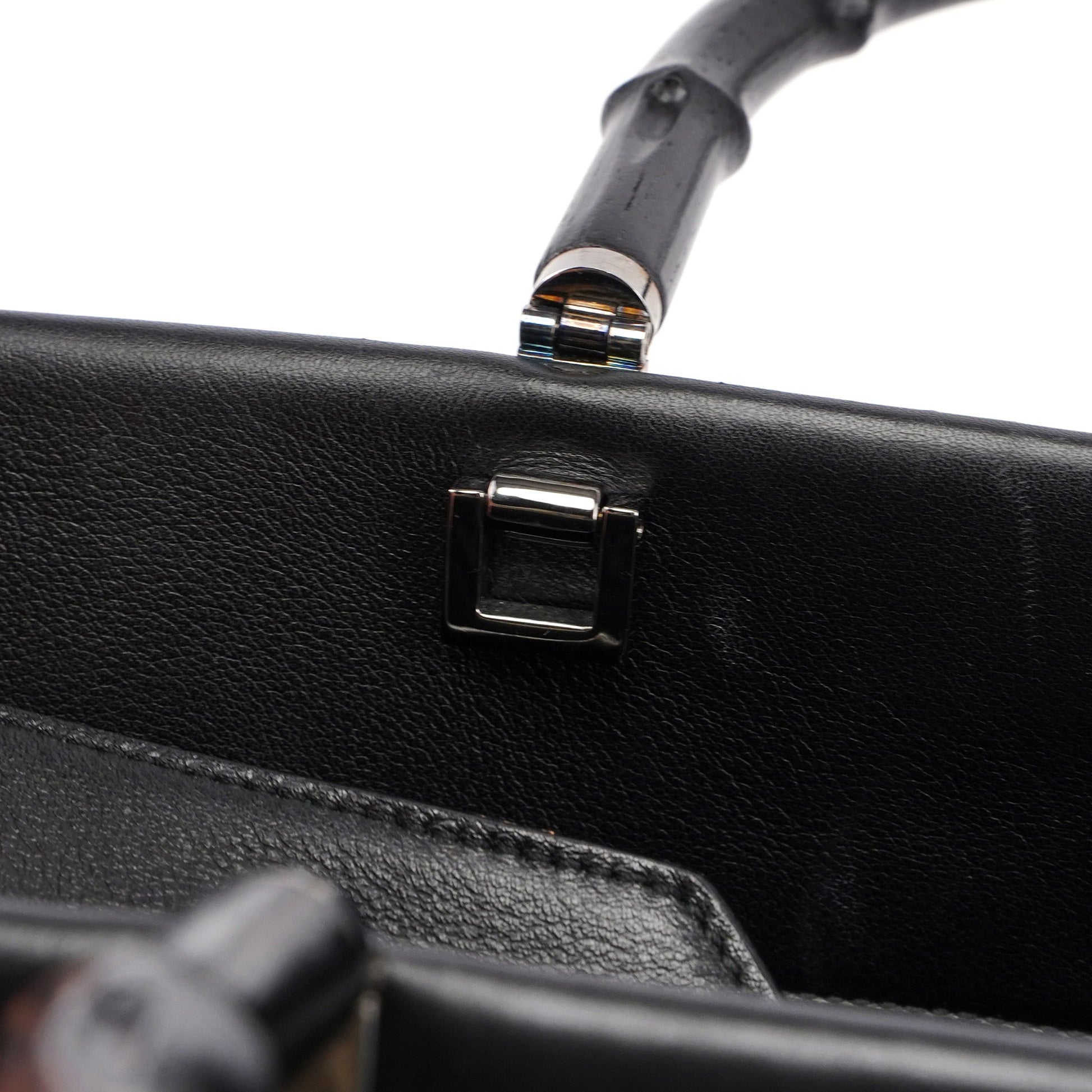 002 1033 Black Leather Bamboo 2-Way Tote Bag