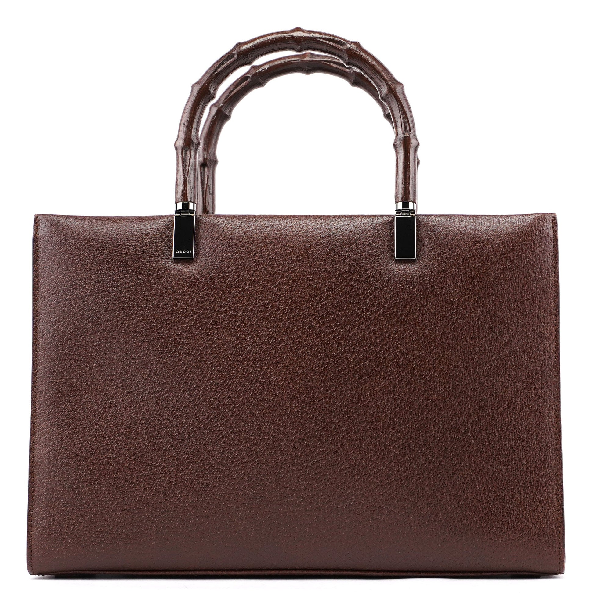 002 1035 Brown Leather Bamboo 2-Way Tote