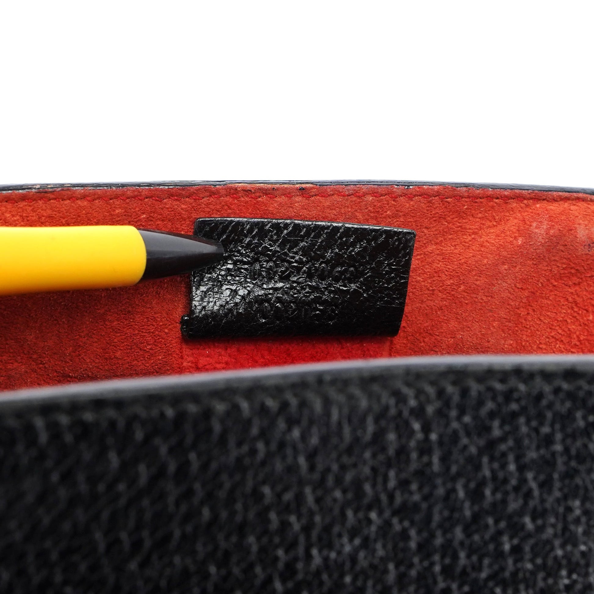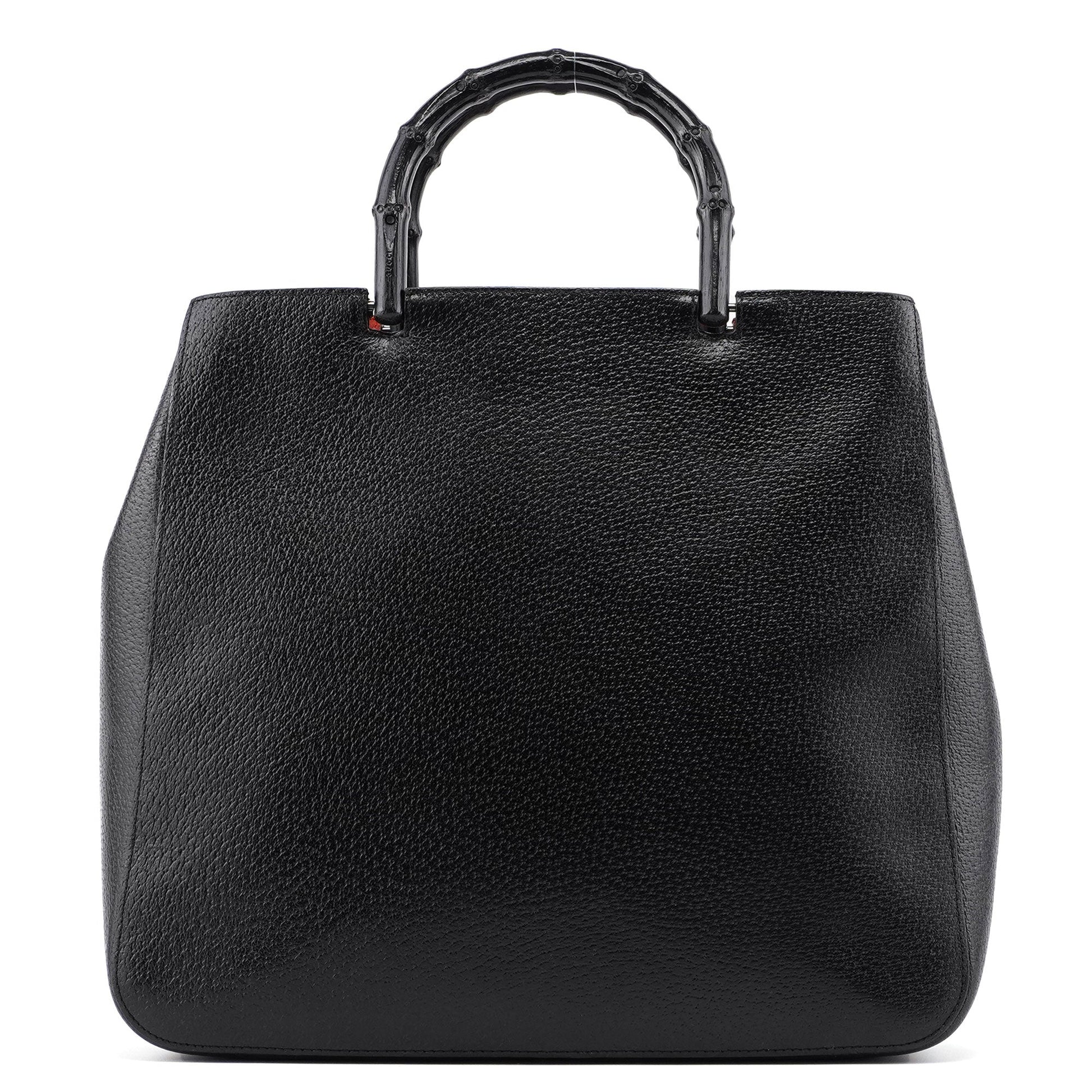 Designed by Tom Ford in the late '90s, this Gucci Bamboo tote bag handcrafted in black leather features bamboo handles. The two interior compartments, lined with red suede and include a zipper pocket. The Gucci logo embossed at the front highlights its distinguished design.