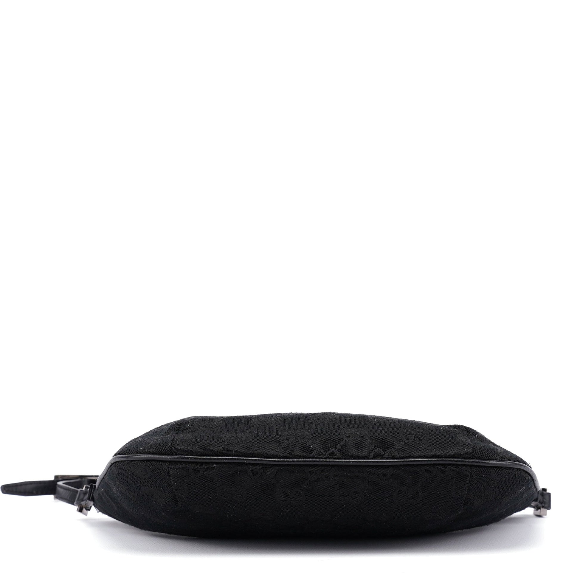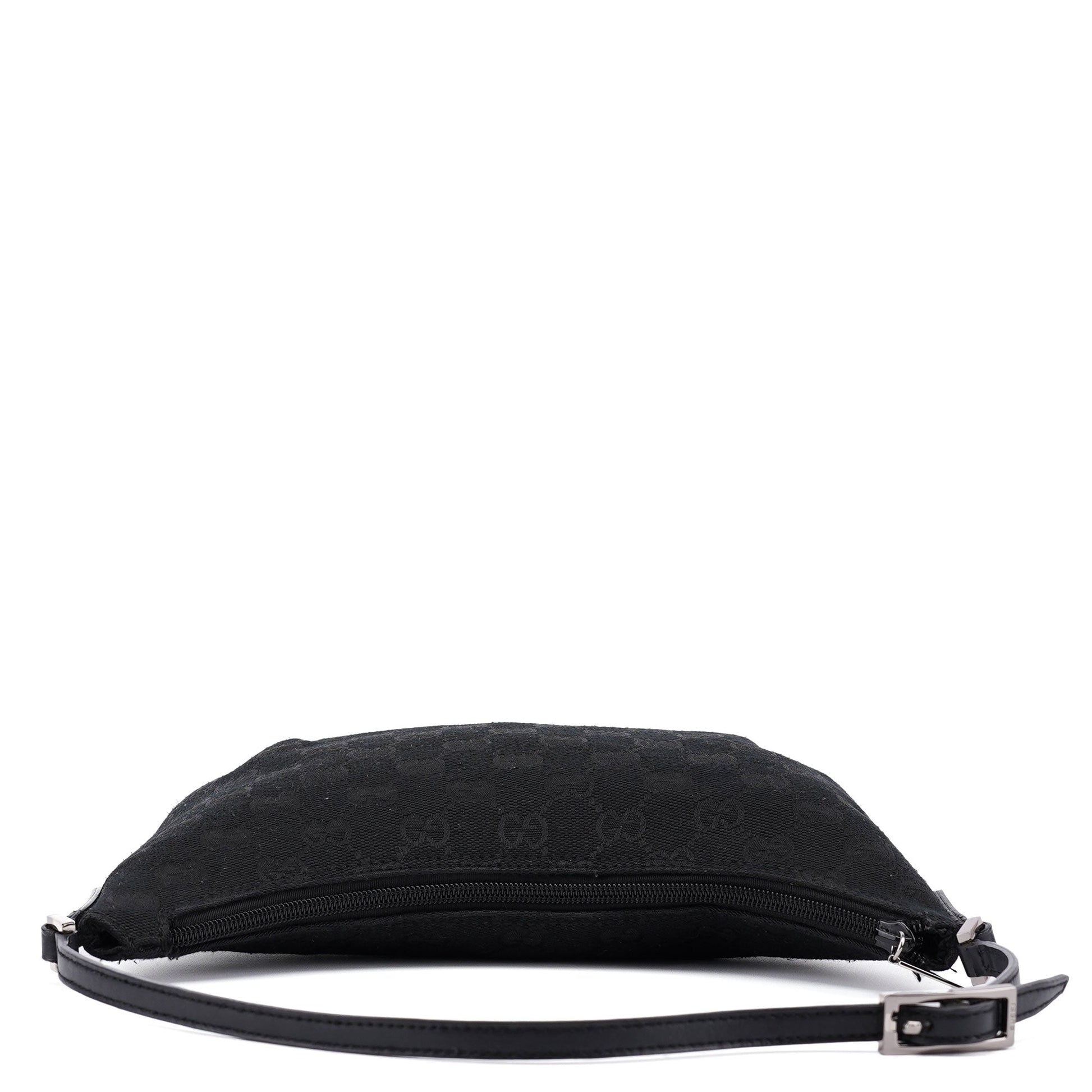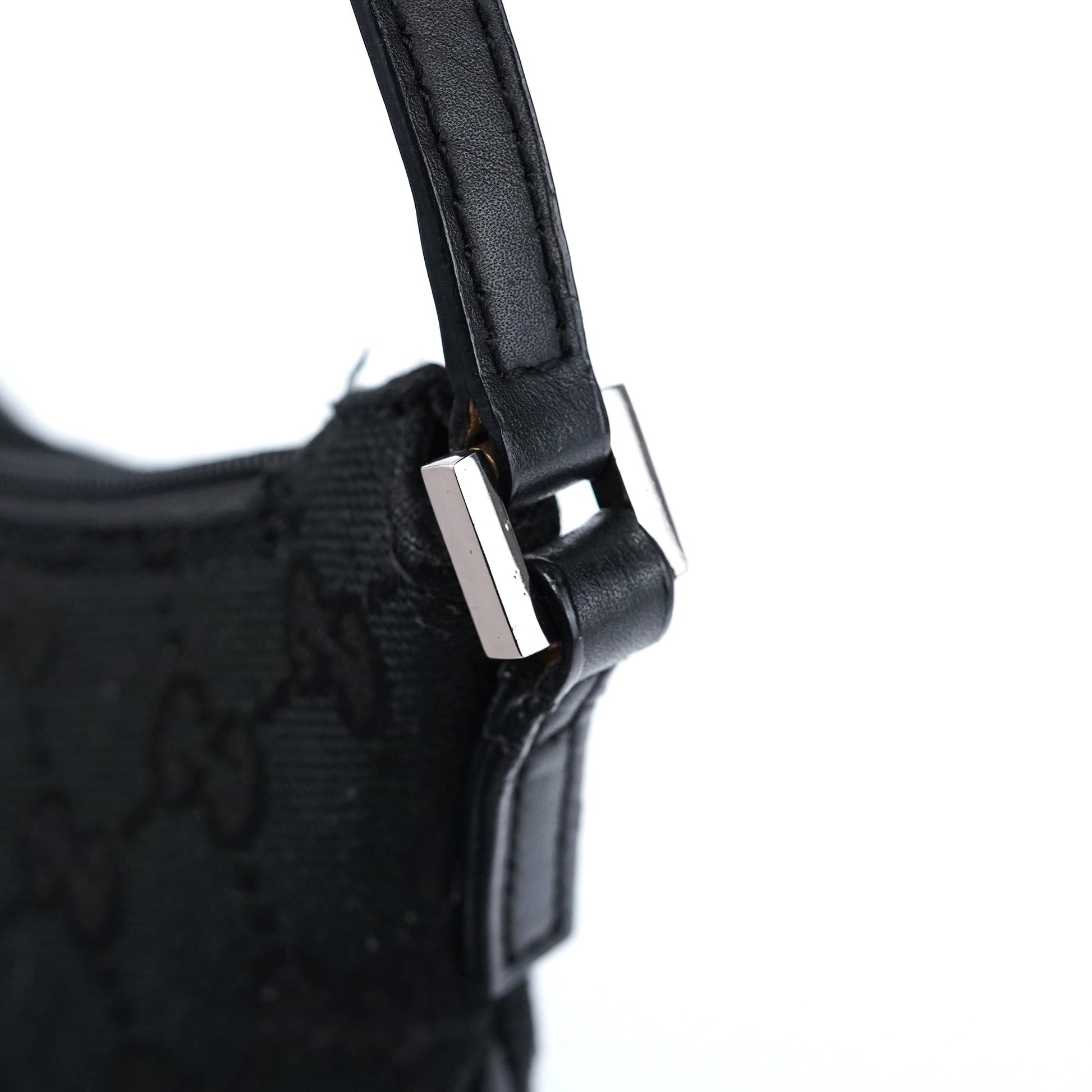 Designed by Tom Ford in the late 1990's, this Gucci GG shoulder bag is crafted from the iconic black GG monogram canvas with tonal leather trim. Its silver-tone hardware adds a touch of elegance, while the satin-lined interior features a convenient pocket for organization.
