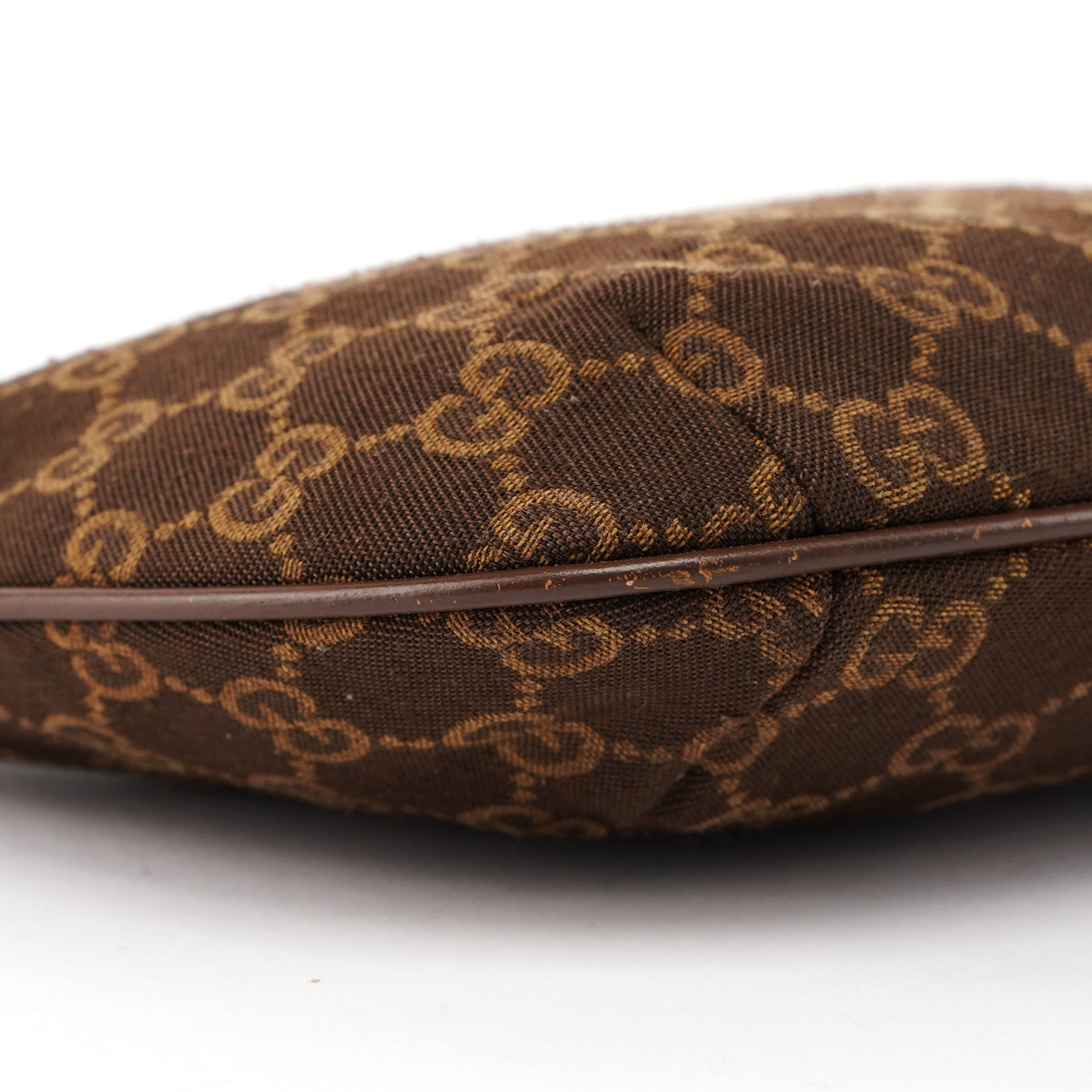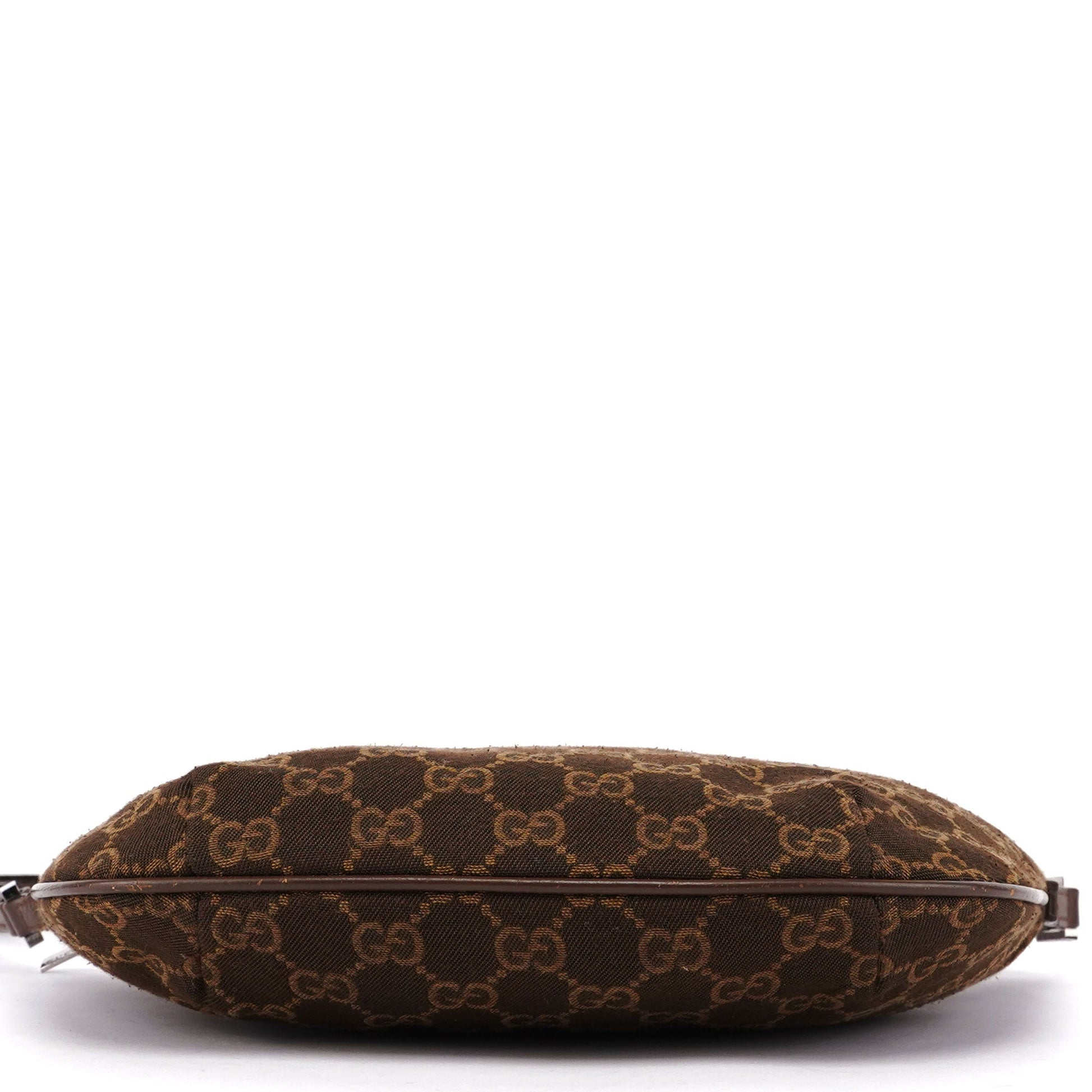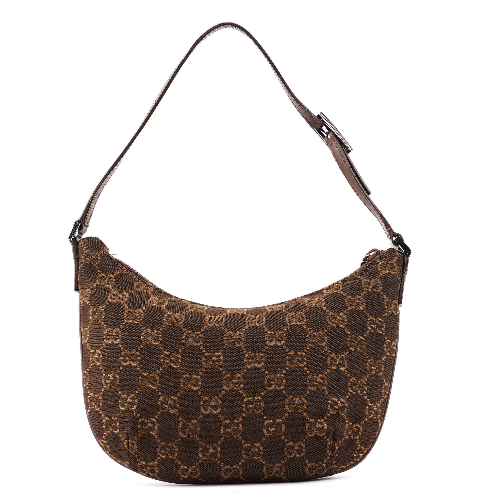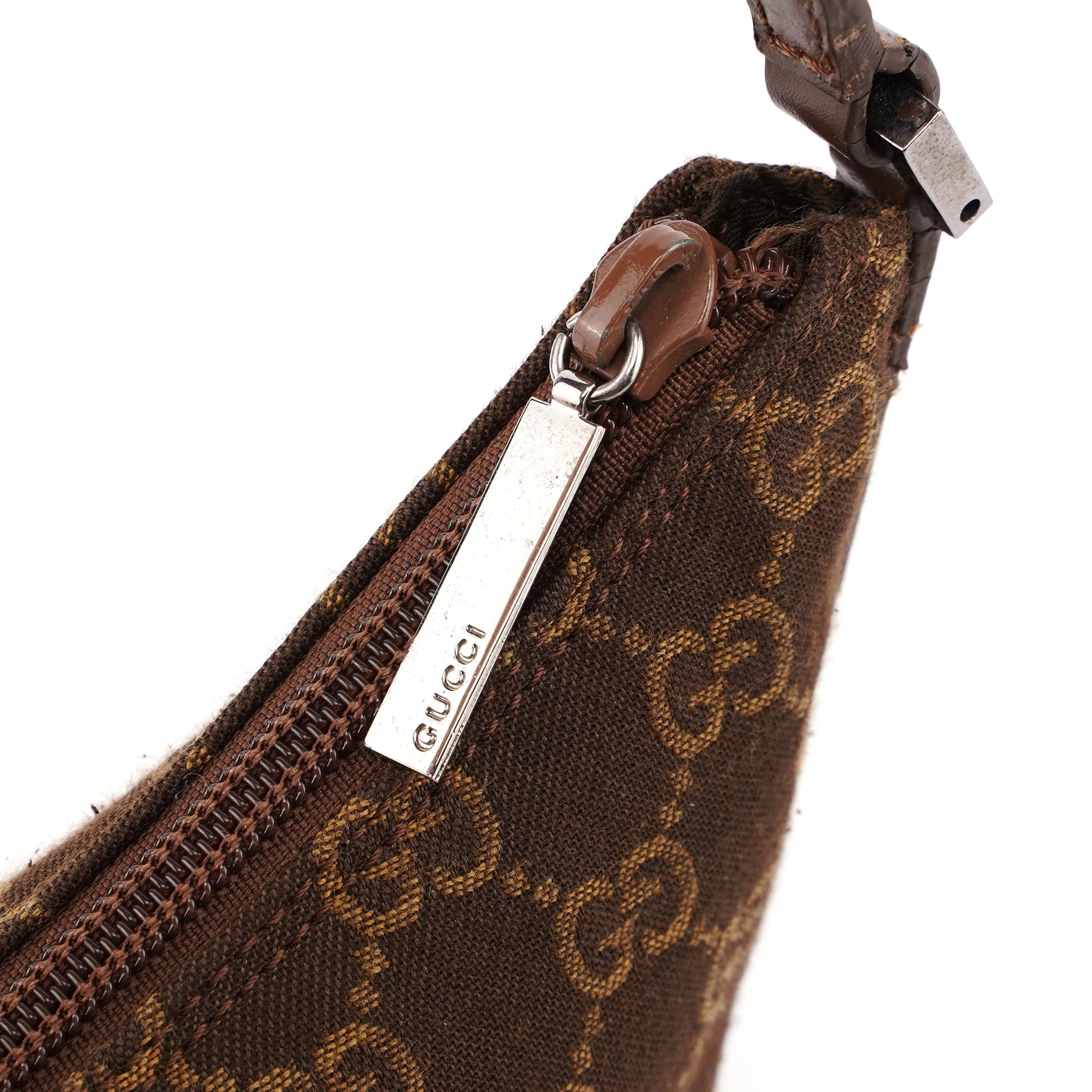 Designed by Tom Ford in the late 1990's, this Gucci GG shoulder bag is crafted from the iconic brown GG monogram canvas with tonal leather trim. Its silver-tone hardware adds a touch of elegance, while the satin-lined interior features a convenient pocket for organization.