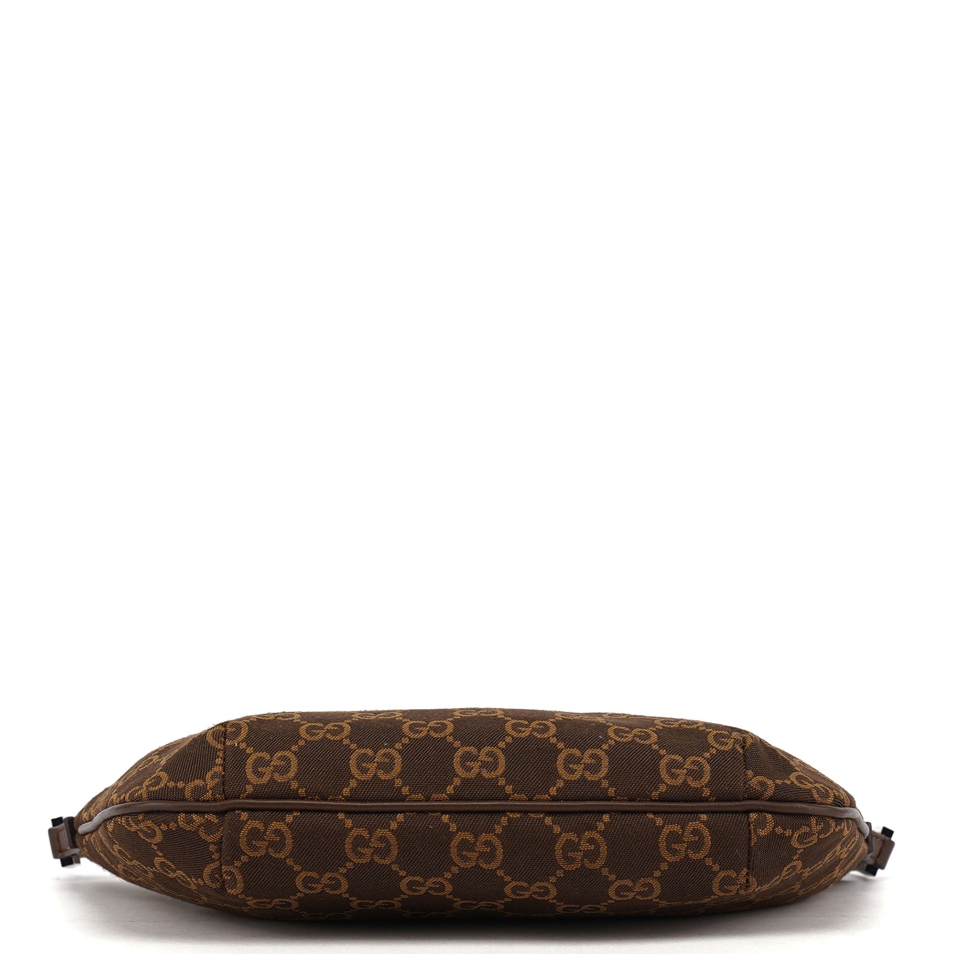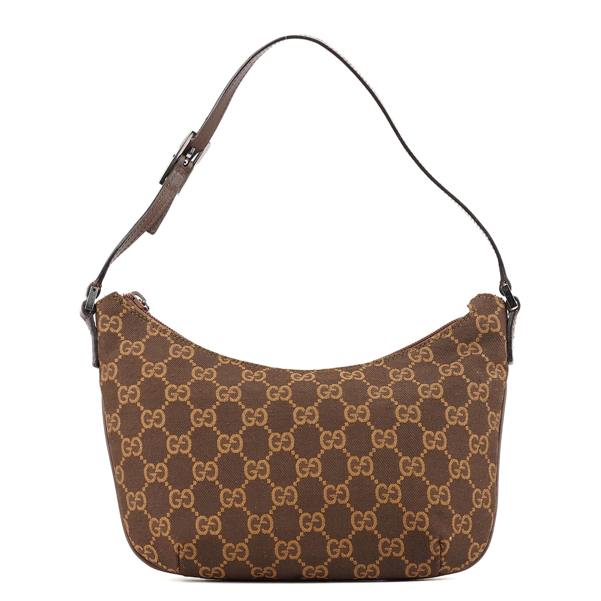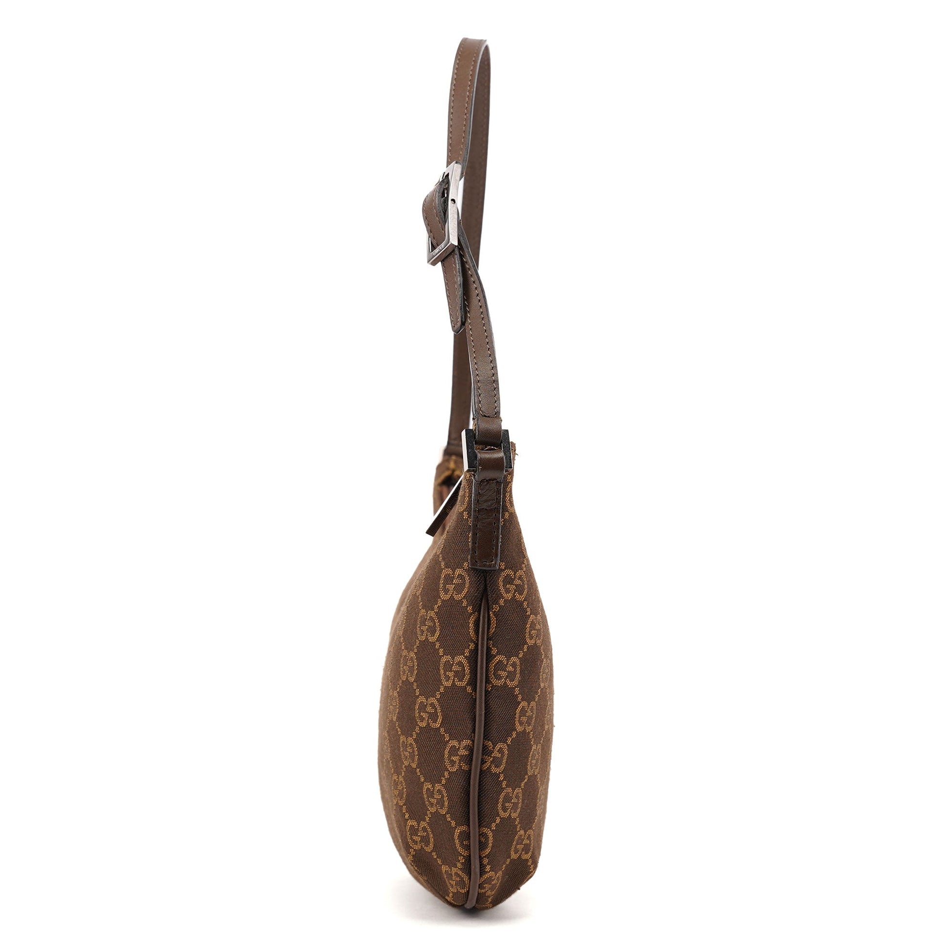 Designed by Tom Ford in the late 1990's, this Gucci GG shoulder bag is crafted from the iconic brown GG monogram canvas with tonal leather trim. Its silver-tone hardware adds a touch of elegance, while the satin-lined interior features a convenient pocket for organization.